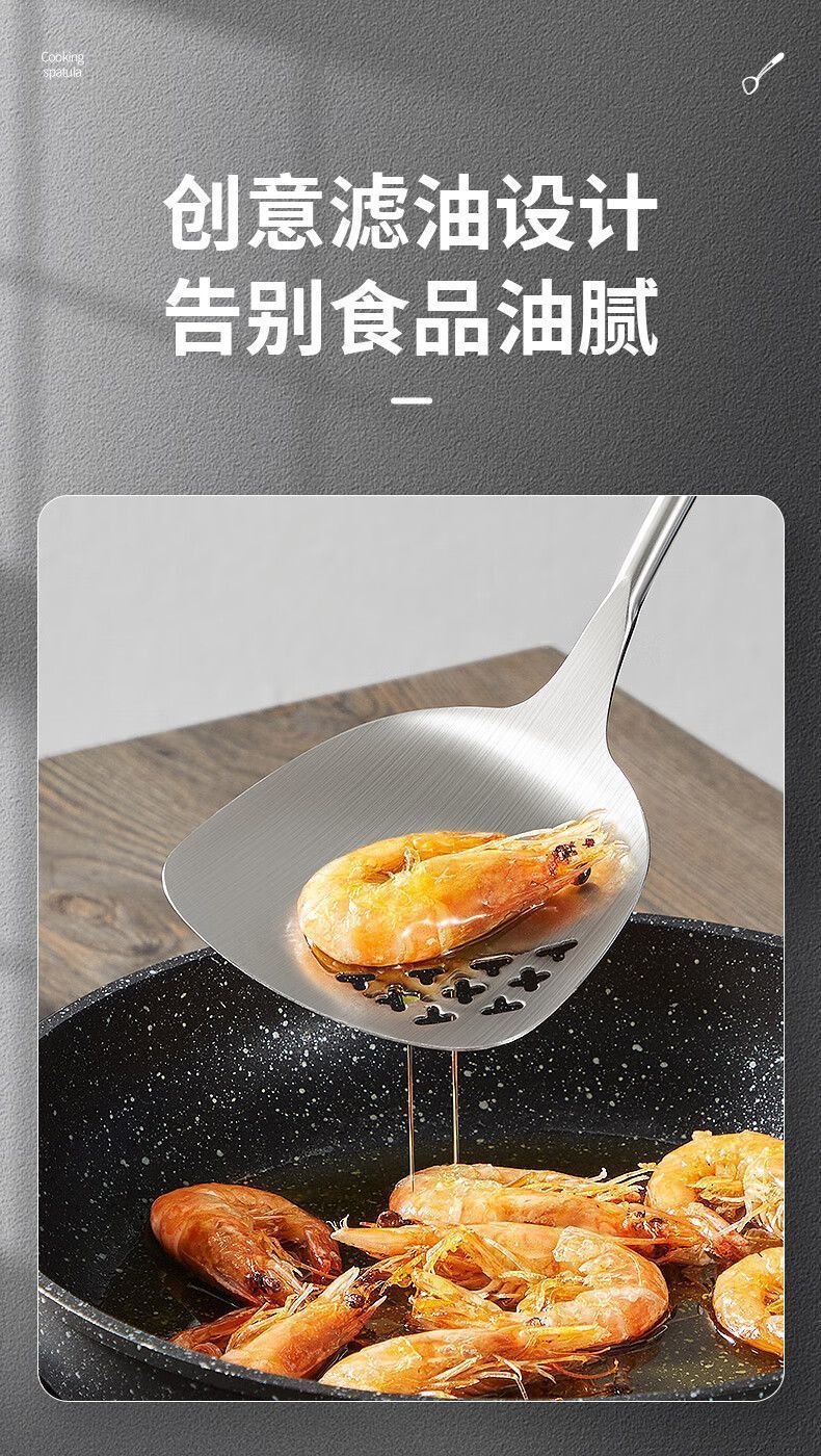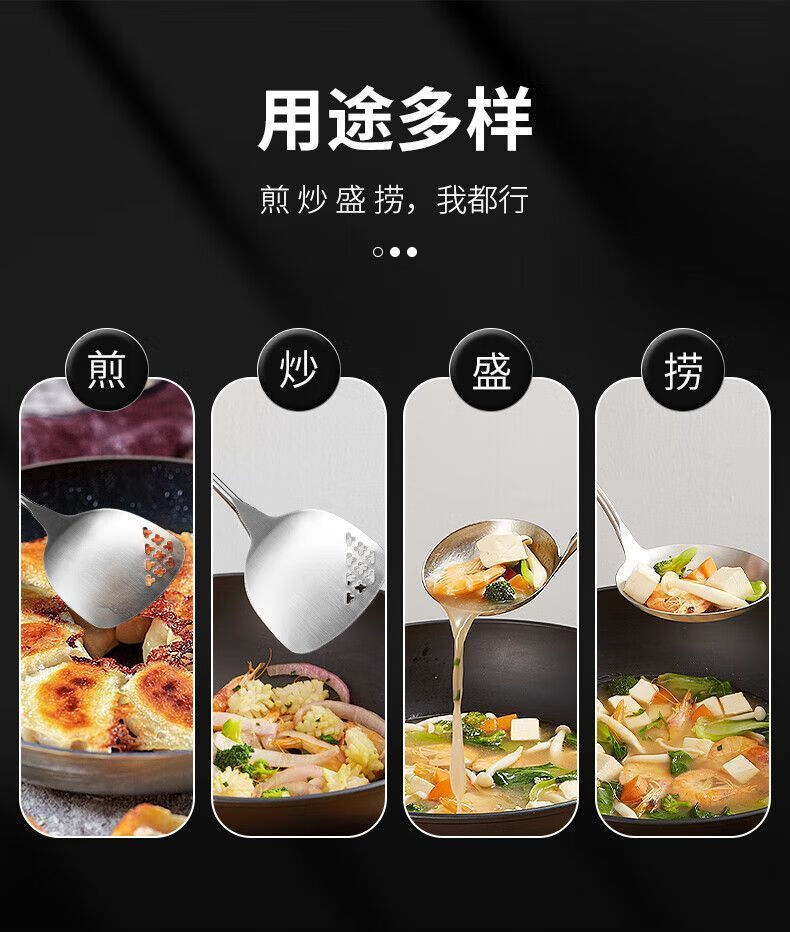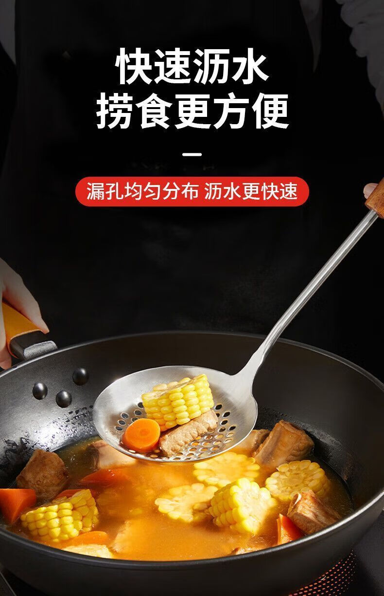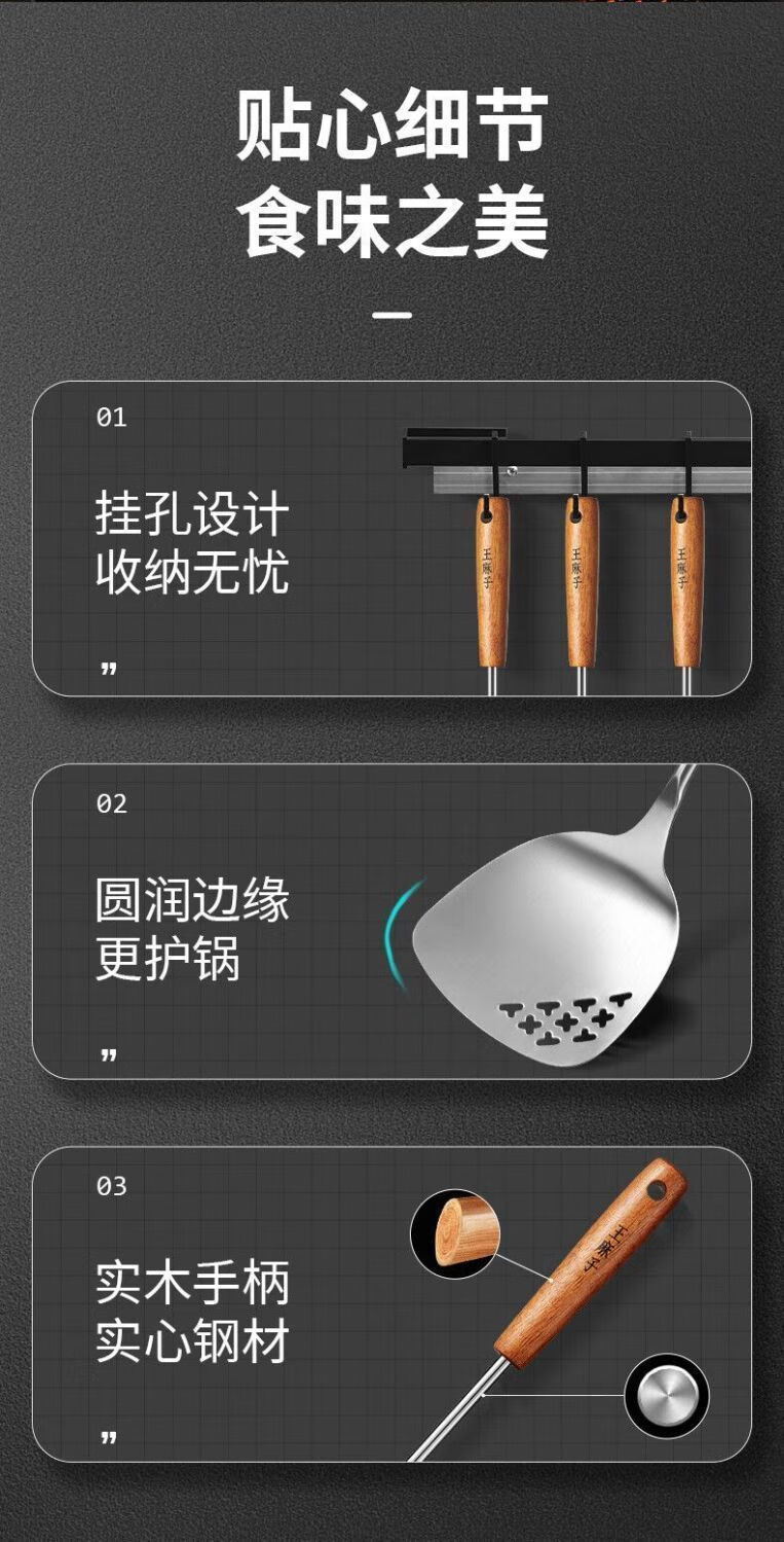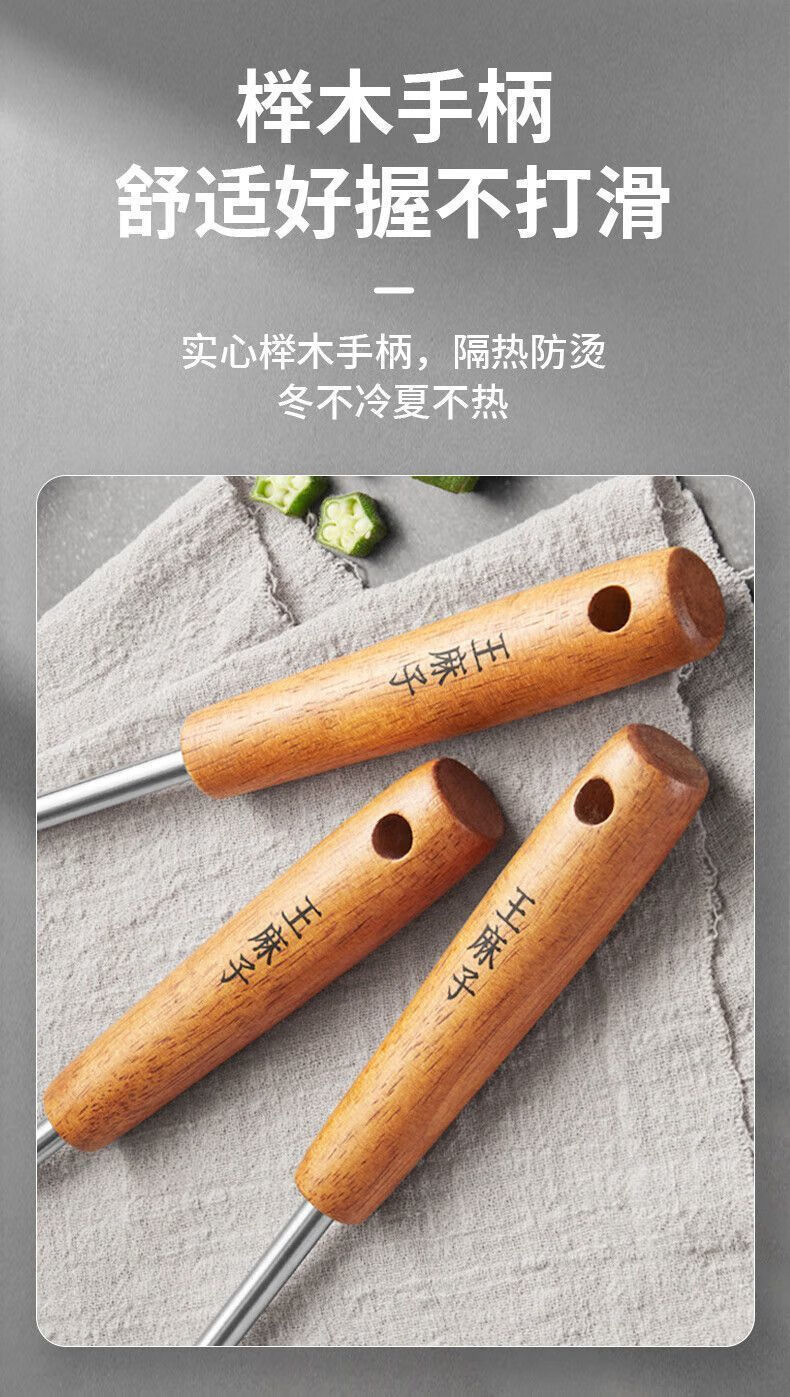 Wang Mazi 304 stainless steel spatula three-piece set household soup spoon colander cooking spatula set anti-scalding wooden handle kitchen utensils 304 stainless steel colander