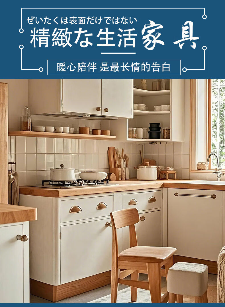 Wen Yijia Mengxin cream style kitchen cabinets solid wood log style whole house cabinet furniture factory direct sales store manager private customization-66*37
