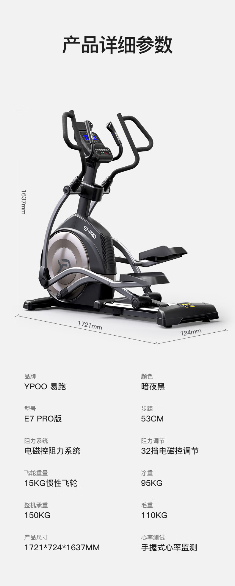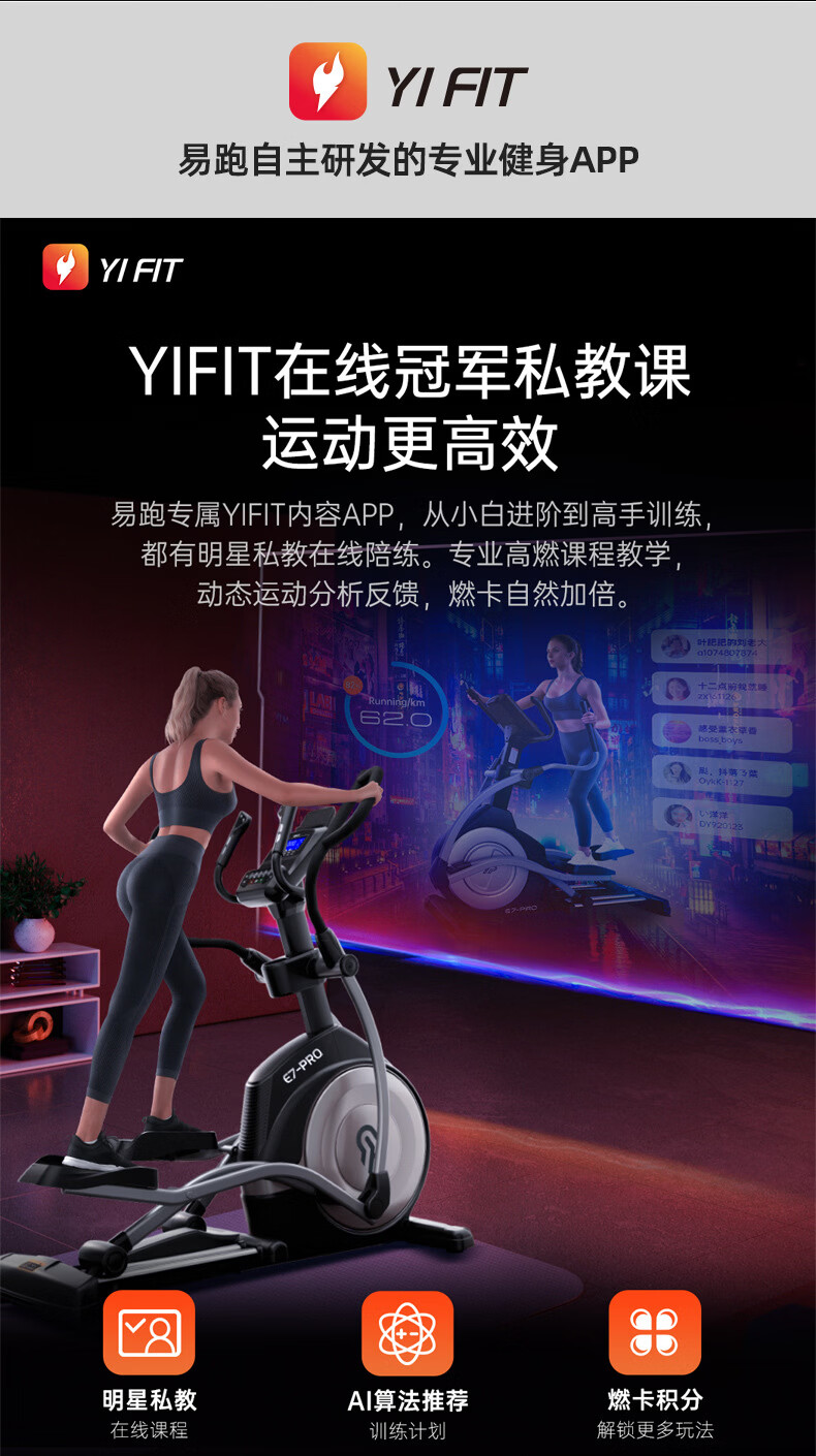 Easy run E7 elliptical machine home space walking machine gym sports equipment commercial front elliptical machine large stride E7-PRO manual slope model/3-speed adjustable slope/53CM large stride/15KG inertial flight