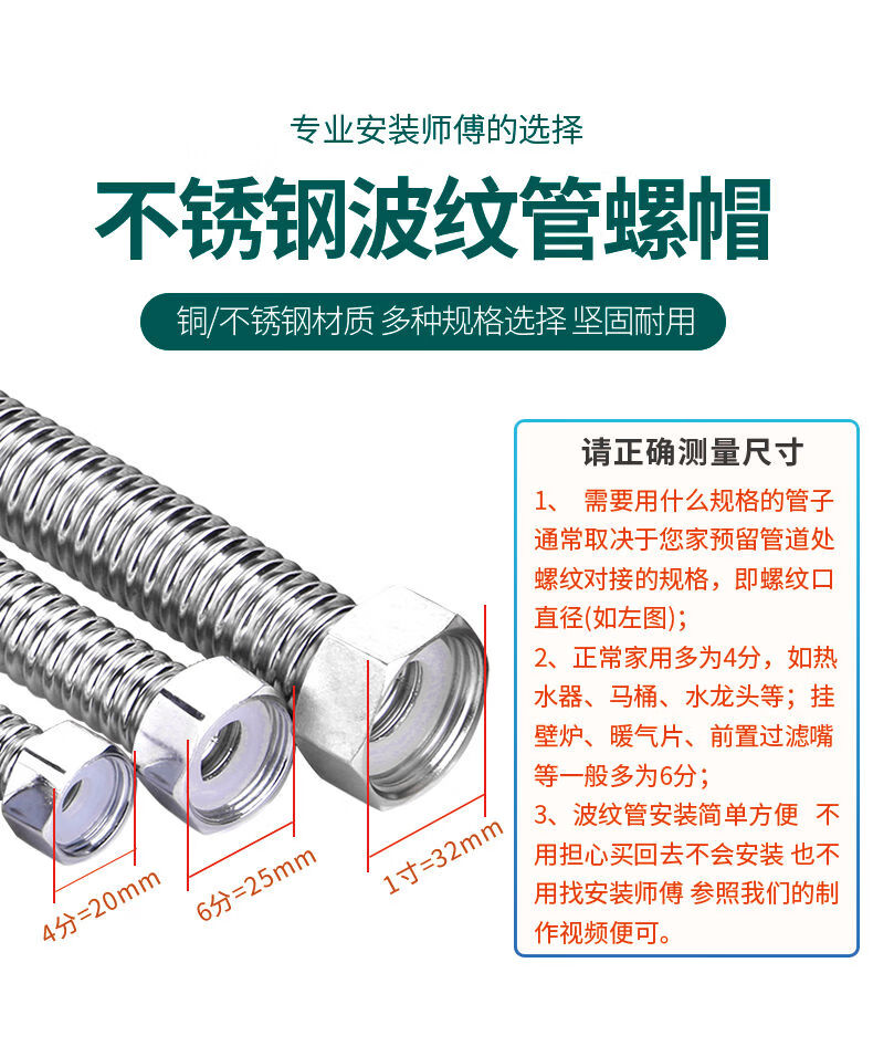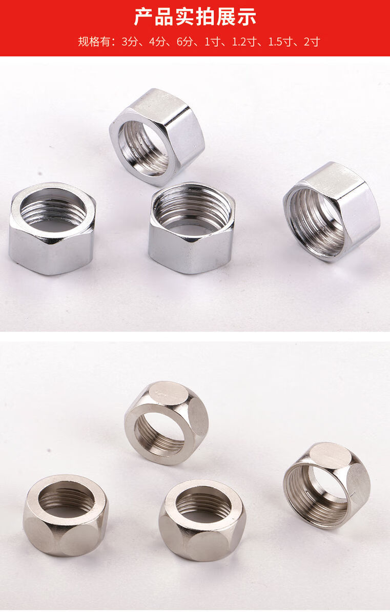 Yonghuan bellows nut 4 points 6 points 1 inch nut gas water heater water inlet pipe threaded joint 4 points 304 steel cap (with 16 tubes) 10 pieces (free 304 circlip gasket