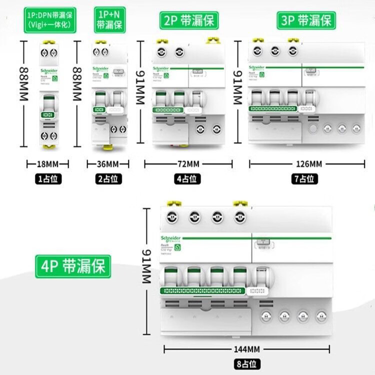Schneider air switch R9 circuit breaker 2P main air switch 63A main switch 4P with leakage protector R9 series with leakage protection (1P+N) occupies 1 place 16A_1P+N