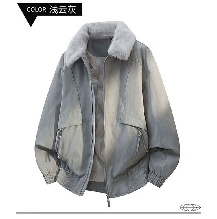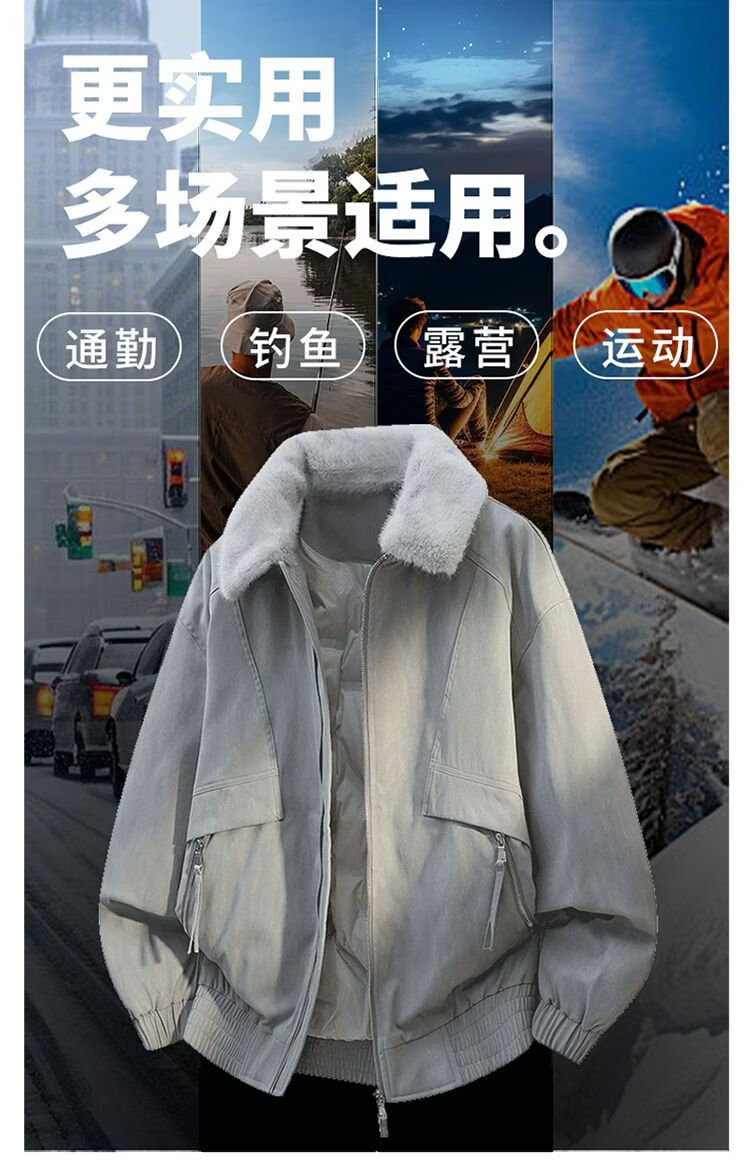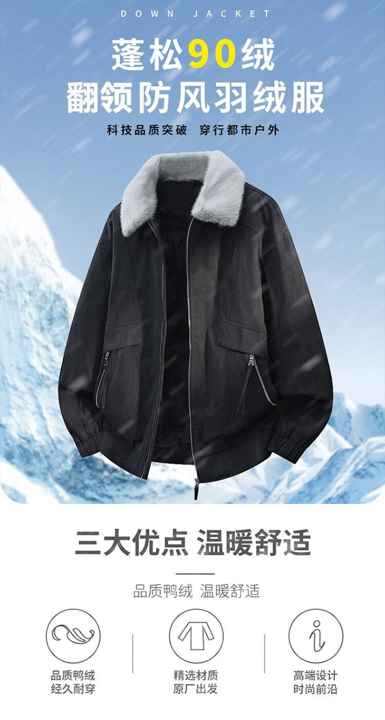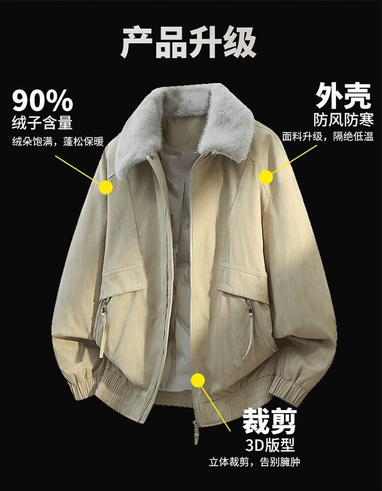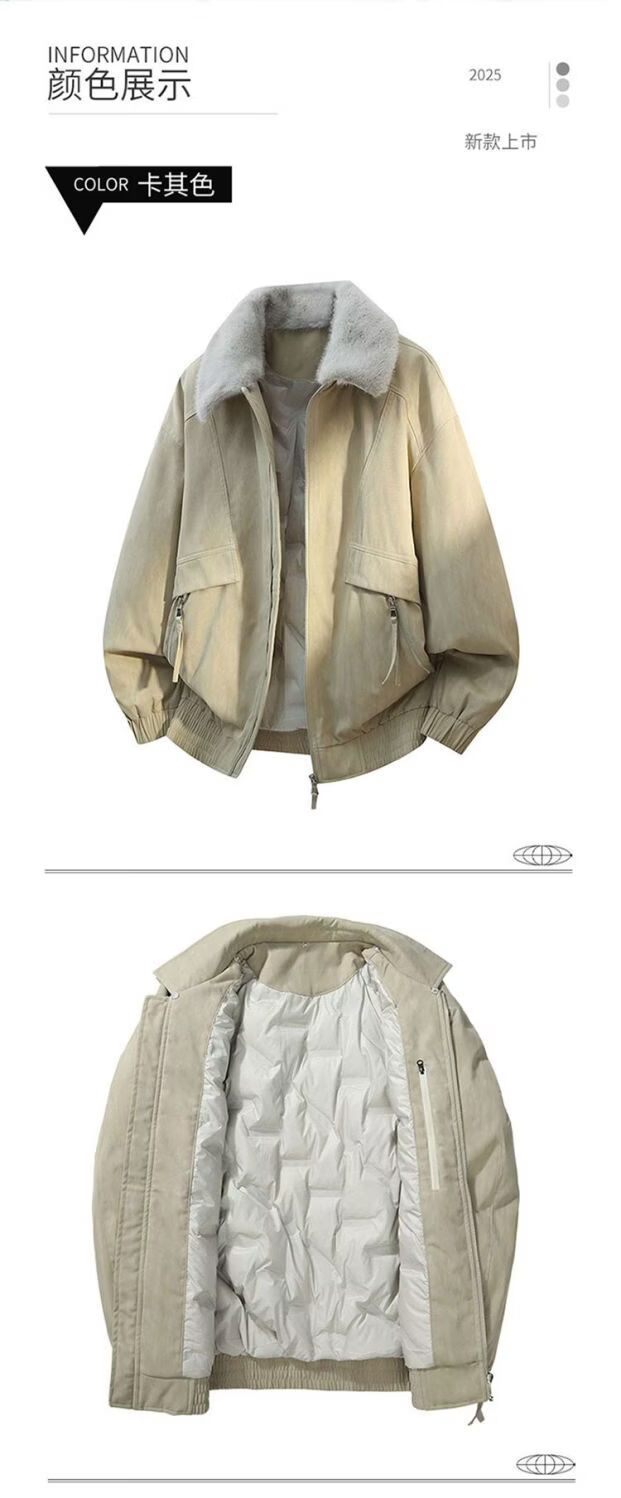 PANMAX New Winter Men's Thickened Fur Collar Trendy Versatile Handsome Casual Warm Jacket Lapel Down Jacket Khaki M Recommended 90-125 catties