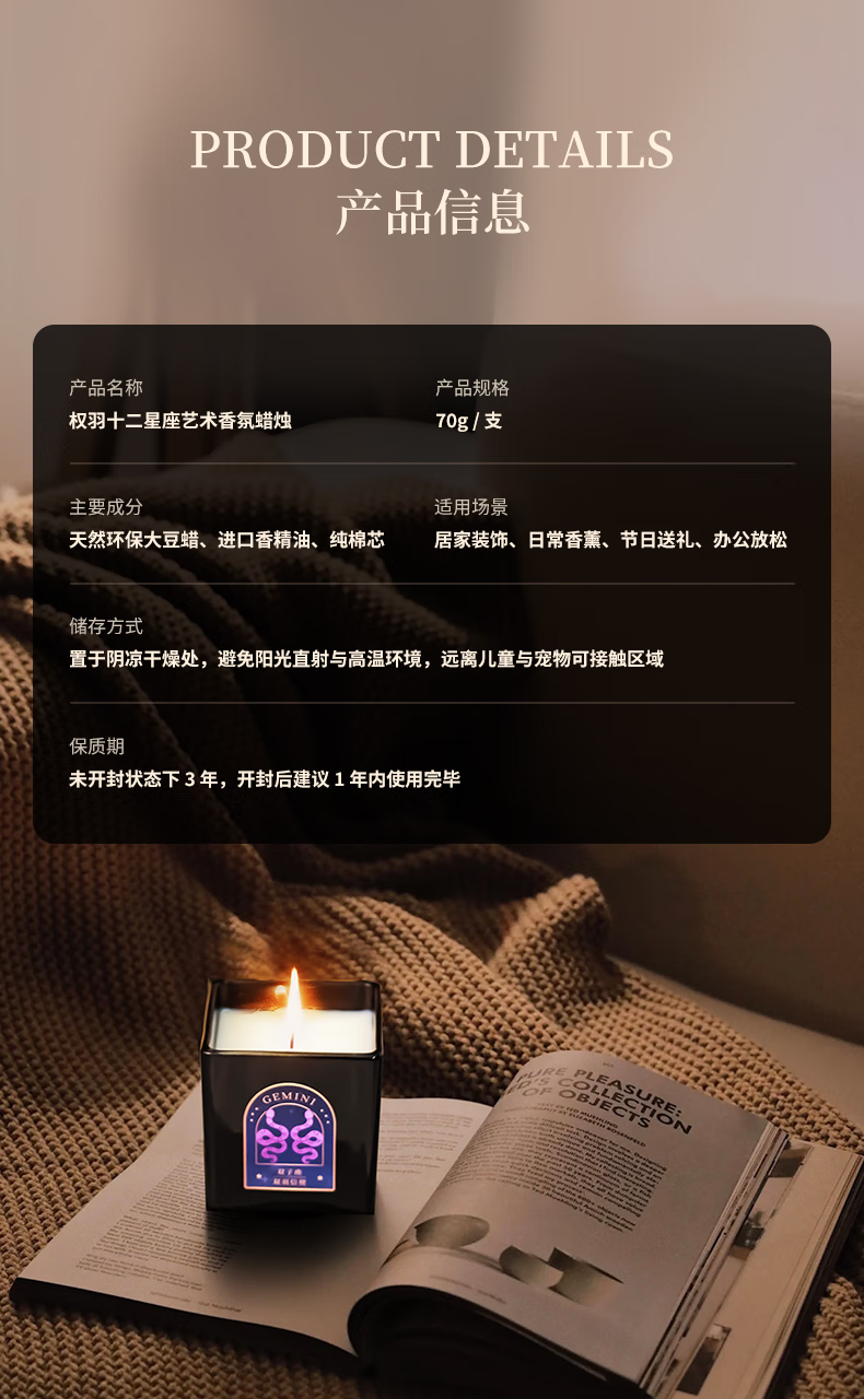 Quan Yu Twelve Constellations Aromatherapy Candle Aromatherapy Gift Box Souvenir Premium Indoor Fragrance Wedding and Birthday Gift Virgo | August 23-September 22