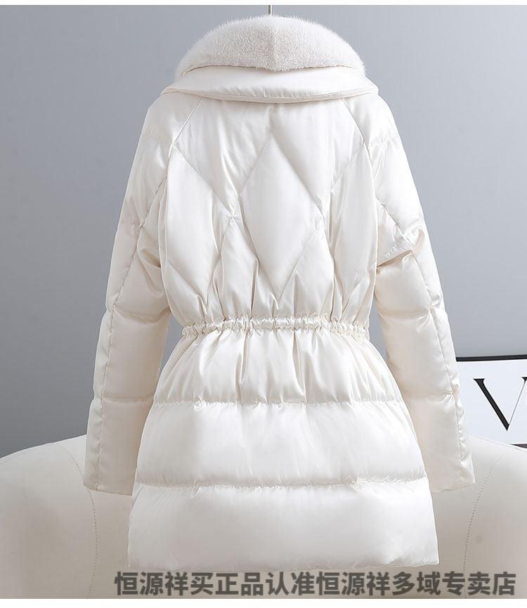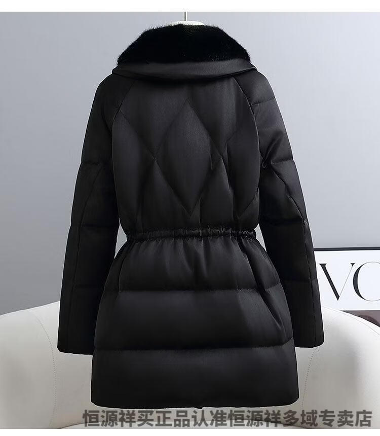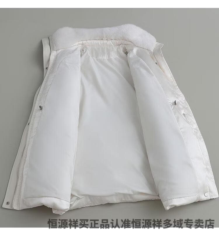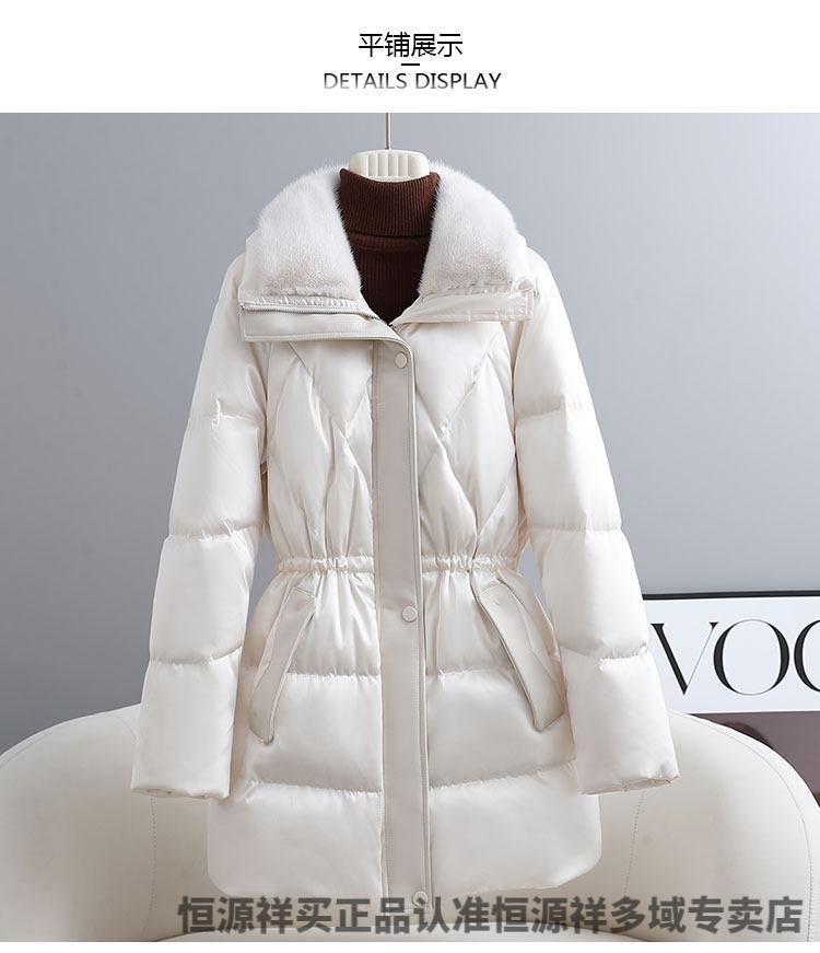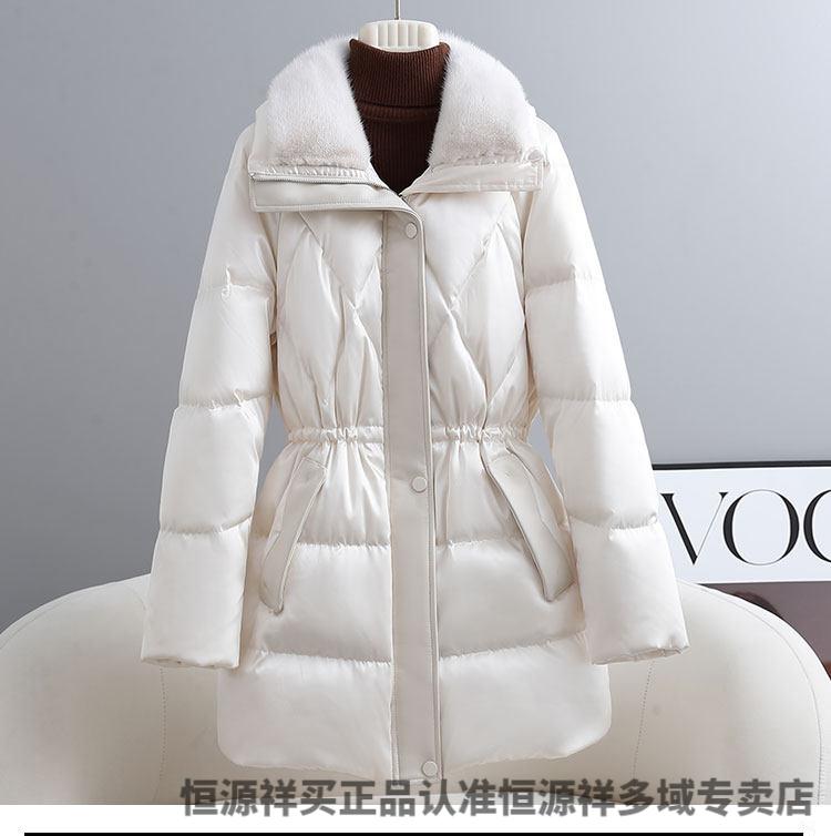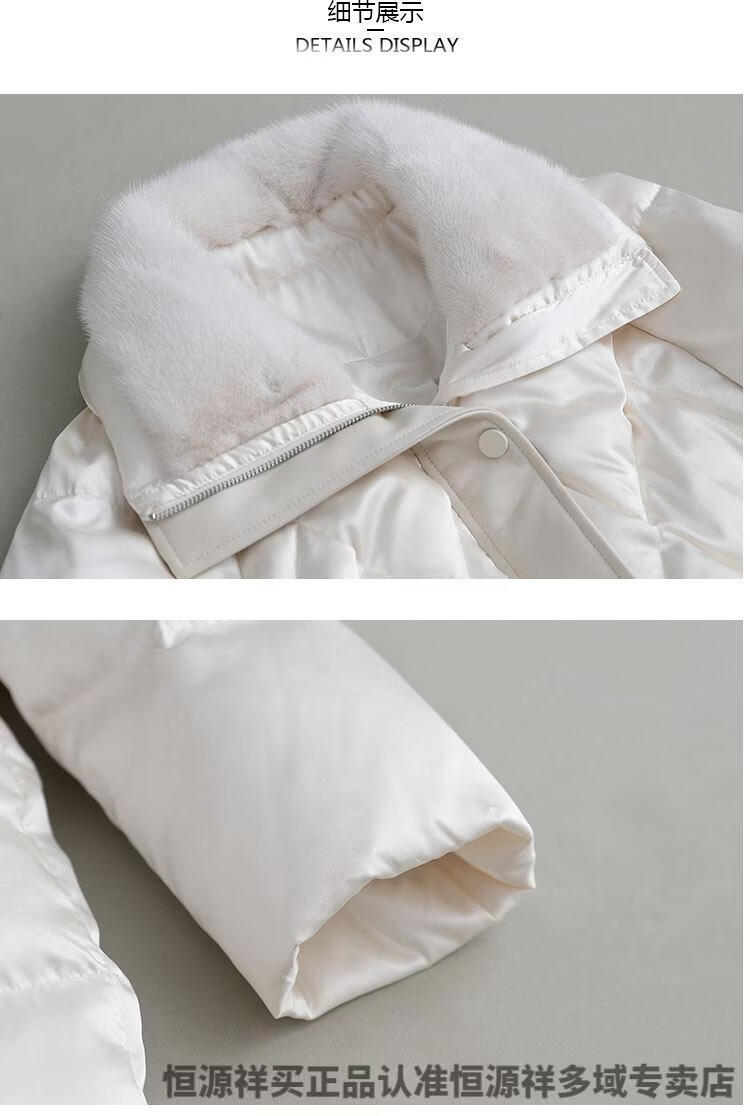 Hengyuanxiang brand women's winter high-end white goose down down jacket women's waist slimming imported mink fur collar Haining fur jacket milky white S