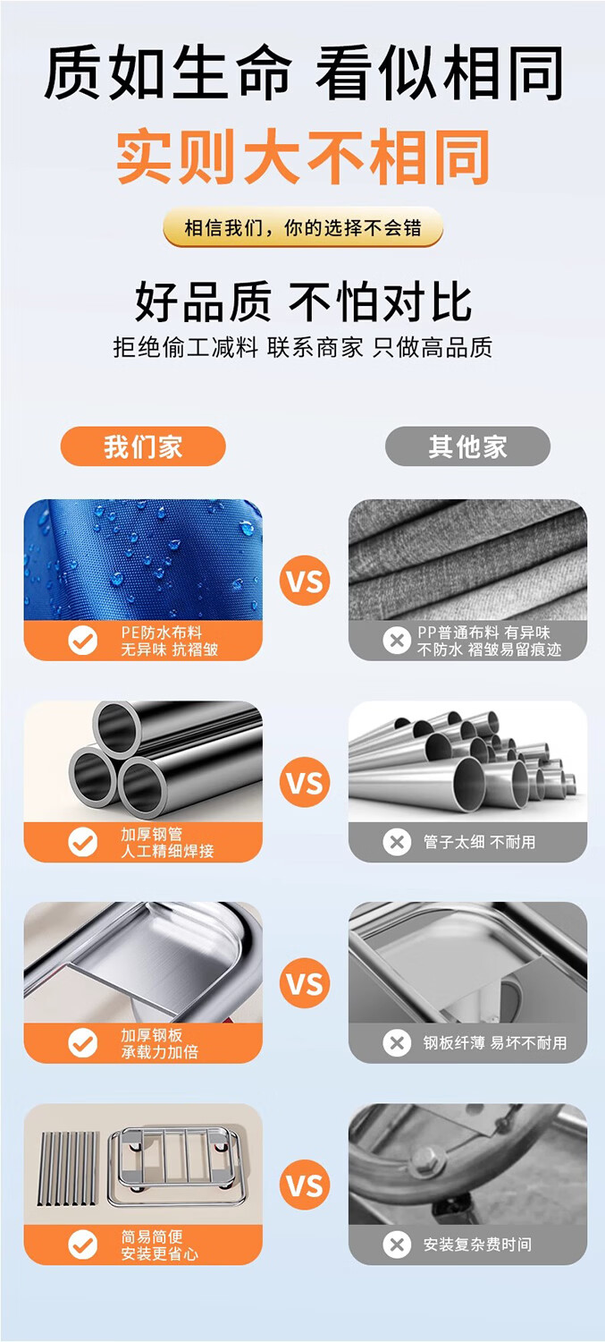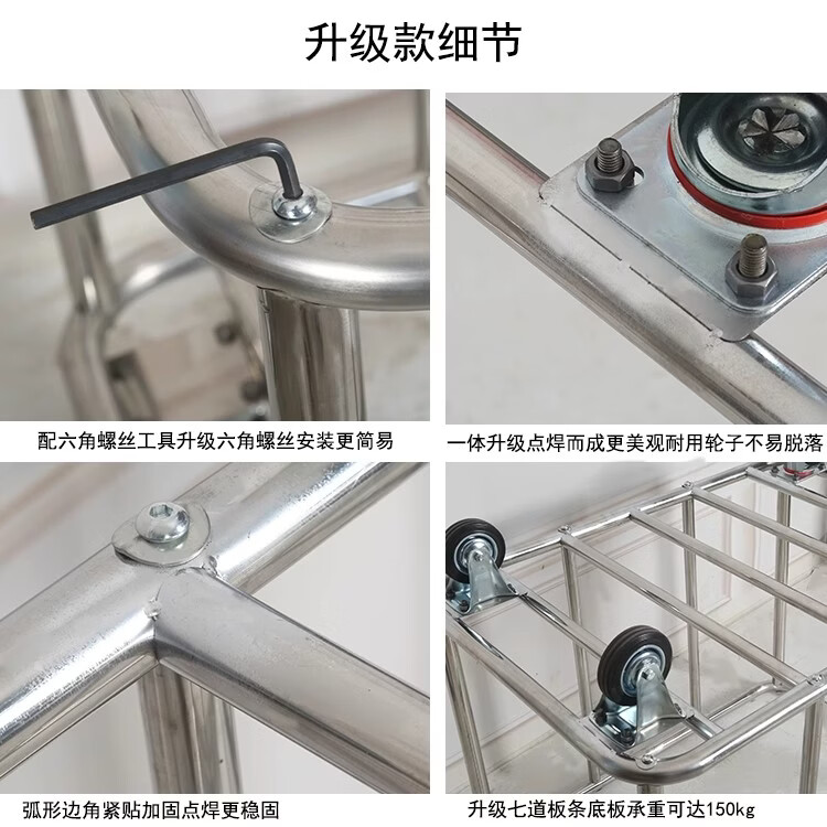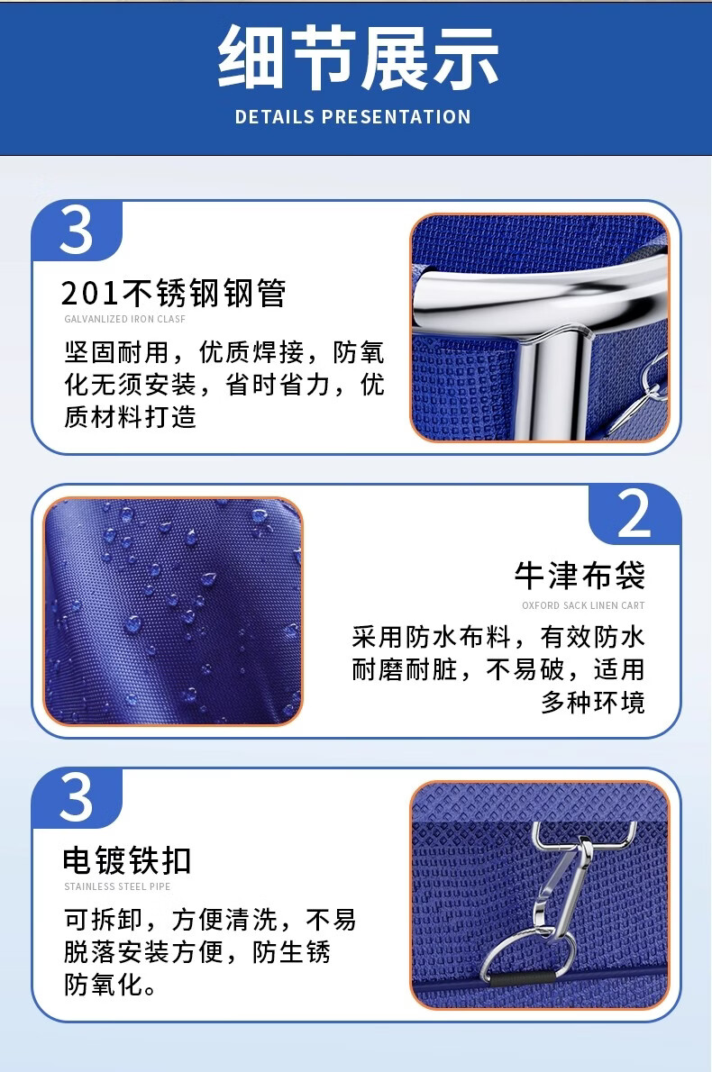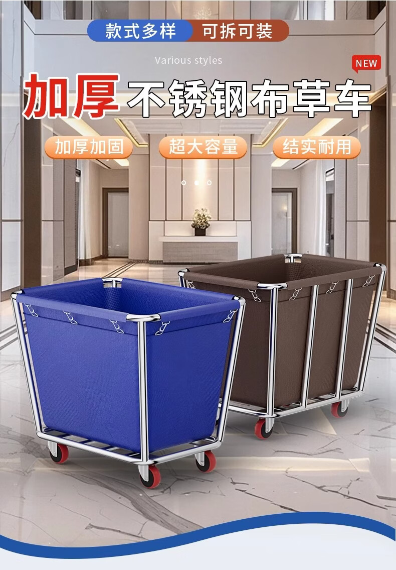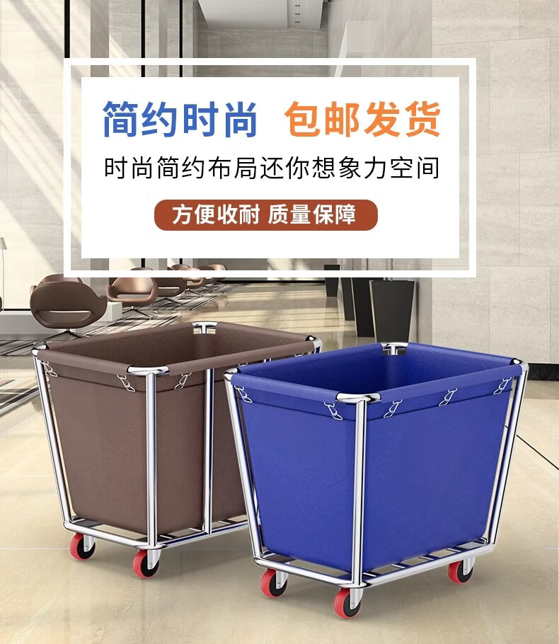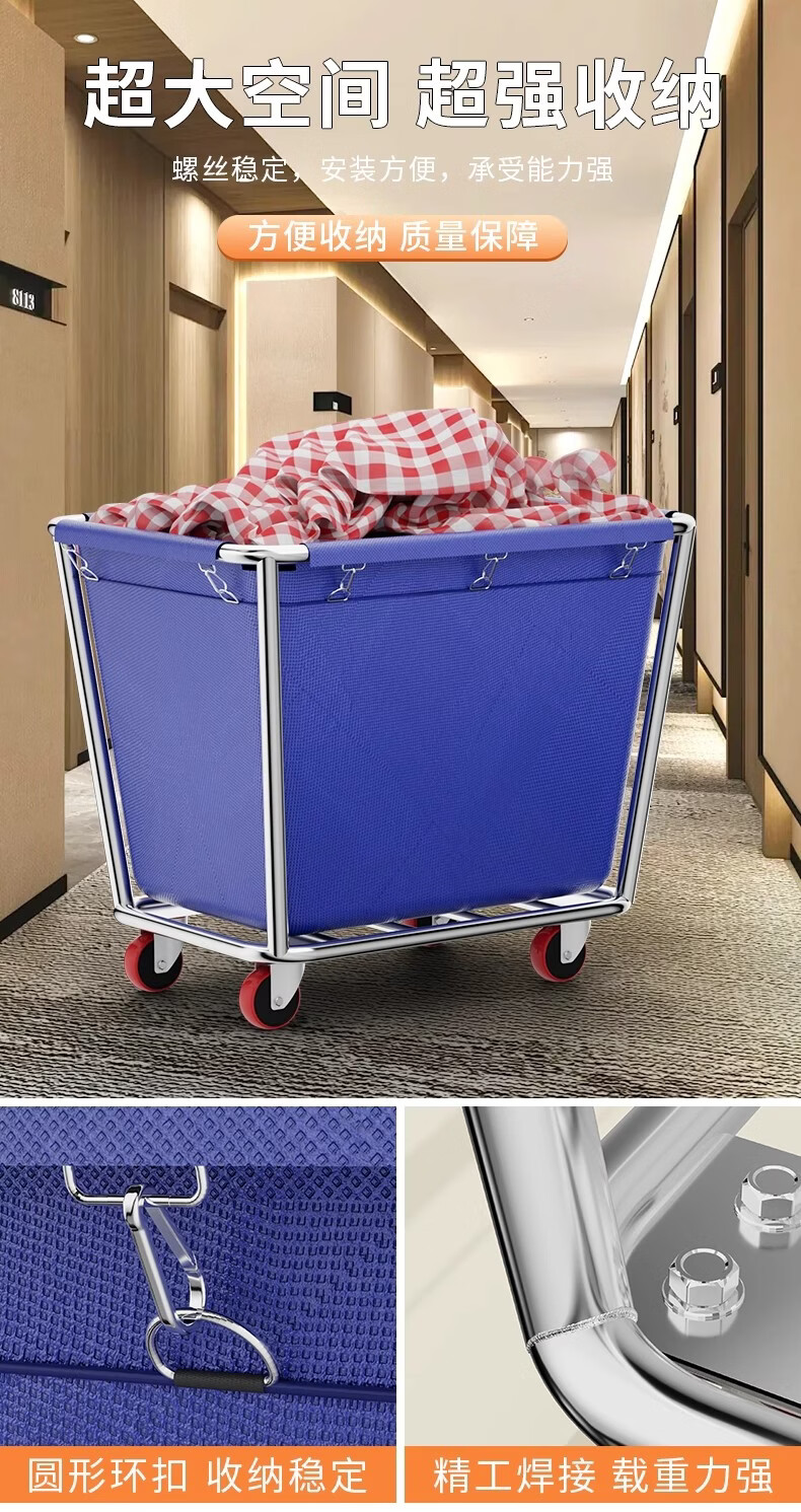 Qiaochen Linen Cart Hotel Guest Room Service Cart Stainless Steel Cart Laundry Room Dry Cleaning Shop Storage Recycling Cart (Blue) - Disassembly and Assembly of 4 Tubes