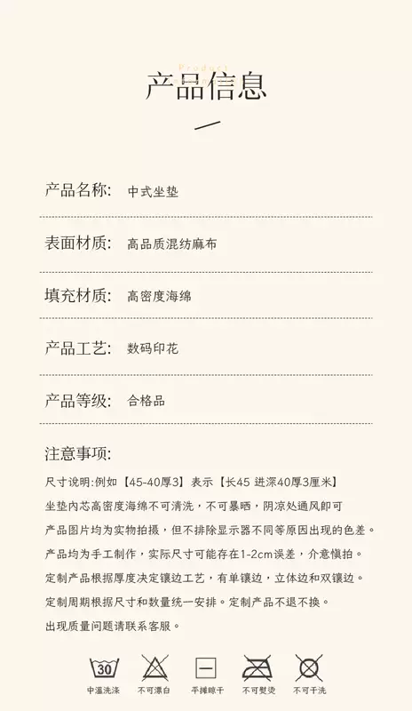 Yusenyi furniture armchair mahogany sofa cushion solid wood new Taishi Chinese style chair tea thickened chair cushion anti-Fu Linmen cushion (45x45cm) thickness 3cm