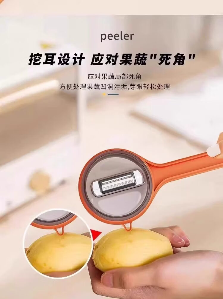 Shantou Lincun multifunctional peeling knife with storage compartment for household visual storage peeler, food grade light green, 2 pieces, free hook and lid storage box_anti-peeling