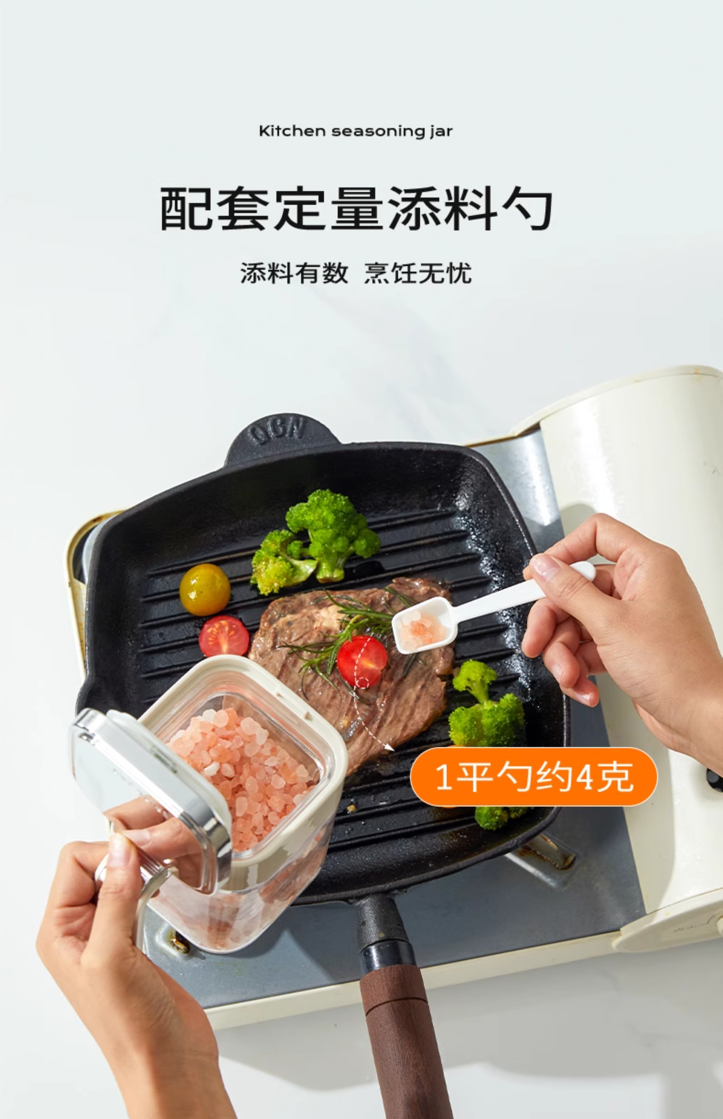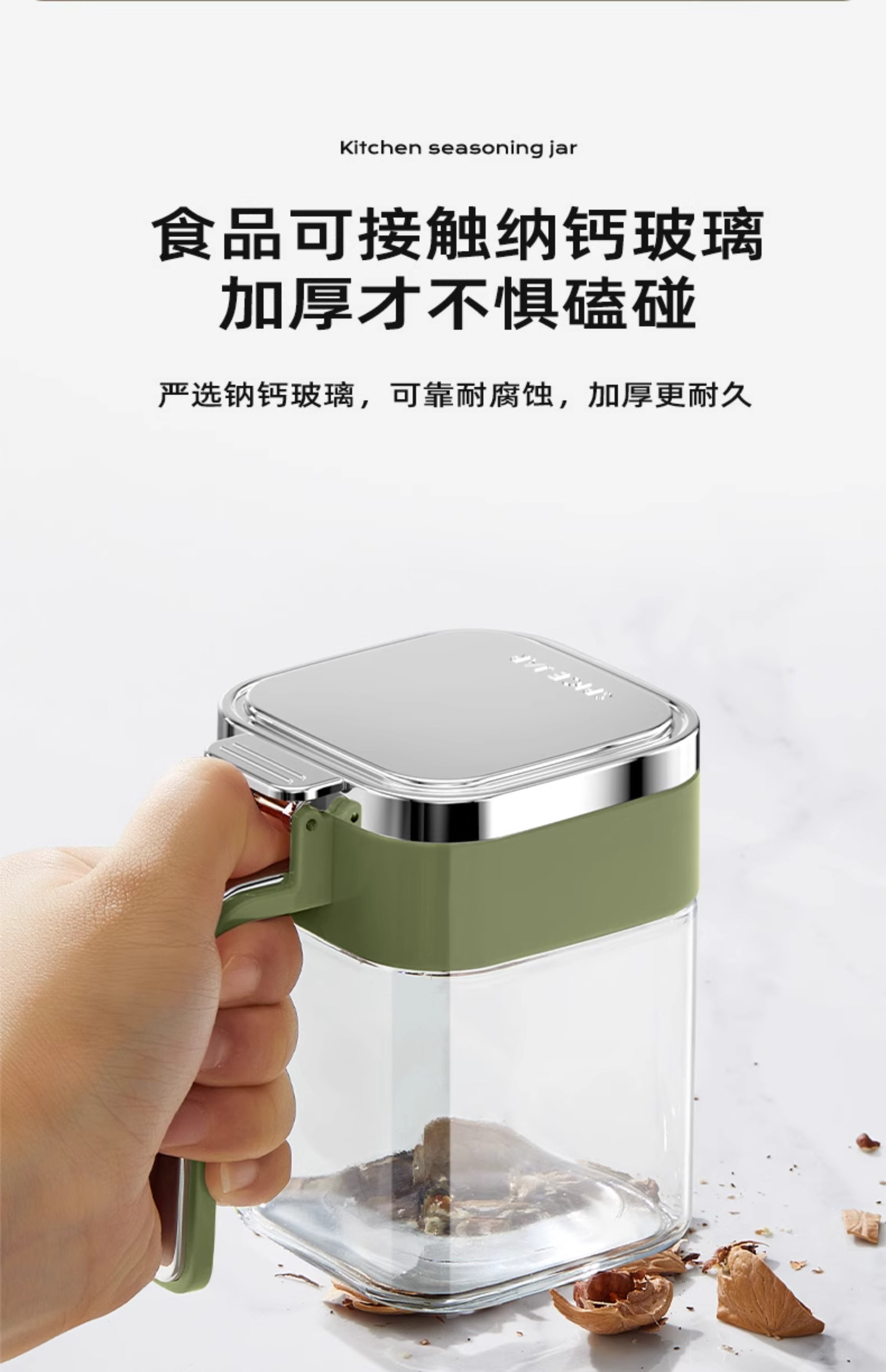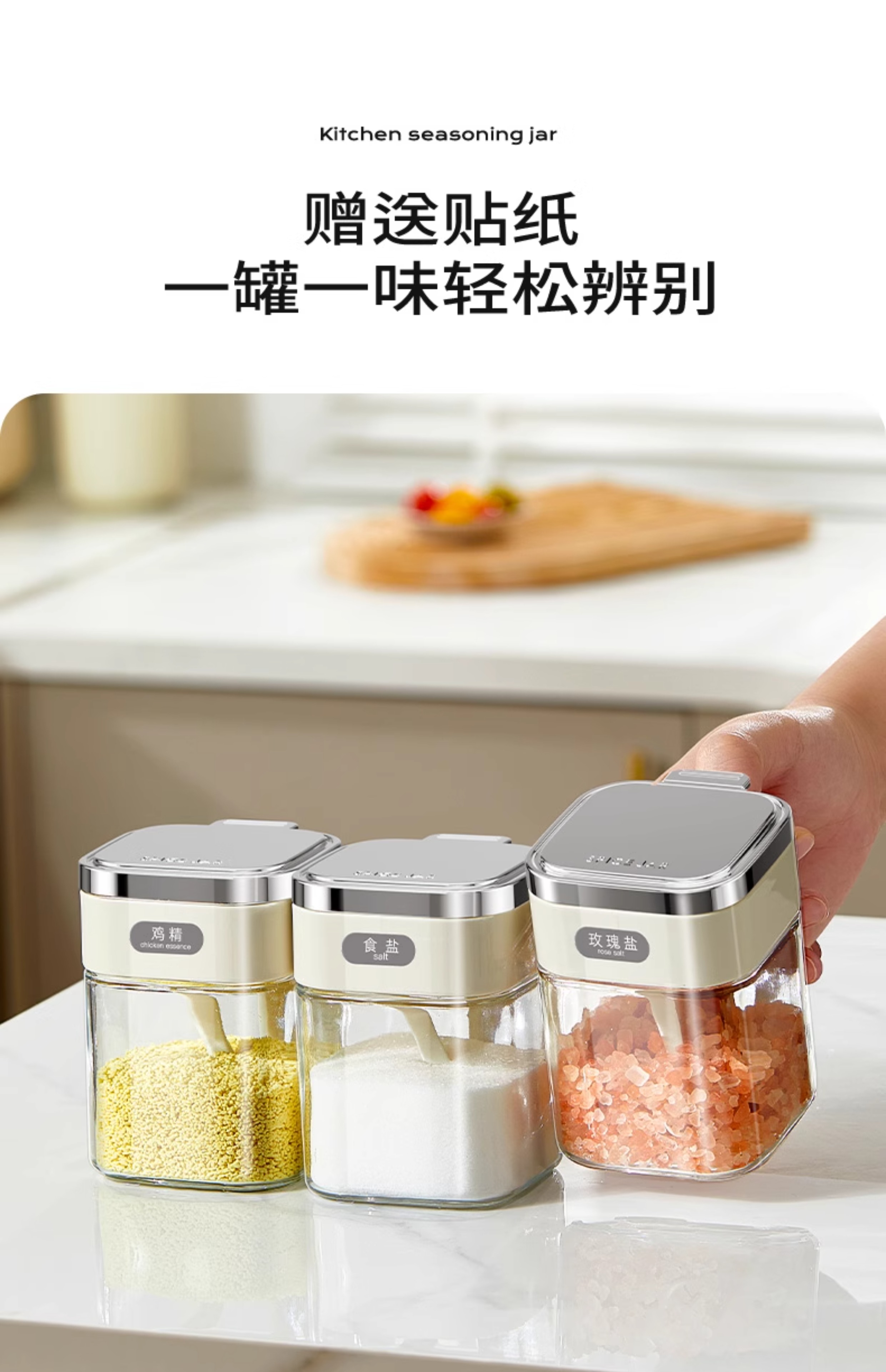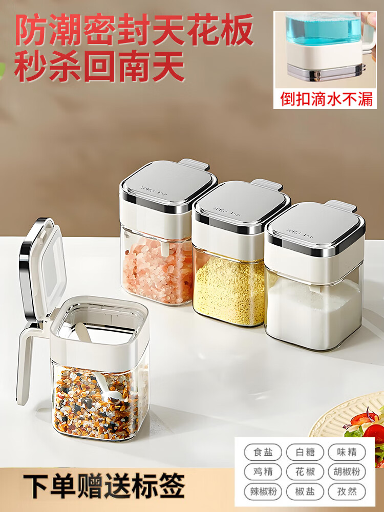 Home KATEI STORY Japanese moisture-proof seasoning box glass home kitchen high-end seasoning box storage combination salt shaker sealed seasoning bottle jar off-white 4 pieces free label sticker + seasoning spoon