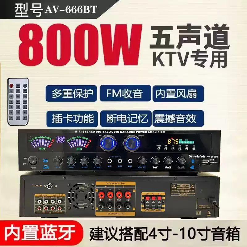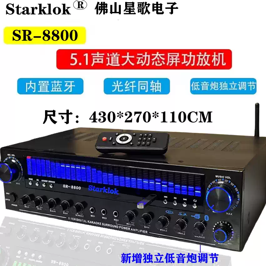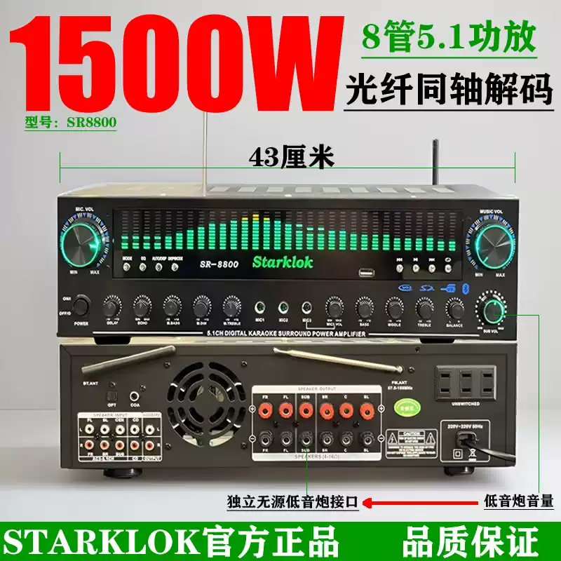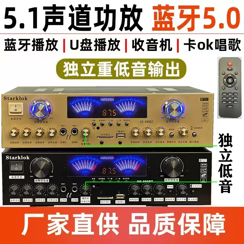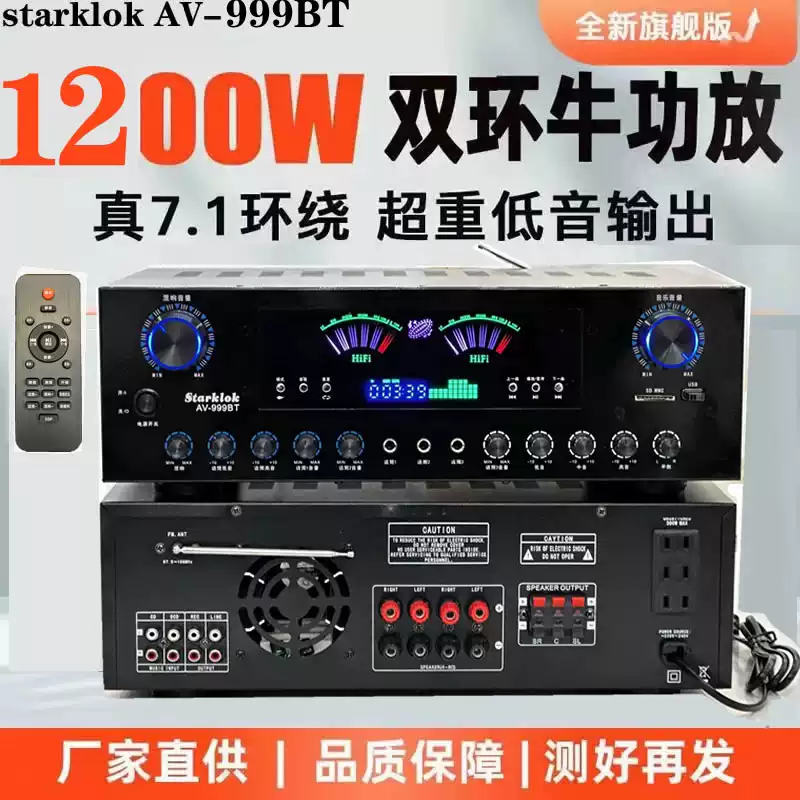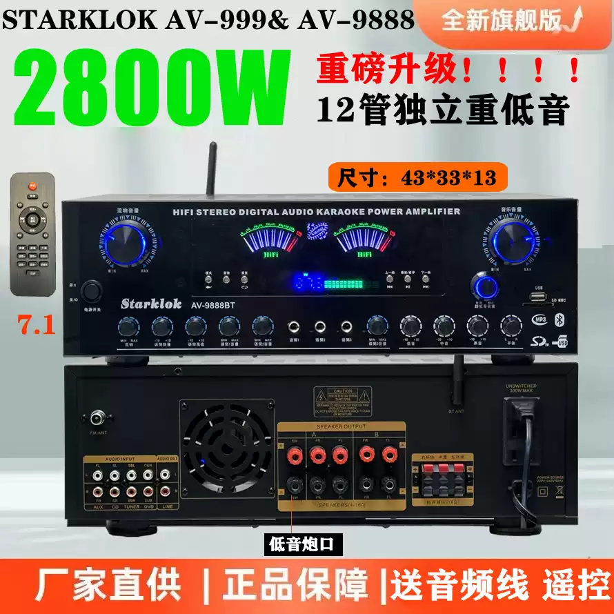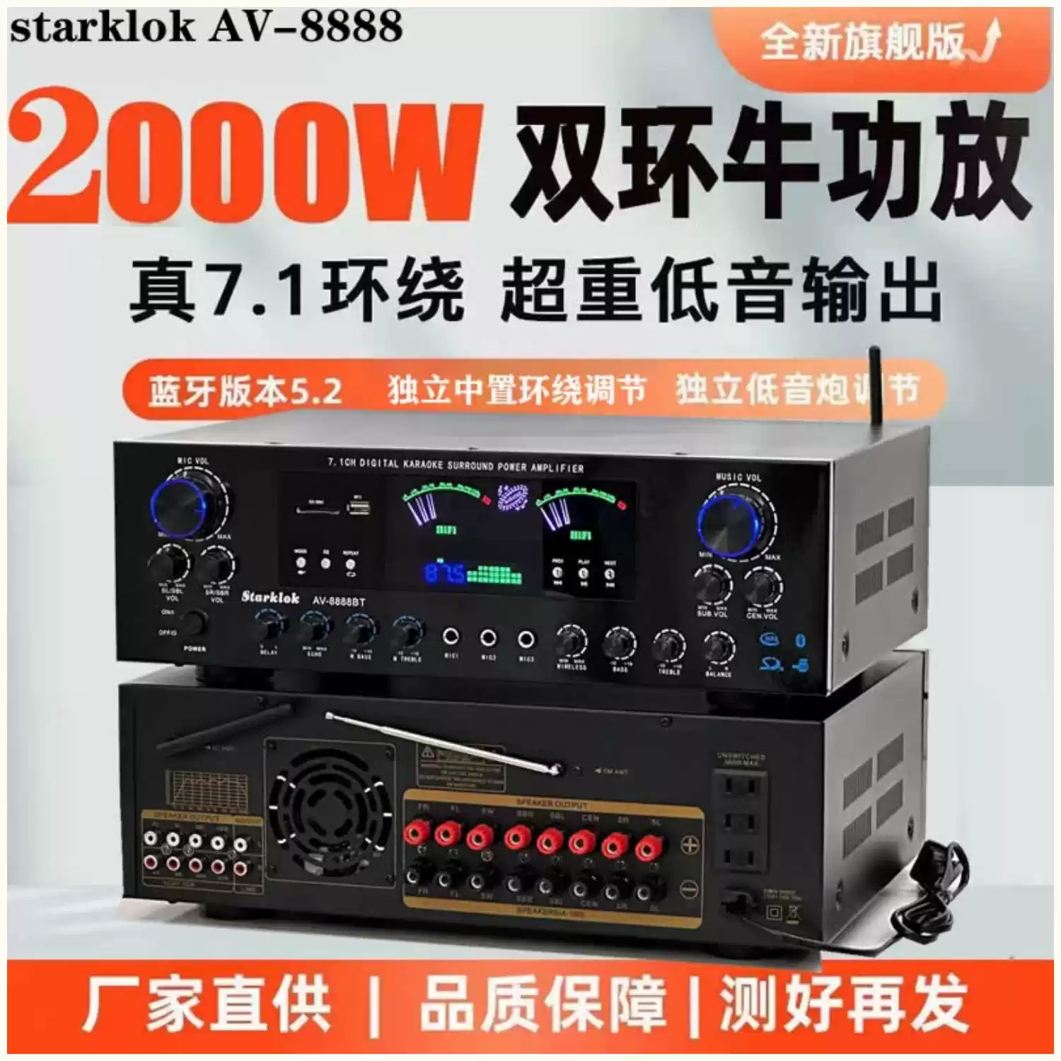STARKLOK7.1 double-ring cattle home theater Bluetooth amplifier home high-power amplifier KTV professional fever 5th generation alloy plate-fiber coaxial golden hao