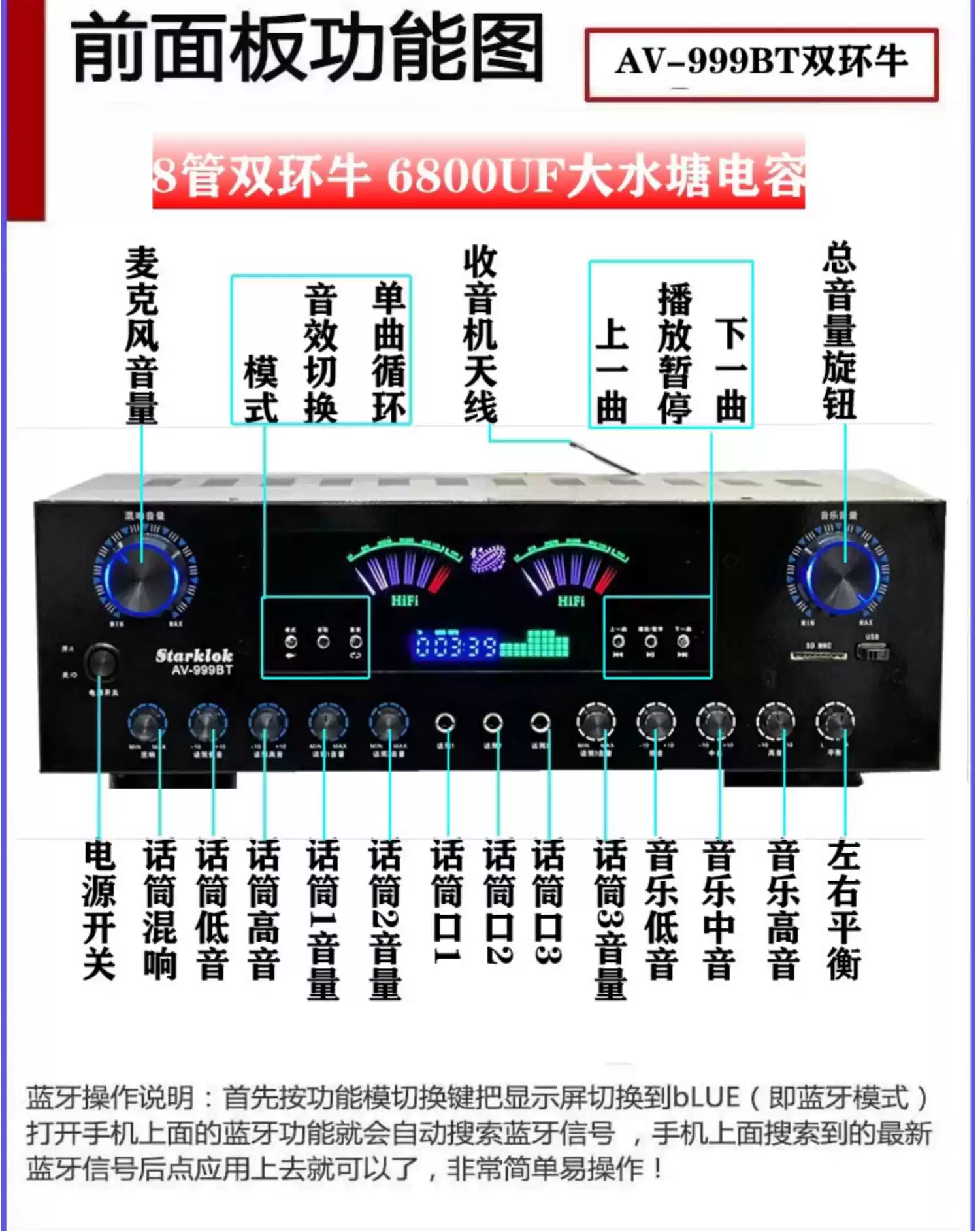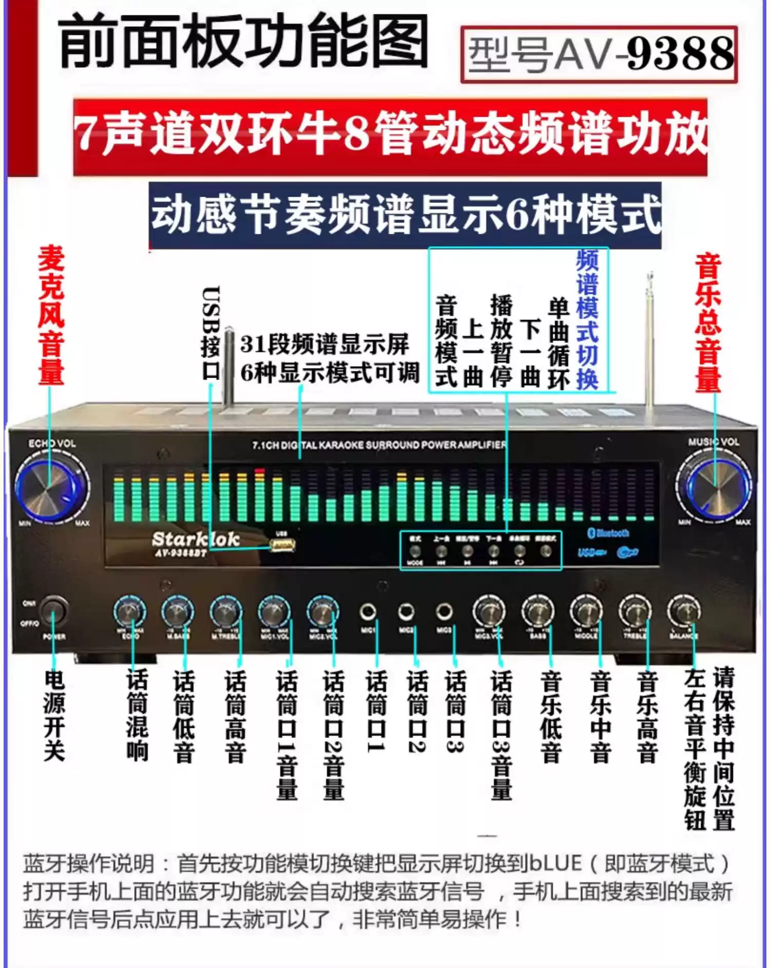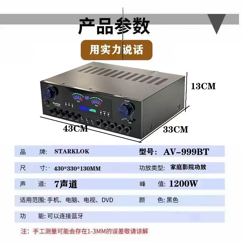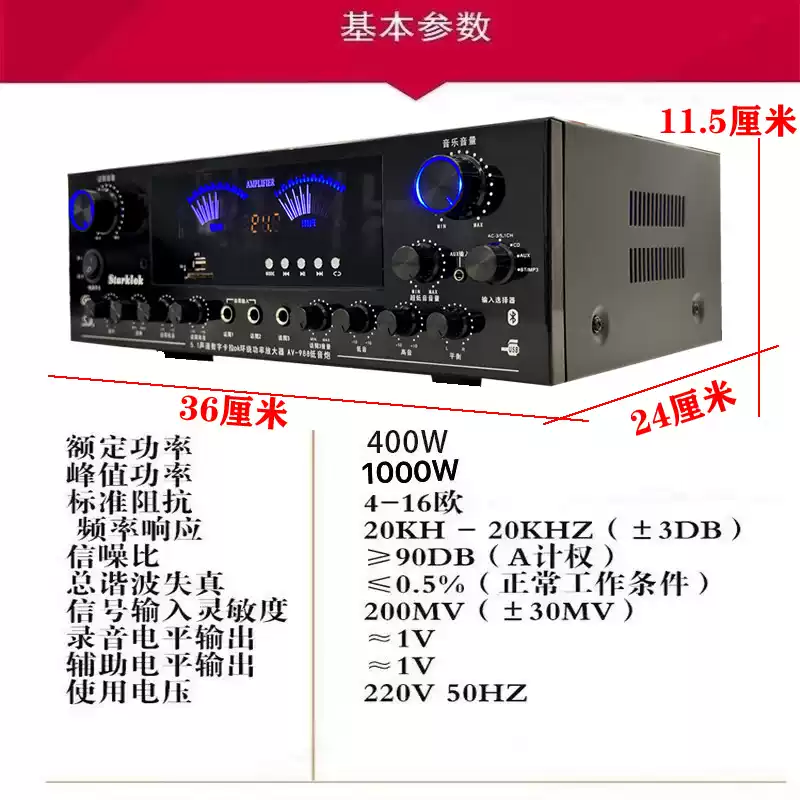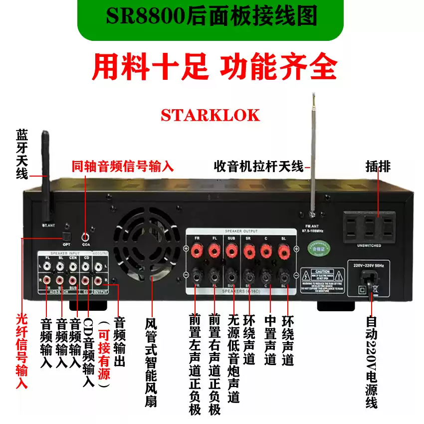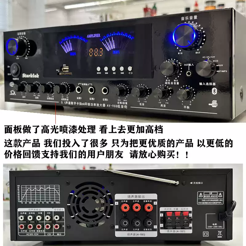 STARKLOK7.1 double-ring cattle home theater Bluetooth amplifier home high-power amplifier KTV professional fever 5th generation alloy plate-fiber coaxial golden hao