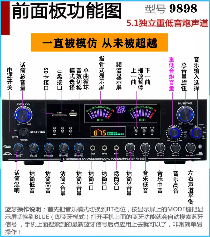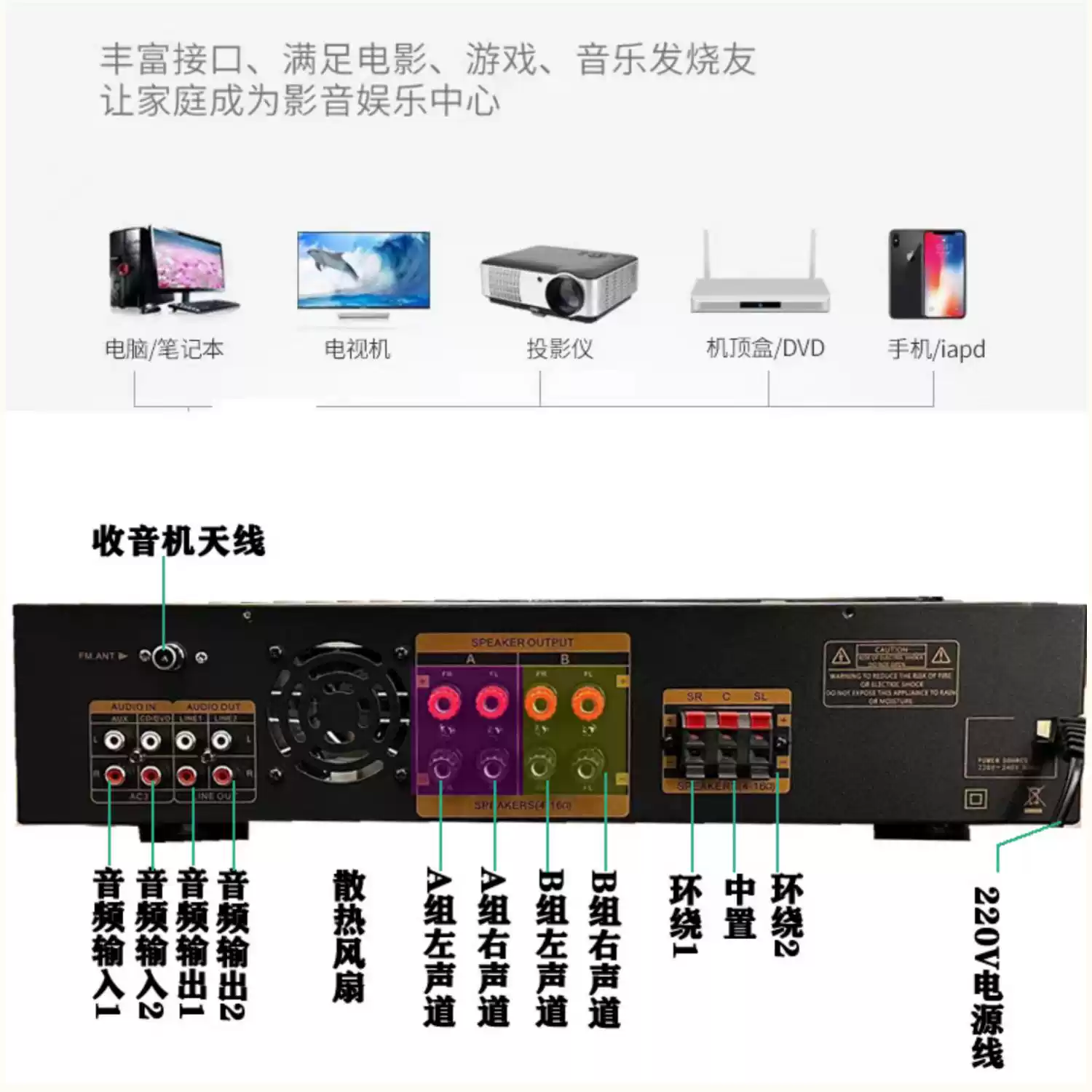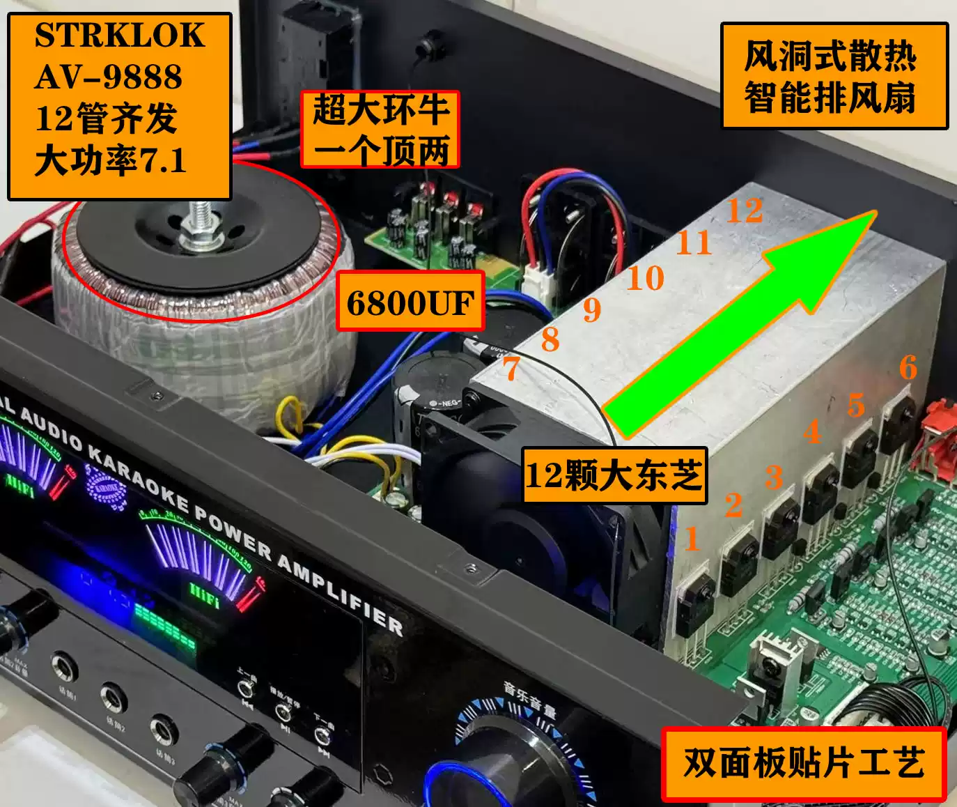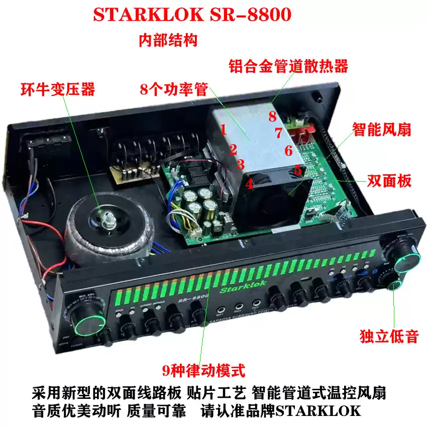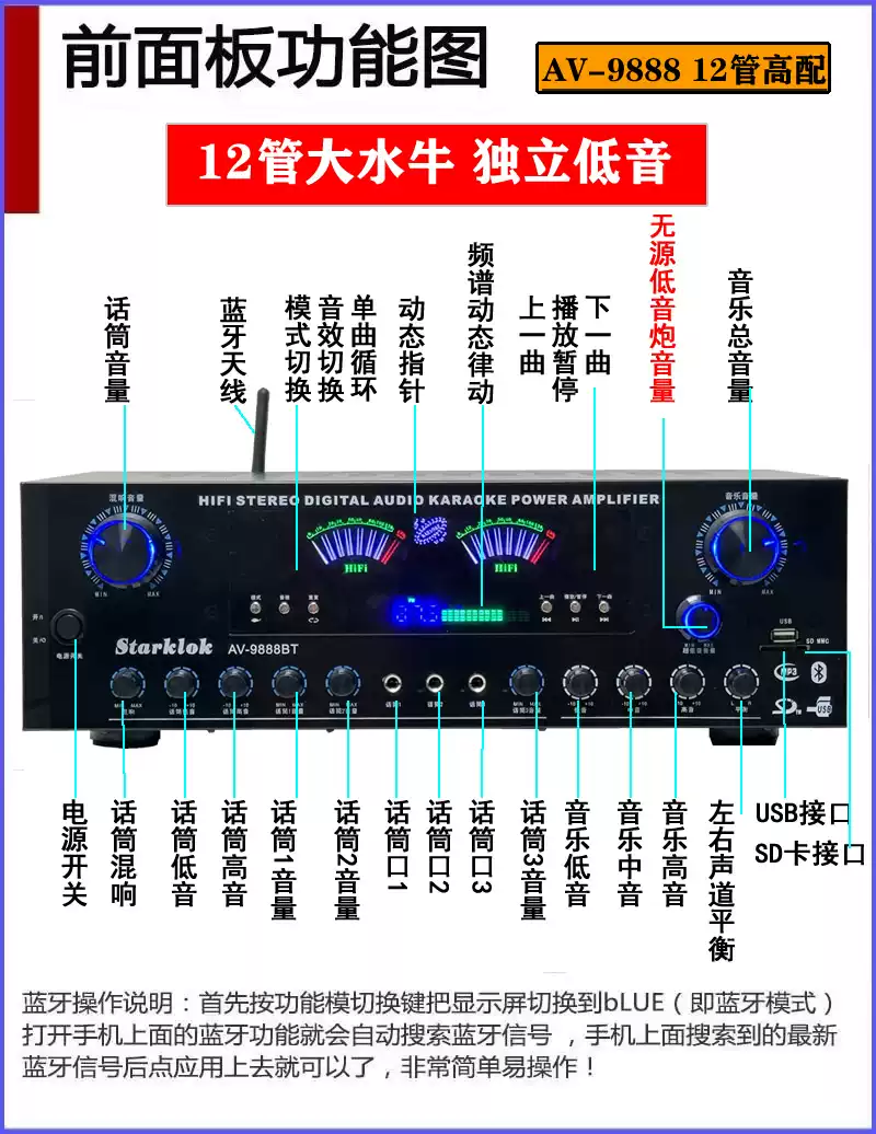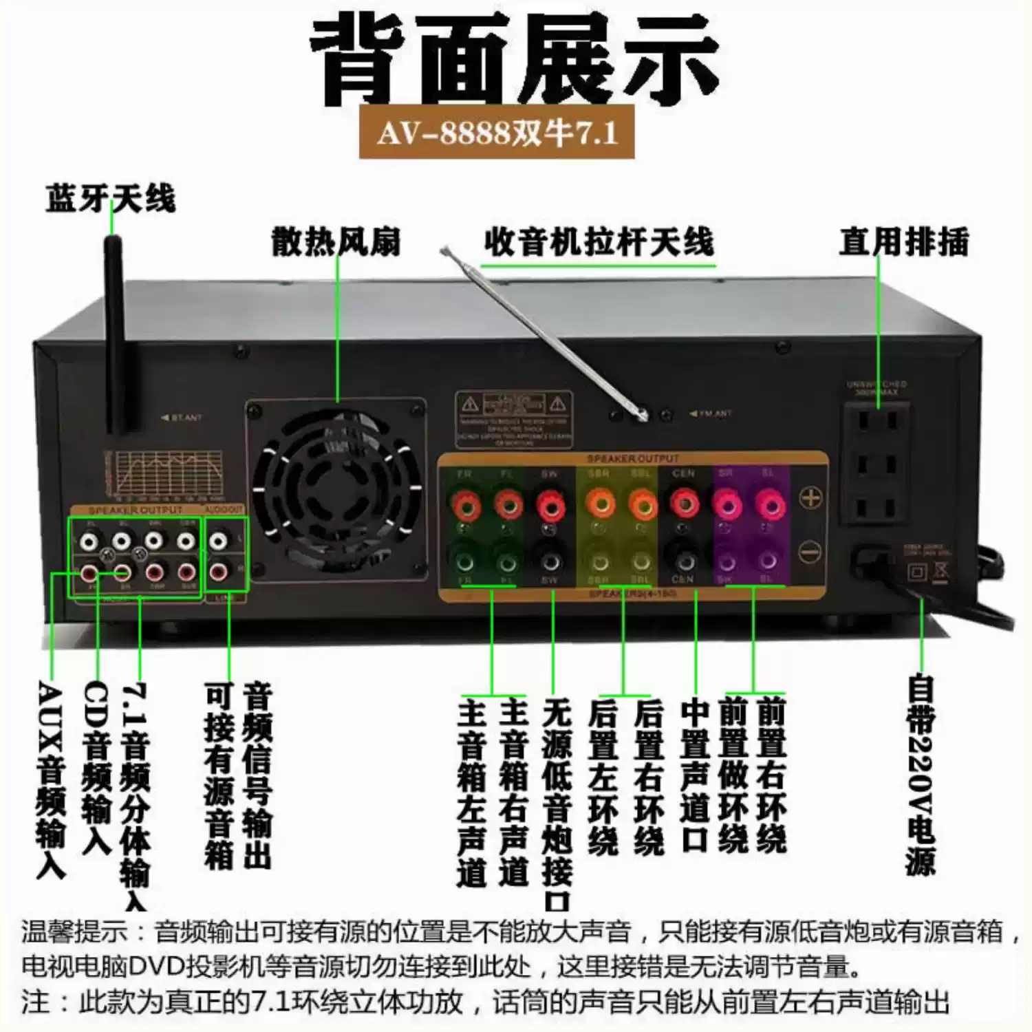 STARKLOK7.1 double-ring cattle home theater Bluetooth amplifier home high-power amplifier KTV professional fever 5th generation alloy plate-fiber coaxial golden hao