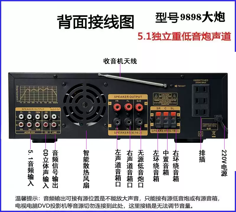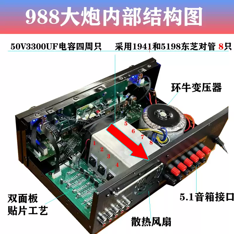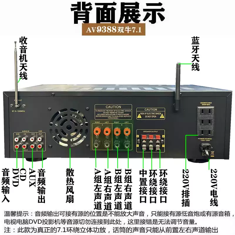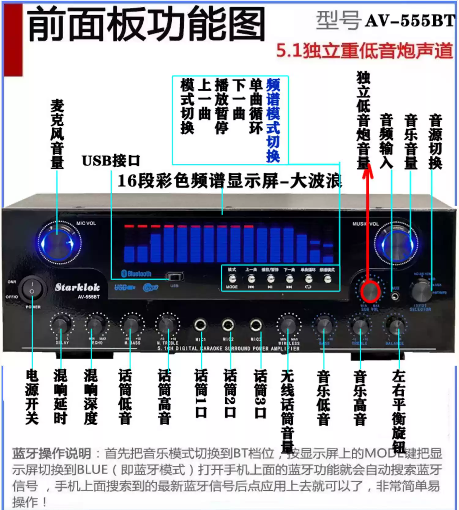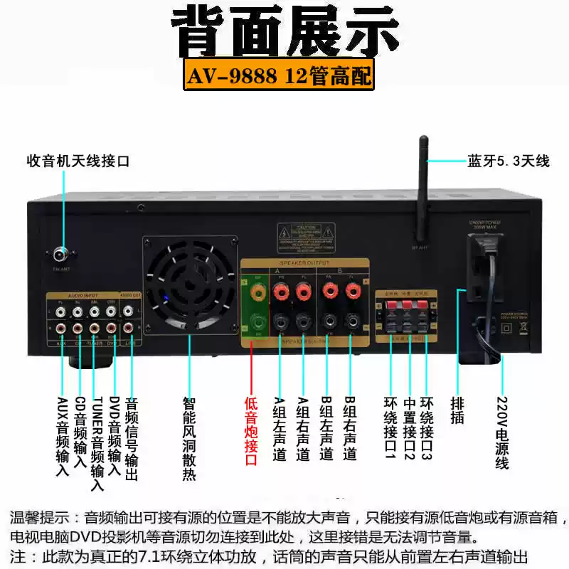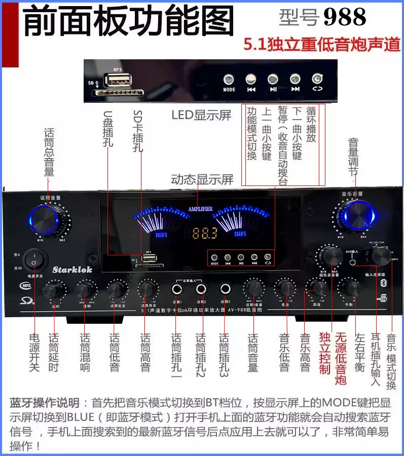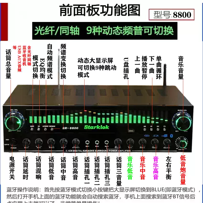 STARKLOK7.1 double-ring cattle home theater Bluetooth amplifier home high-power amplifier KTV professional fever 5th generation alloy plate-fiber coaxial golden hao