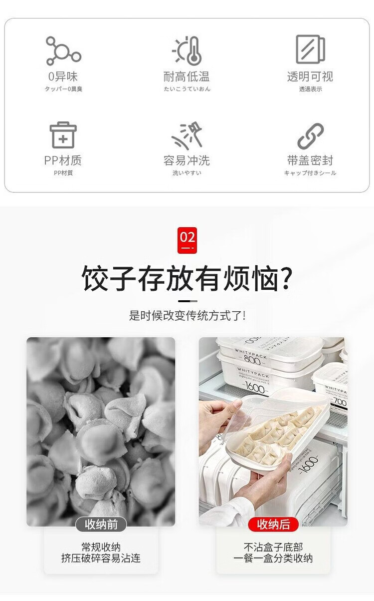 Huaiman imported from Japan, special dumpling box for small refrigerator, household food-grade frozen raw dumplings and wontons, small storage and preservation, hot-selling recommendation 800ml*5 pieces, food-grade material, can hold 80 pieces, default