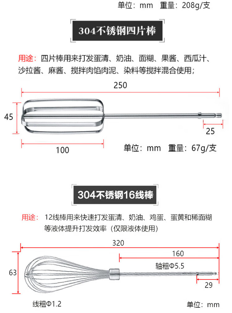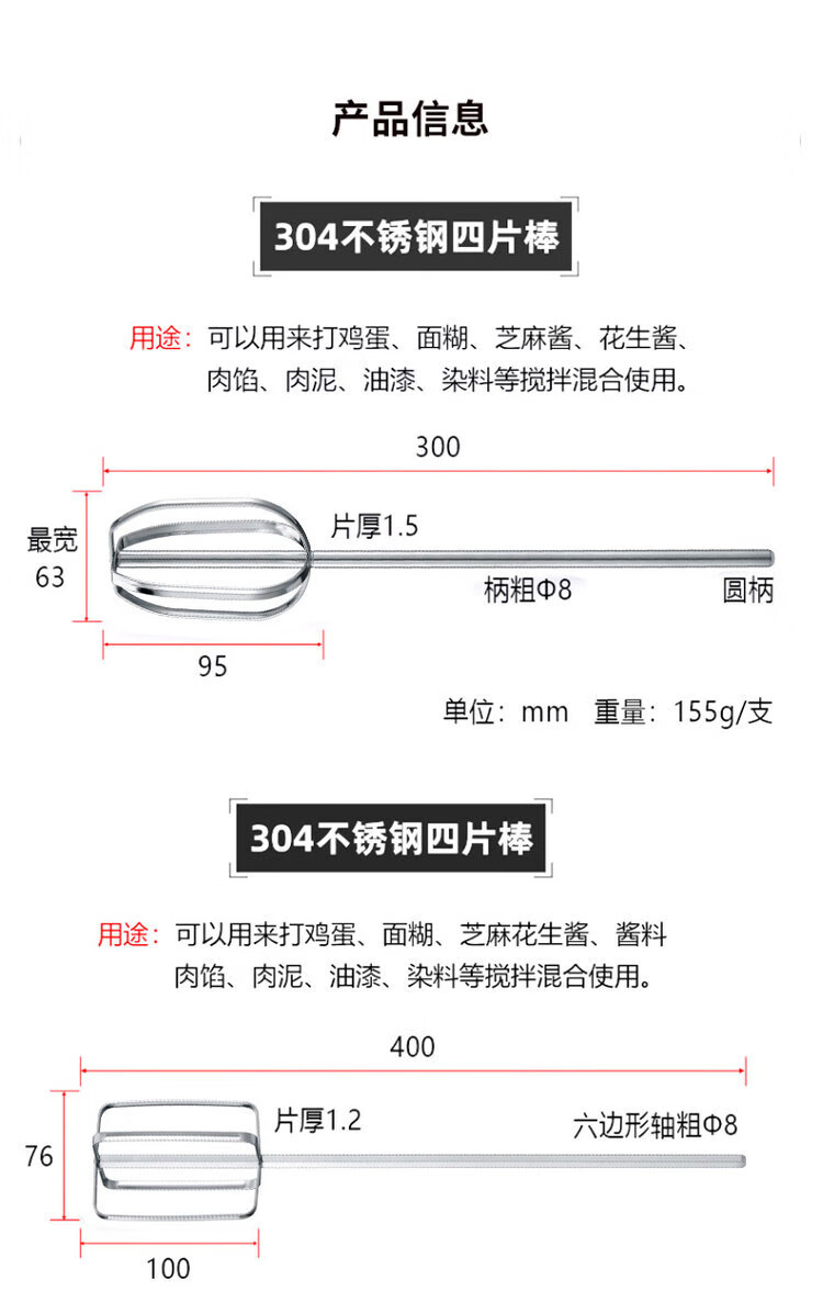 Sailoto egg beater stirring rod accessories head electric commercial and batter sesame sauce meat filling machine hand extension rod stainless steel 40cm extended thickened hexagonal four-piece rod