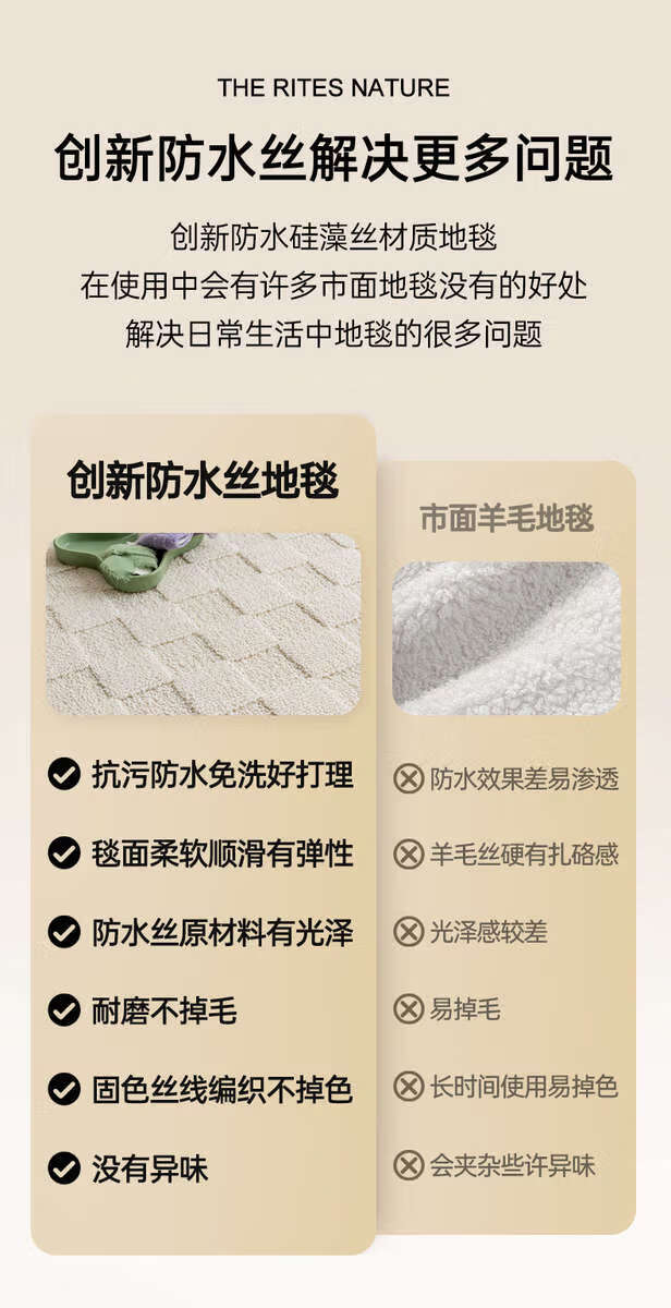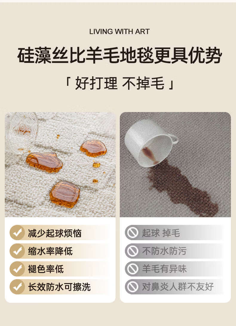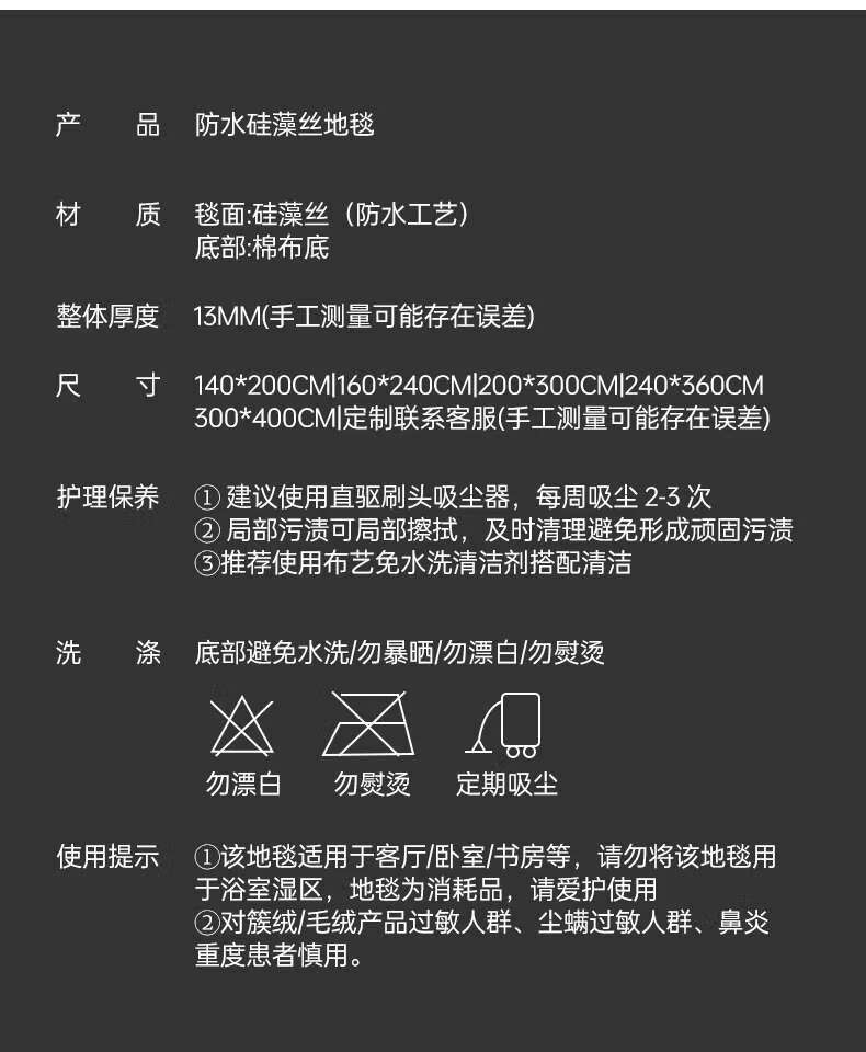 Yusenyi Diatom Silk Living Room Waterproof Large Carpet Mat No-Clean and Wipeable Bedroom Sofa Premium Lanka 01 Waterproof Diatom Silk 200cmx300cm
