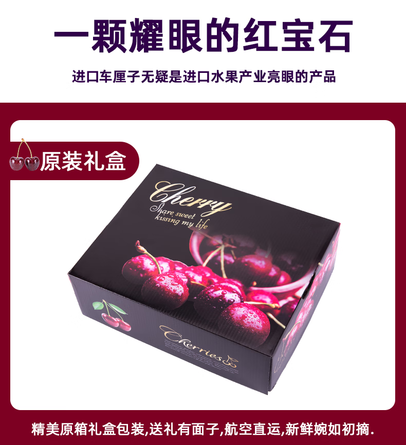 Fresh Premium Chilean Cherries JD/SF Next Day Delivery to Multiple Places Imported Fresh Big Cherries Seasonal Fruit Gift Box 1.8kg (net weight) Affordable Family Gift Box Super Big Mac 4J Single Fruit 32-34mm