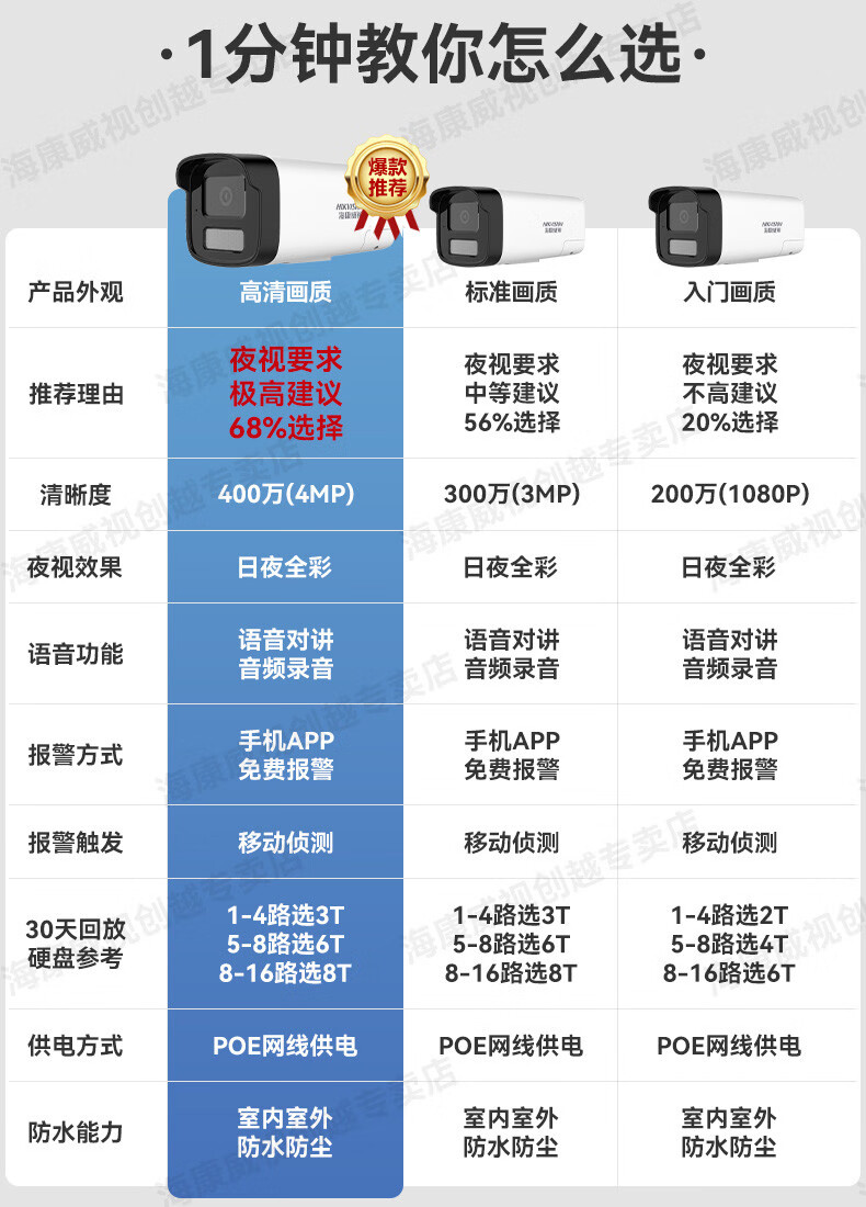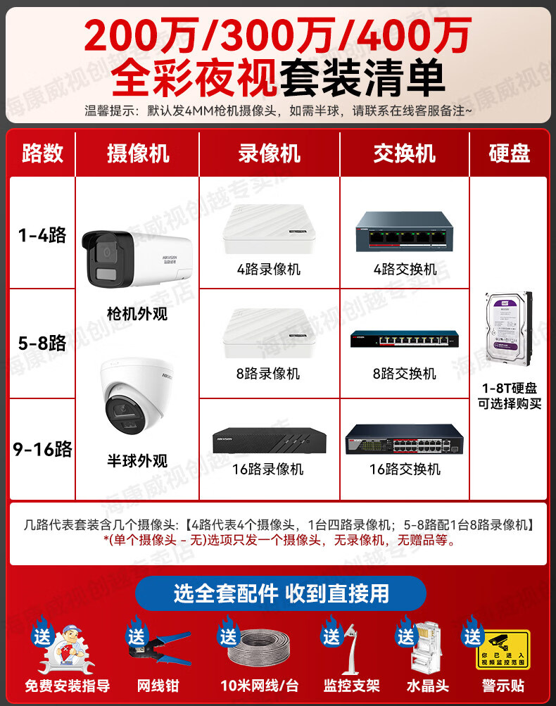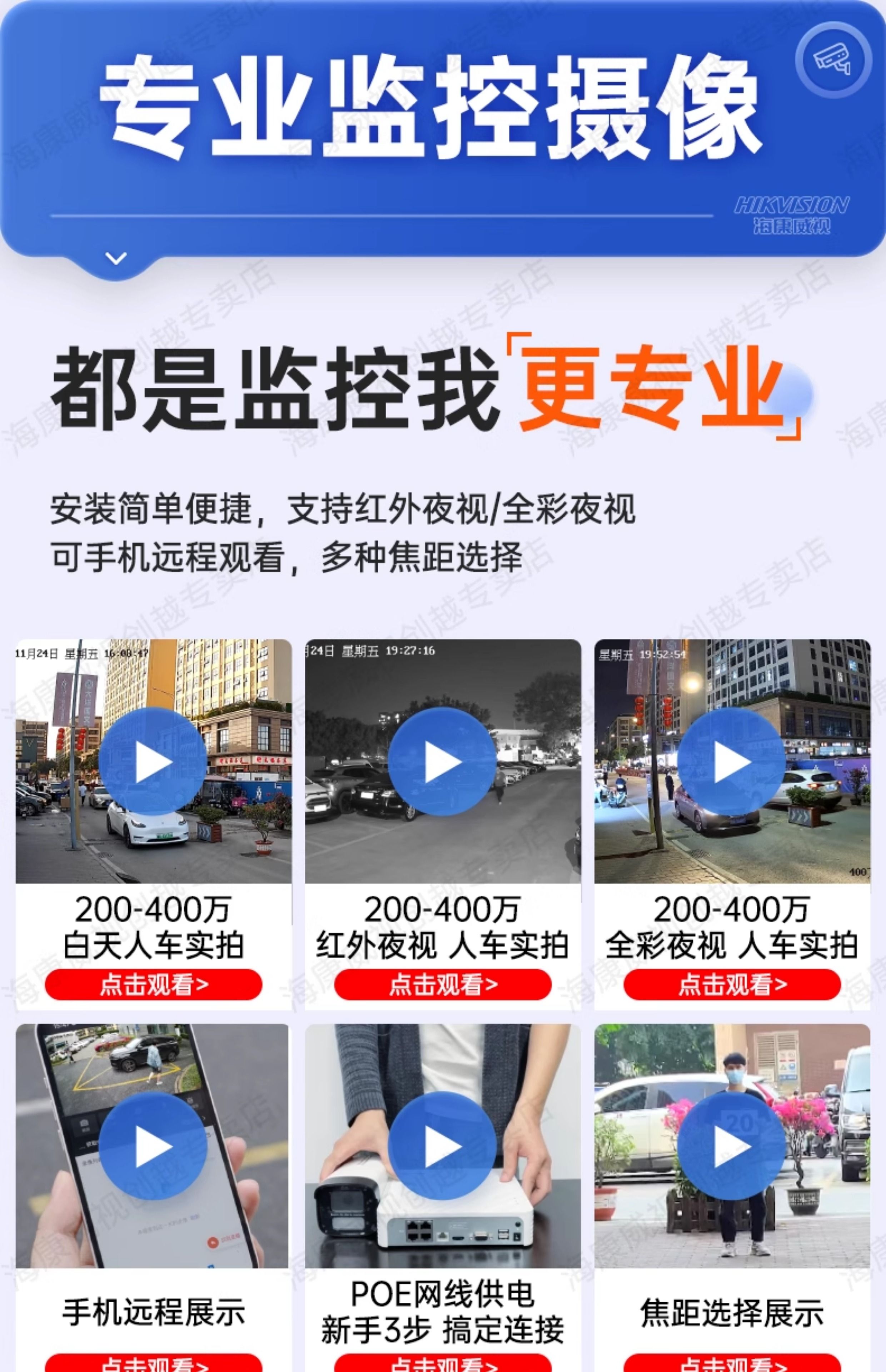 Hikvision Camera Monitor HD Set Home Outdoor Full Color POE Commercial Camera Equipment Complete Set Buying Guide Consult Customer Service Free Customized Installation Plan None 1080p 4mm