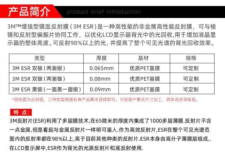 3m ESR double-sided silver reflective film 65umESR-80V2 black silver reflective sheet LCD display silver reflective film Toray_Silver_75um thick_A4 specifications 1 sheet