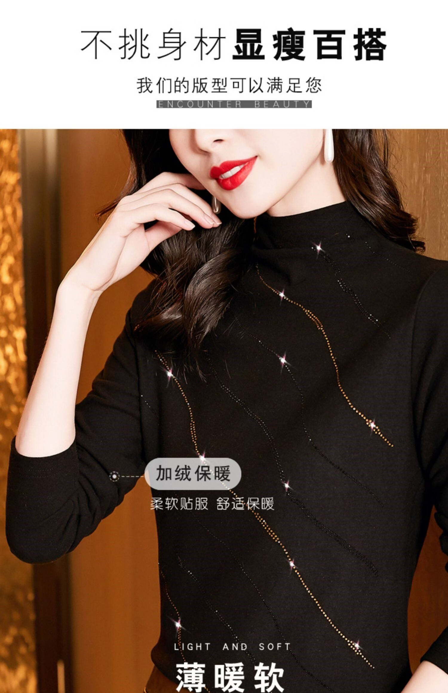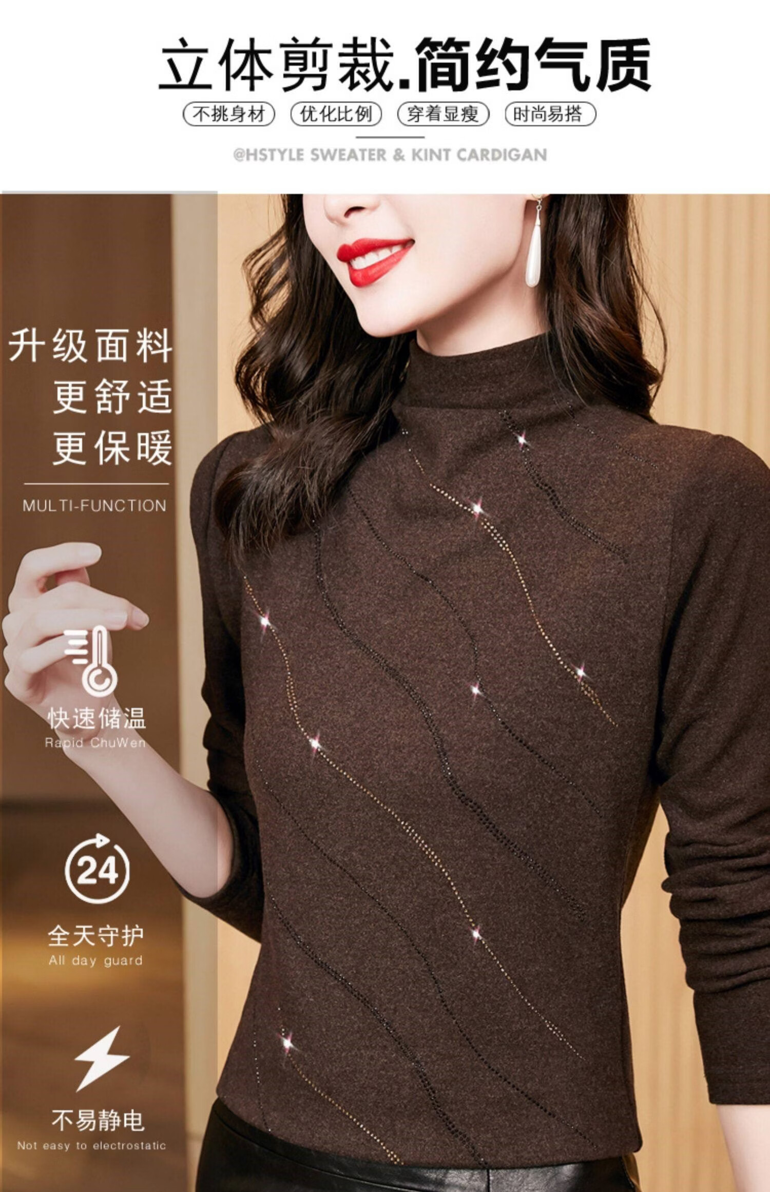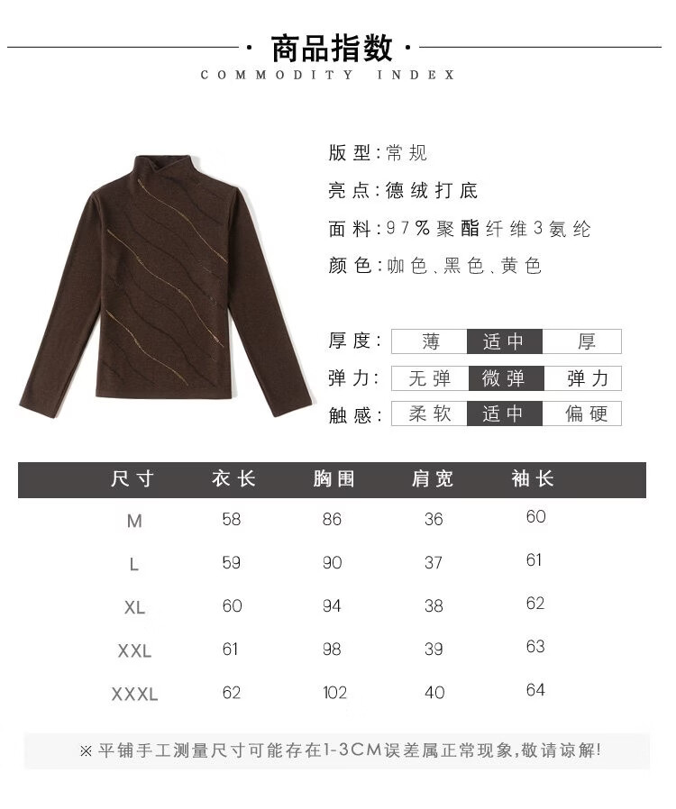 BKMR Double-sided German Velvet Bottoming Shirt Women's Autumn and Winter Thickened T-shirt Western Style Middle-aged Mom Half Turtle Collar Warm Top Brown L 105-115 Jin