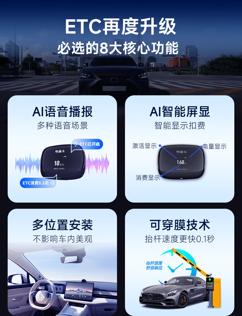 忿浵2026 smart cardless WeChat etc. free glass nationwide free high-speed 95% off equipment voice screen display with bracket brand new top configuration two-way prompt supports Hong Kong and Macau cars