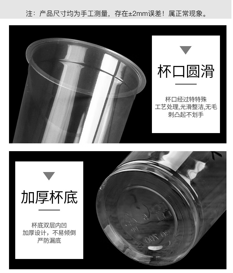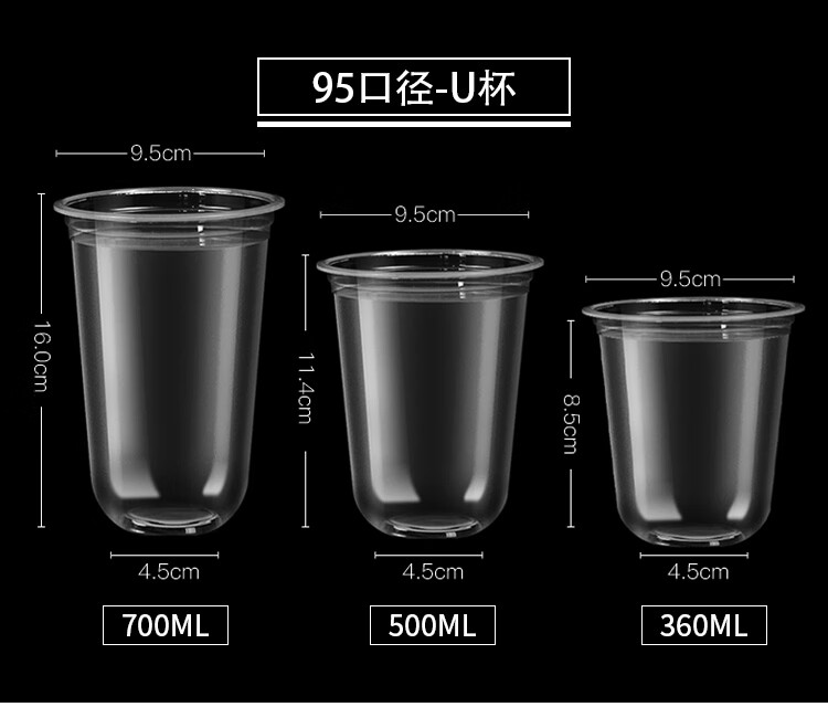 Feidiansen 90 caliber milk tea cup commercial transparent plastic light cup with lid 95 caliber 500ml U-shaped cup custom 90 blister U cup 700ml-13g 1000 pieces
