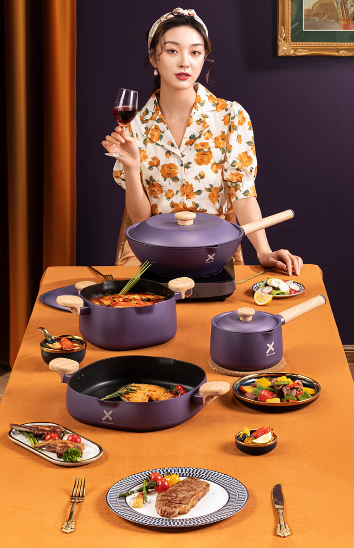 Pot set, wok, non-stick pan, household gas stove, induction cooker, universal wok, three-piece set, X series two-piece set, 30 woks + 16 milk pans