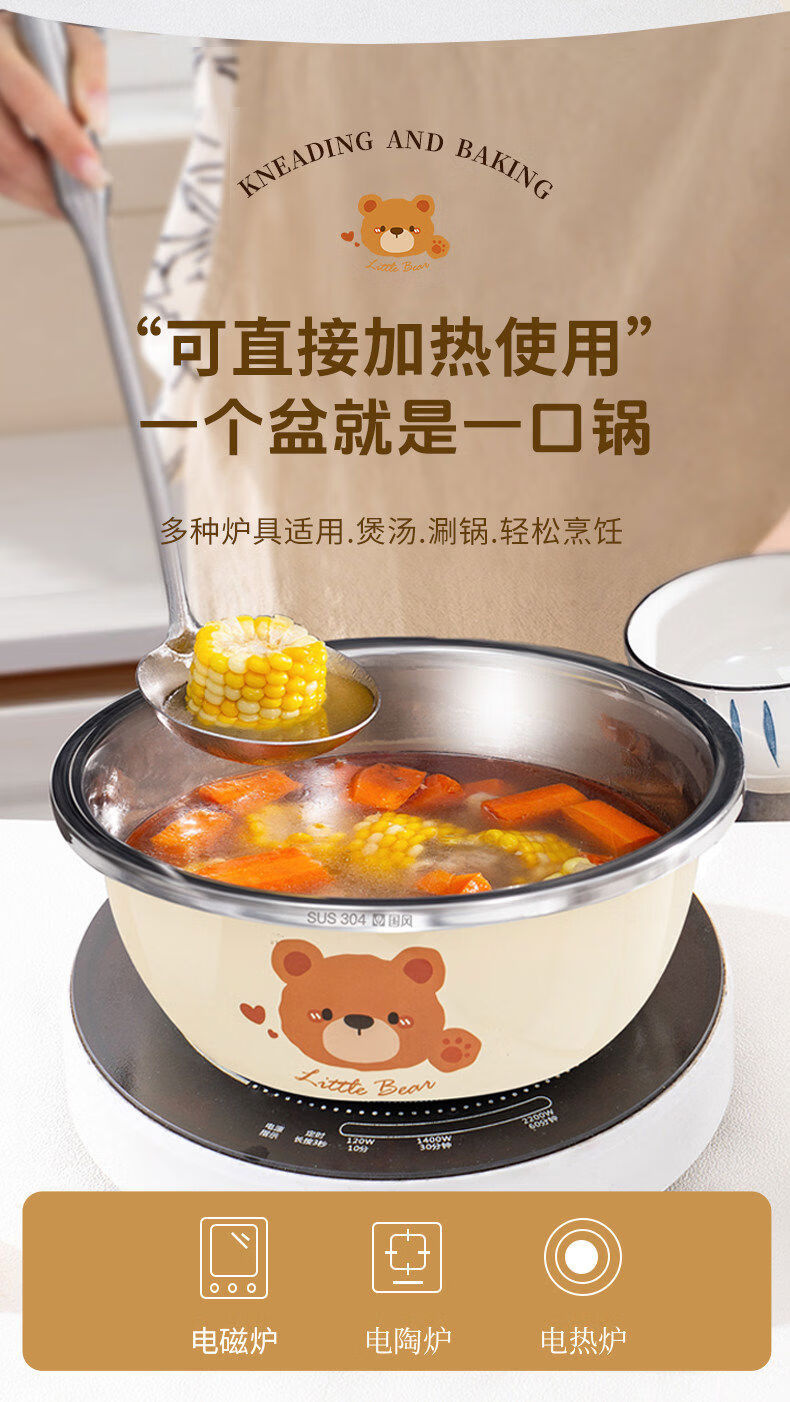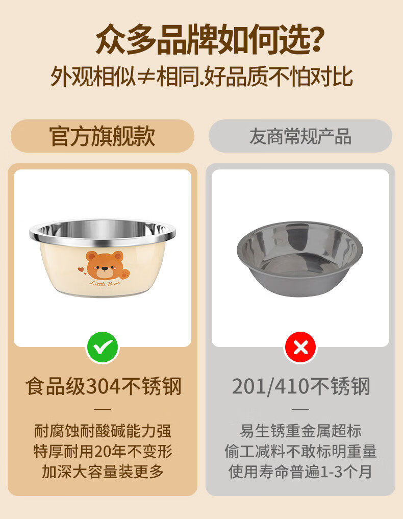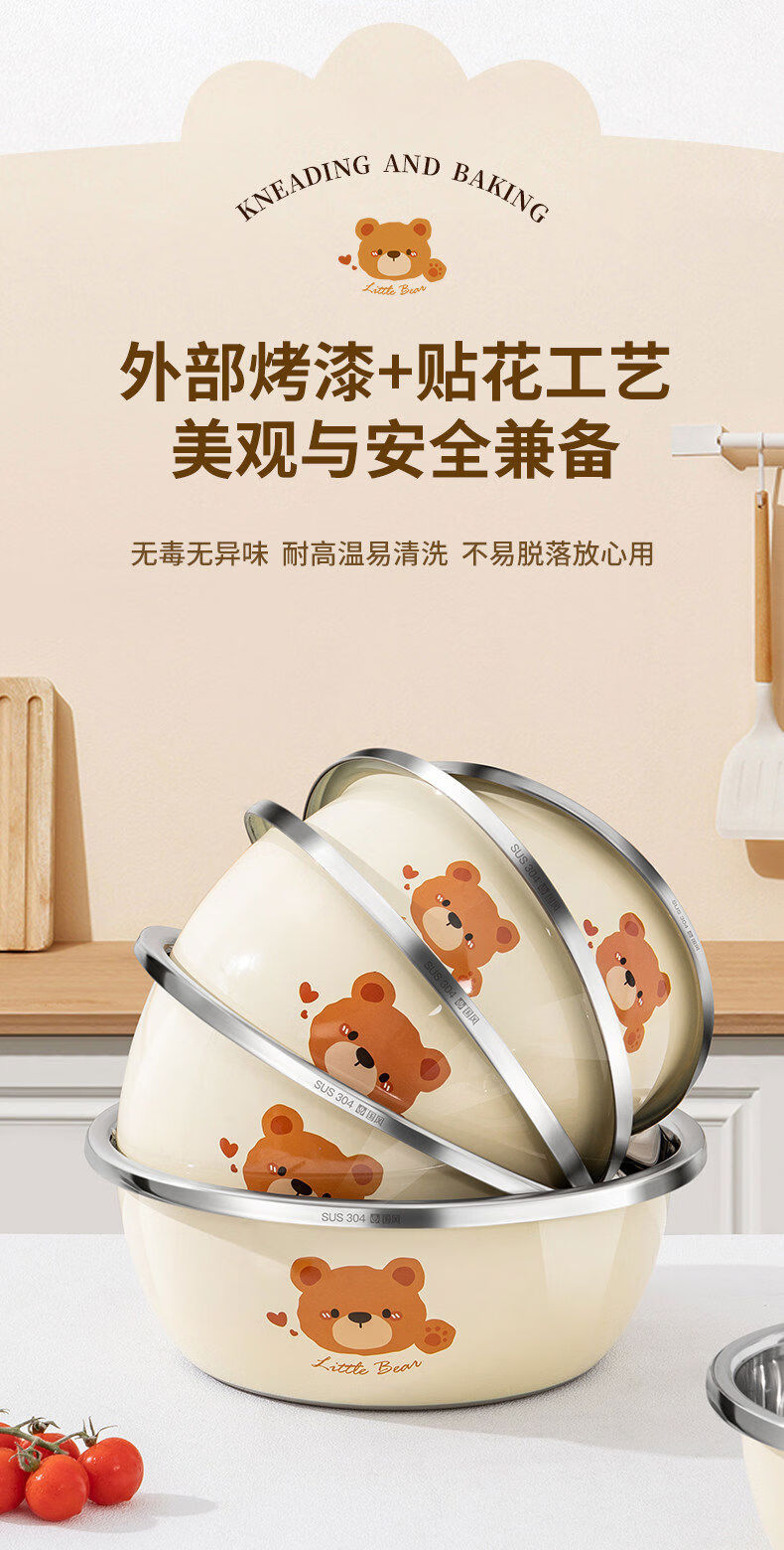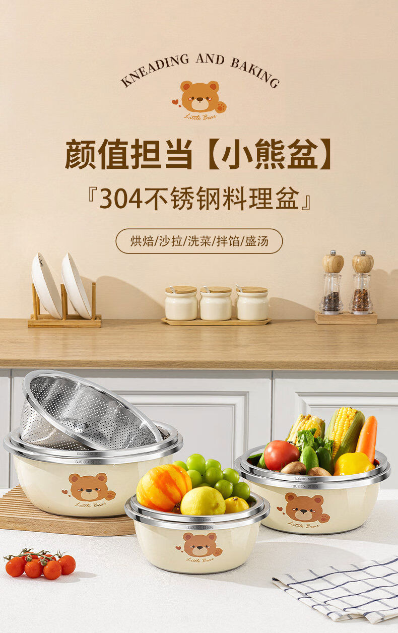Special basin for carrying cats to wash milk bottles, baby 304 stainless steel grade household ironing, cleaning, draining and disinfecting vegetable basin 729 store manager 26cm bear basin + 26cm drain basket 304 steel