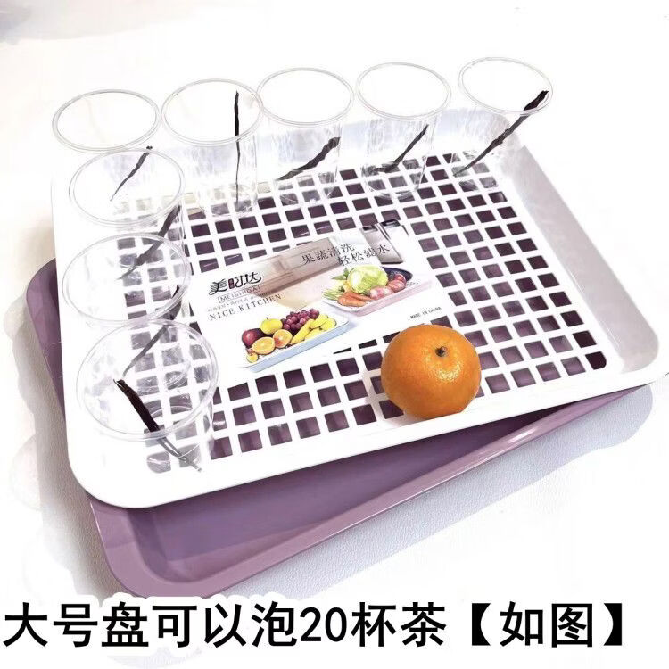 Cat water cup tray storage rack living room fruit plate plastic creative water cup drain basket rack thickened rectangular tea tray large light yellow white length 39 points 5 width 30 points 5 height 4 points 5cm