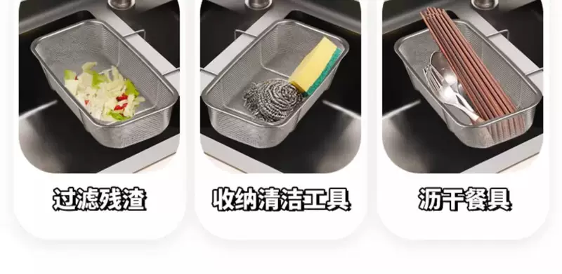 Yusenyi stainless steel sink basket kitchen leftovers filter dishwashing sink artifact hanging net drain rack drain rack large (1 piece) stainless steel sink drain basket