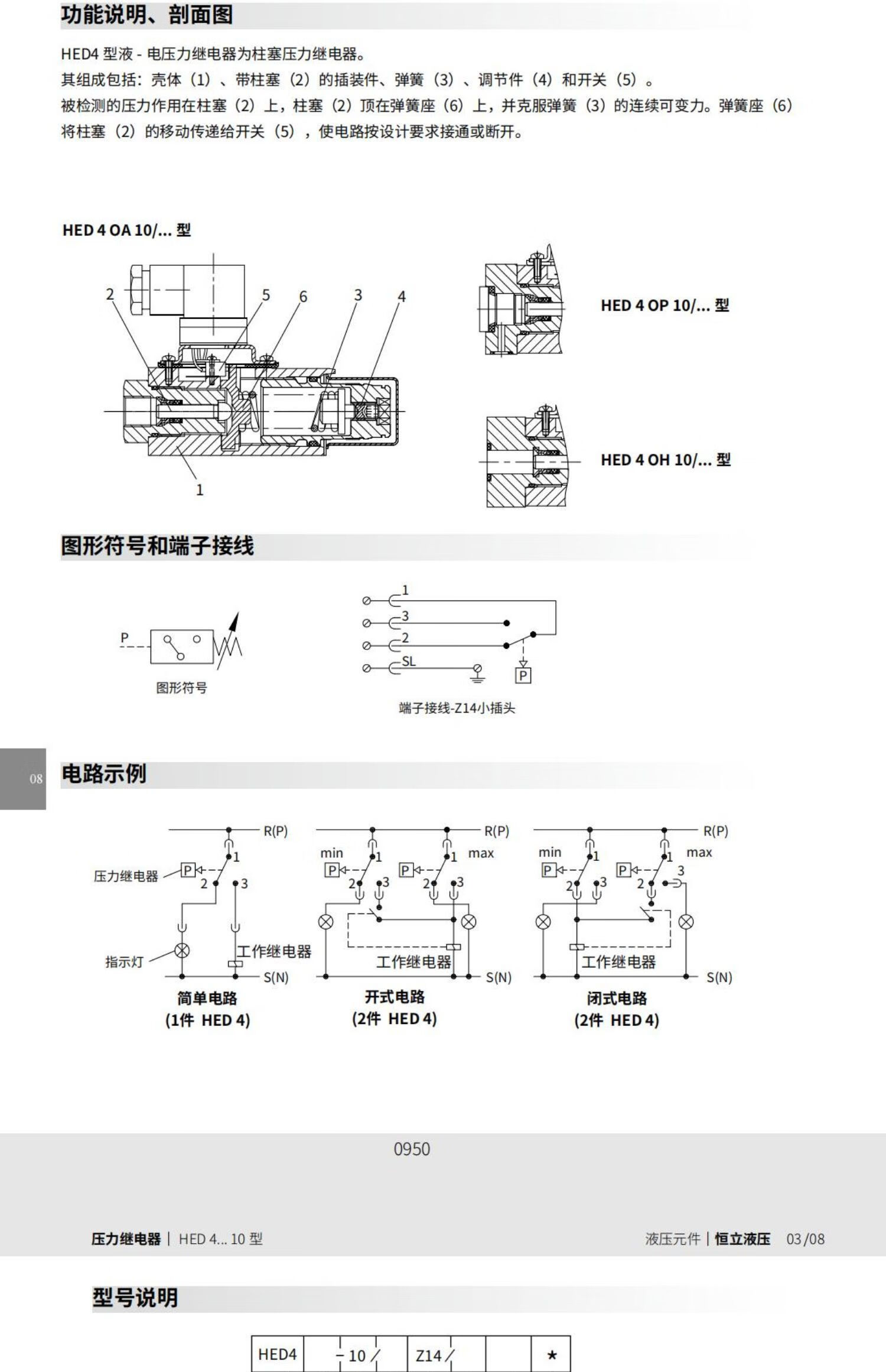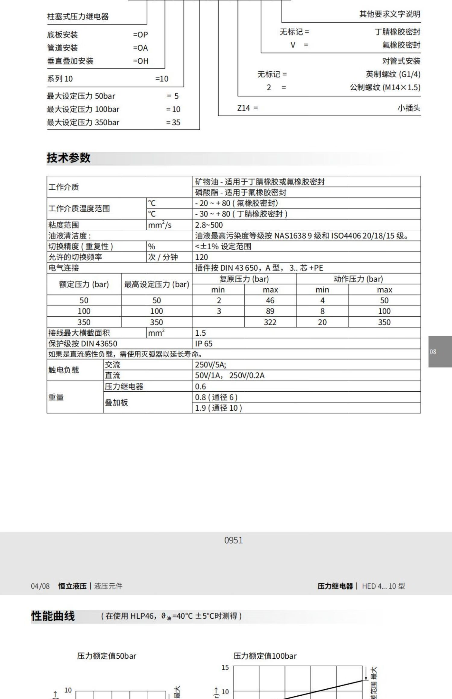 Hydraulic pressure relay HED40P10/5Z14/2 HED40P10/35Z14/2 switch HED80H-L1X/10Z14