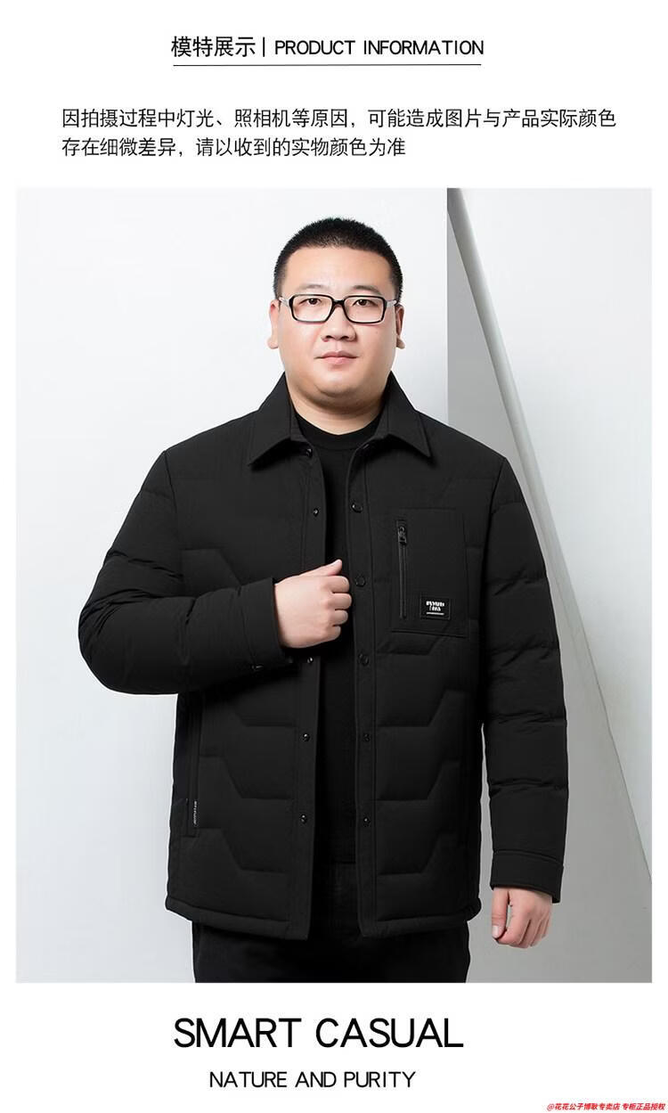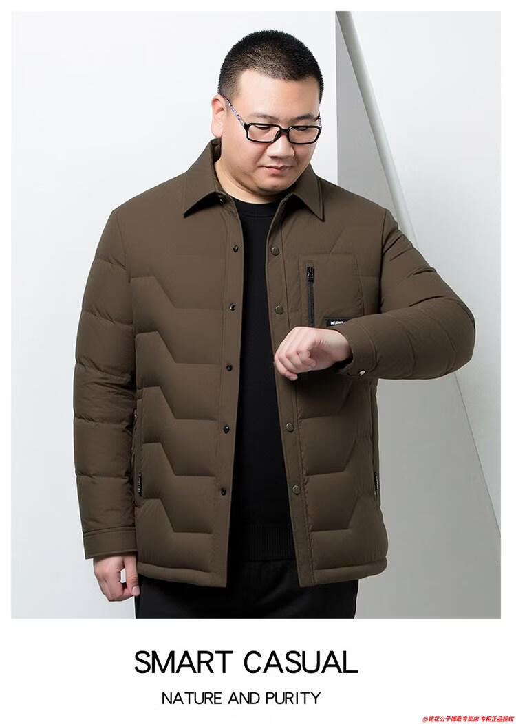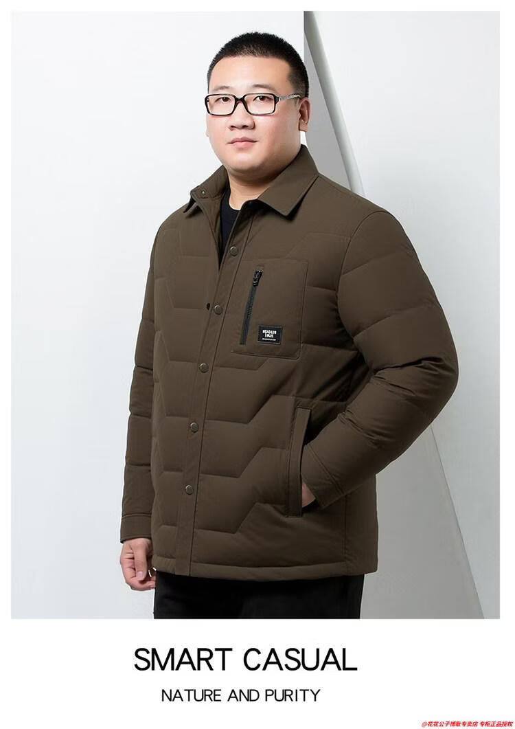 Playboy middle-aged and elderly down jacket men's large size loose plus fat extra large warm jacket extra large fat dad special winter clothing coffee color 7XL about 255 pounds