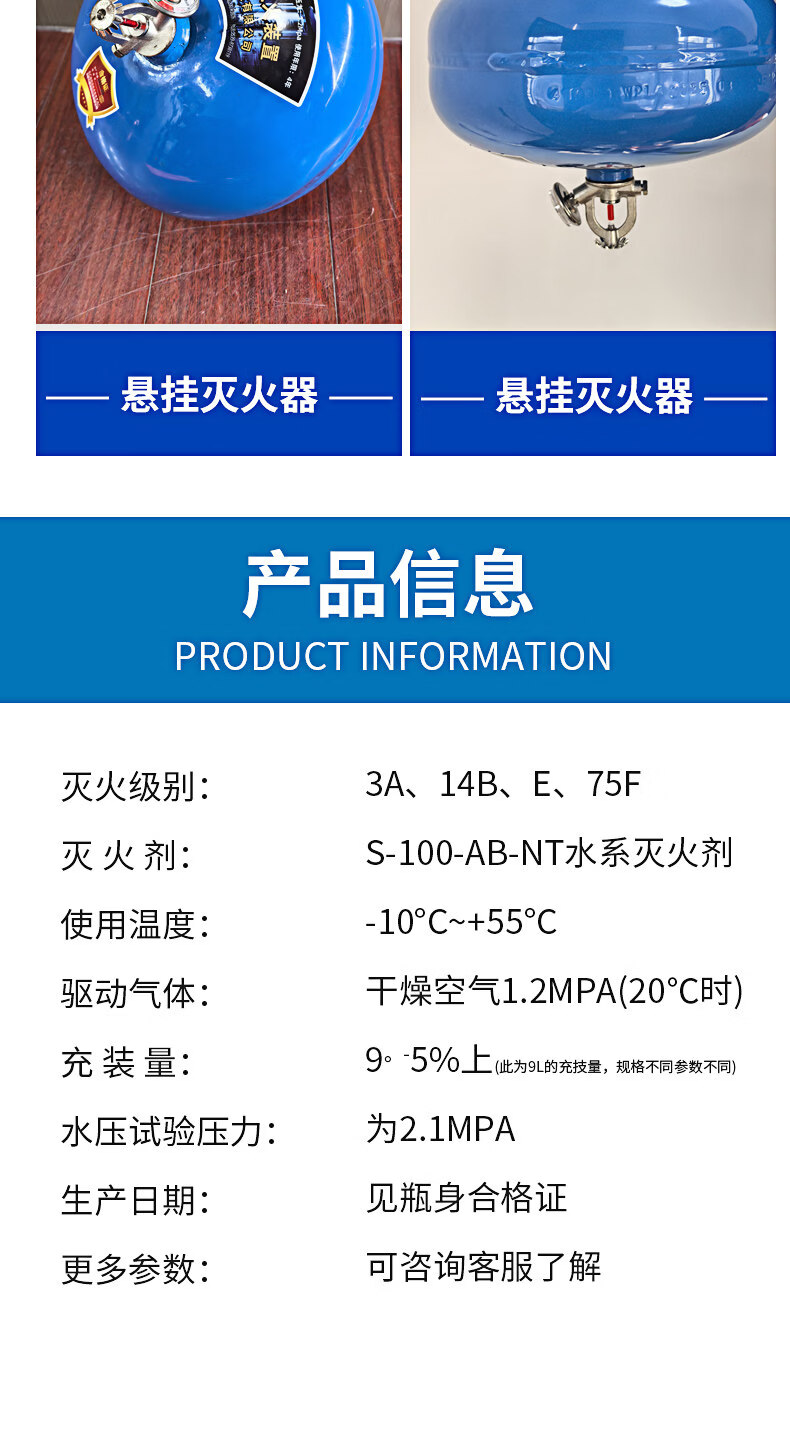 Lithium battery special fire extinguisher new energy vehicle water-based suspended electric vehicle blue portable fire extinguisher 6L handheld lithium battery fire extinguisher