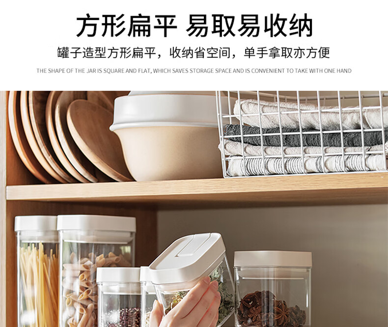 Ankou cereal sealed jar food grade kitchen noodle storage box tangerine peel storage jar dry goods nut storage jar snap open lid/sealed storage narrow style 1200ml