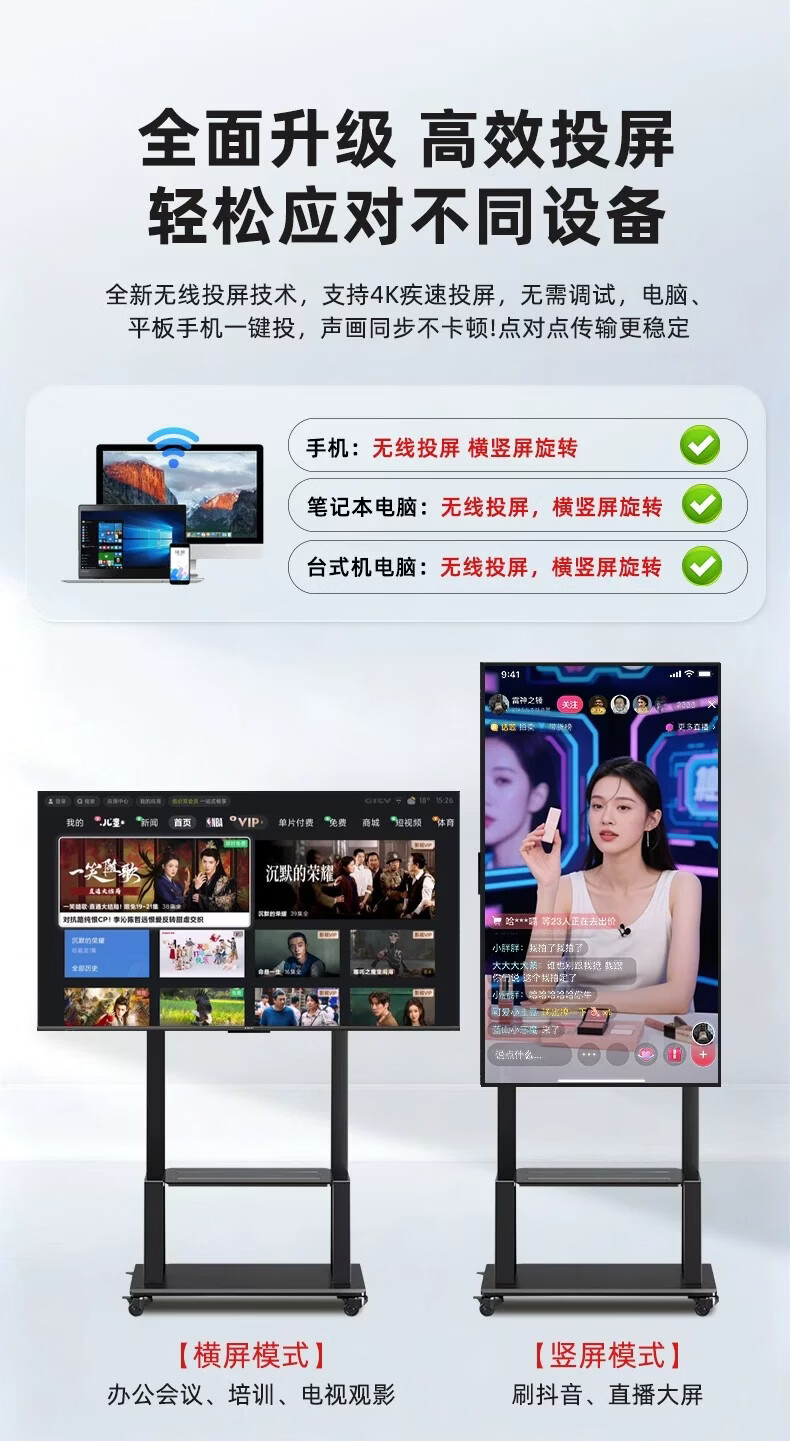 Xiaomi REDMI mobile TV live broadcast large screen conference teaching all-in-one machine 32/43/50/5565/75/85 inch game wireless projection display vibrato with goods horizontal and vertical screen 32 inches wireless projection with bracket + door installation