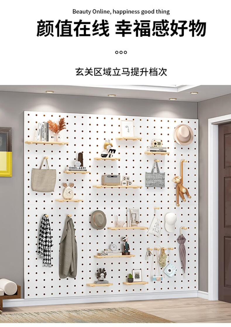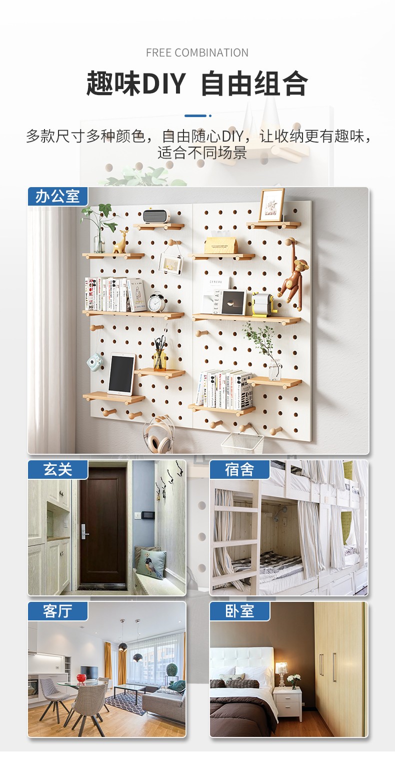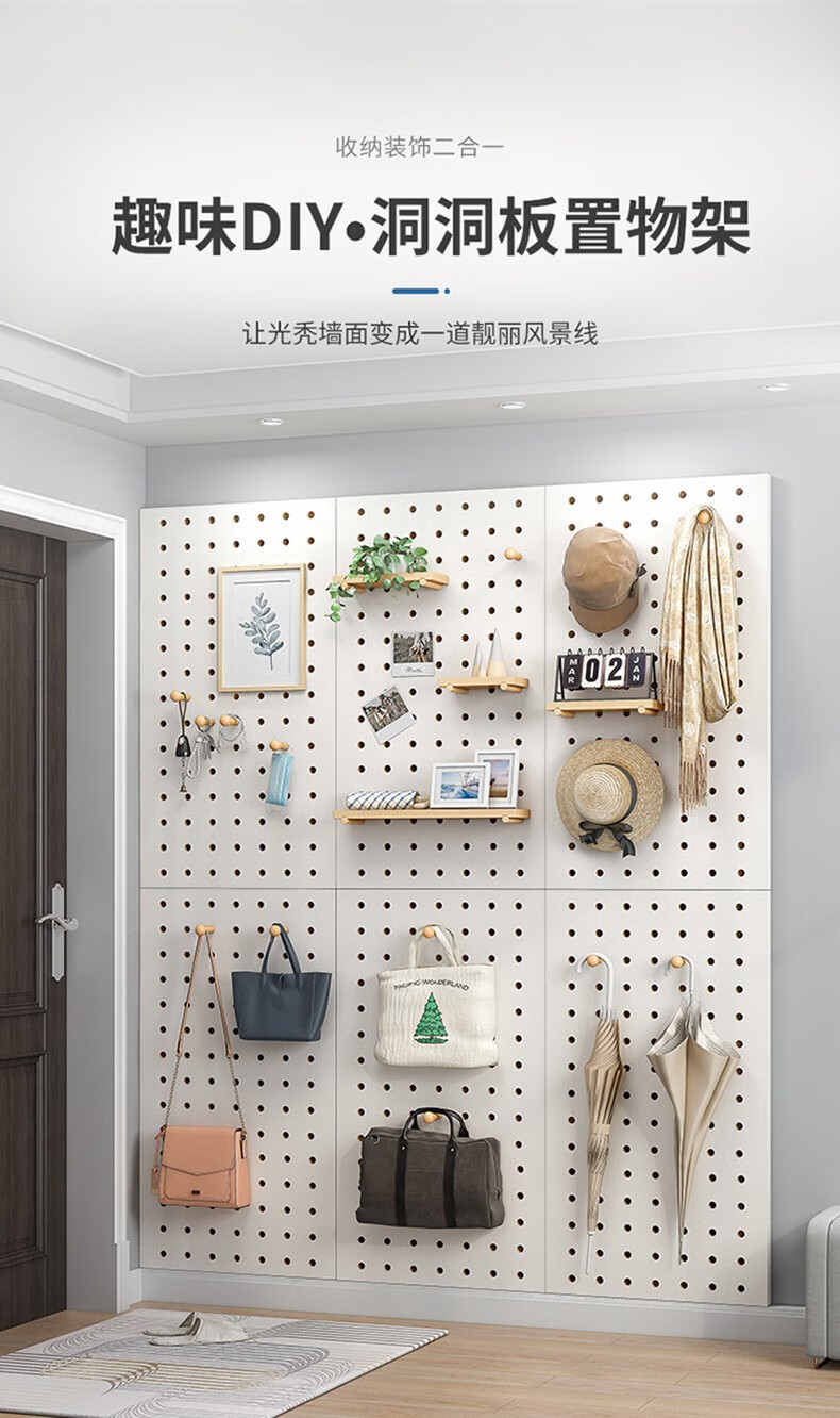 Musong hole board storage rack custom punch-free accessories wooden wall storage rack entrance wall decoration display rack white welcome home (pack of 4) suitable for 15mm round holes price calculated based on square