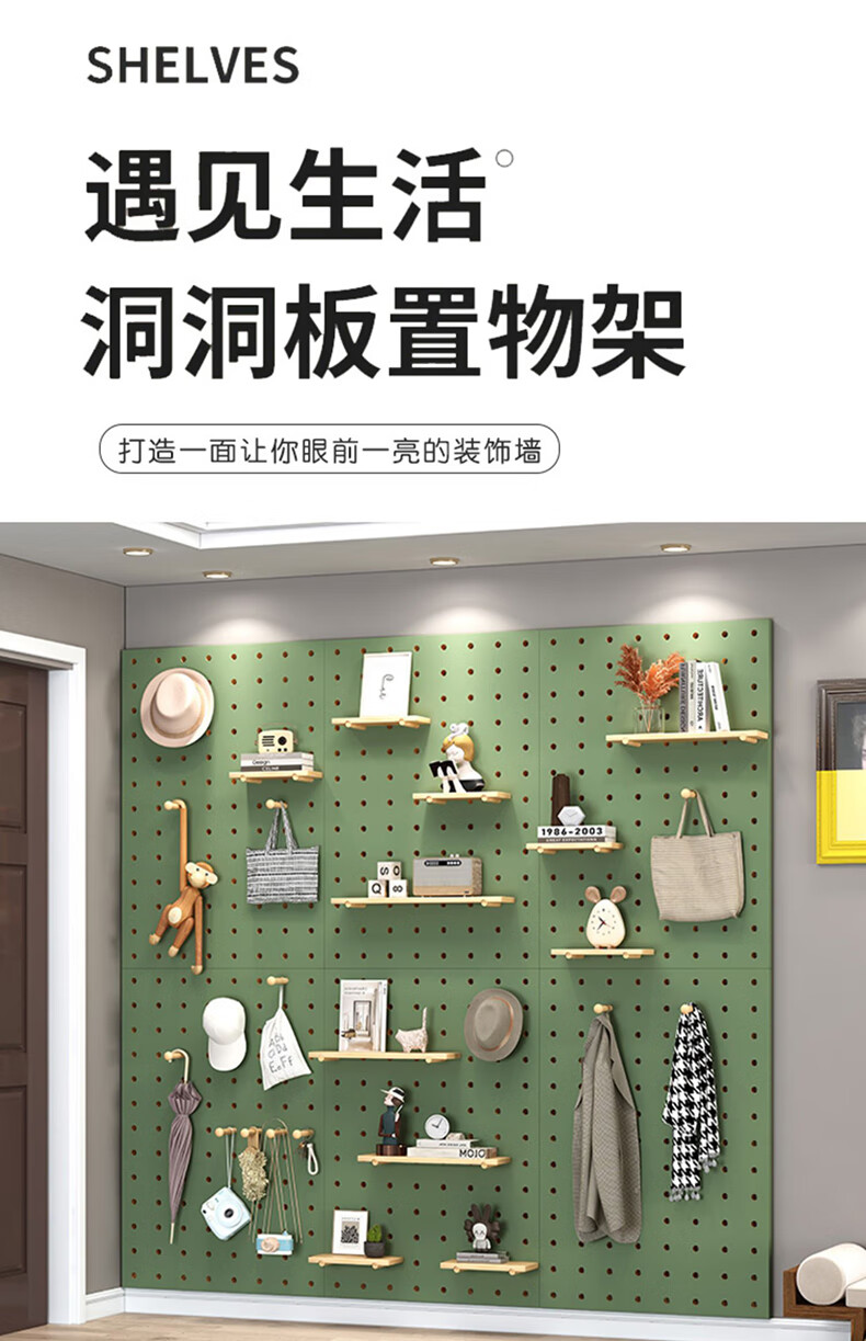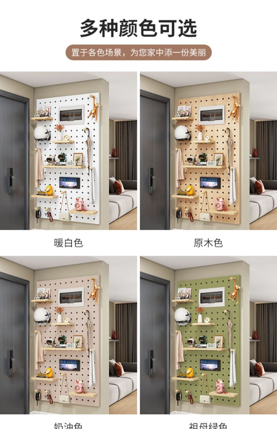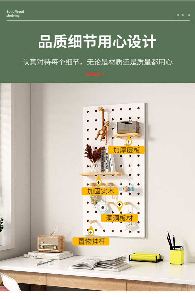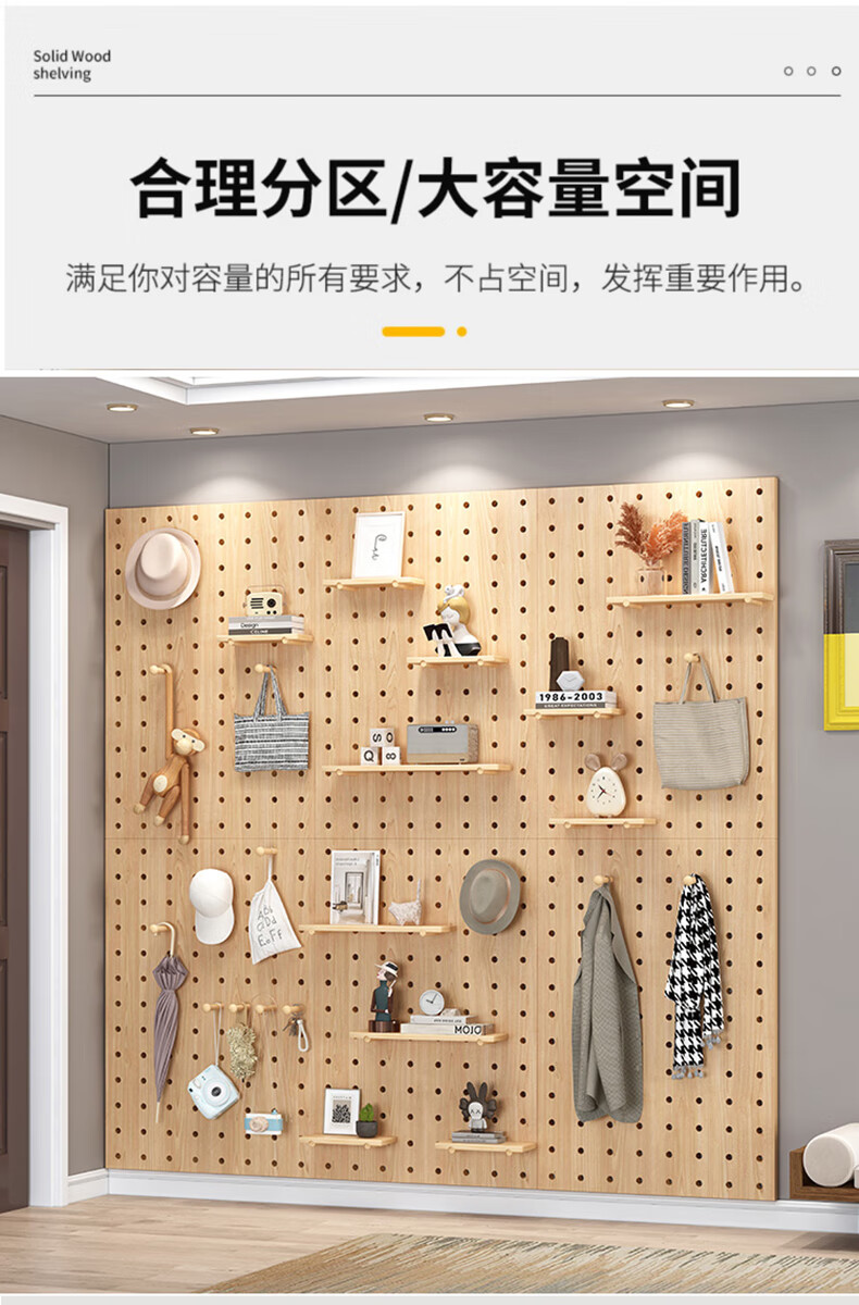 Musong hole board storage rack custom punch-free accessories wooden wall storage rack entrance wall decoration display rack white welcome home (pack of 4) suitable for 15mm round holes price calculated based on square