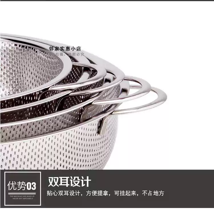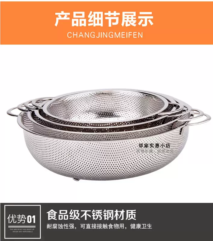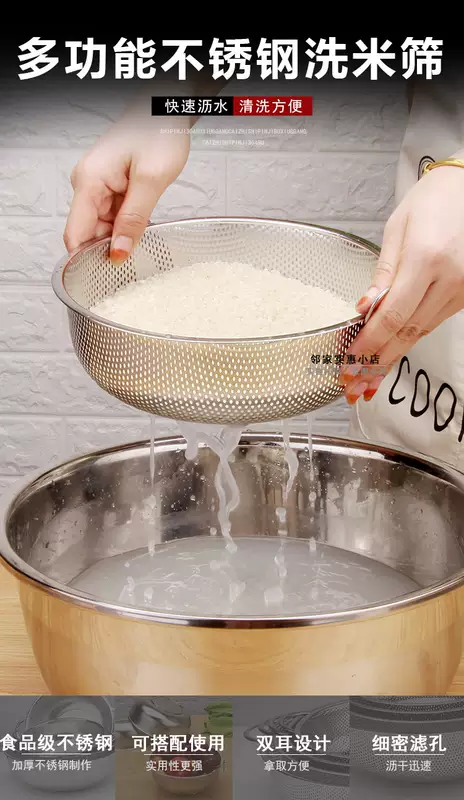 Yusenyi stainless steel rice washing sieve, vegetable washing basket, drain basin, household rice washing machine, rice washing basin, rice washing basin, rice washing machine, rice washing sieve, single ring 16.5cm