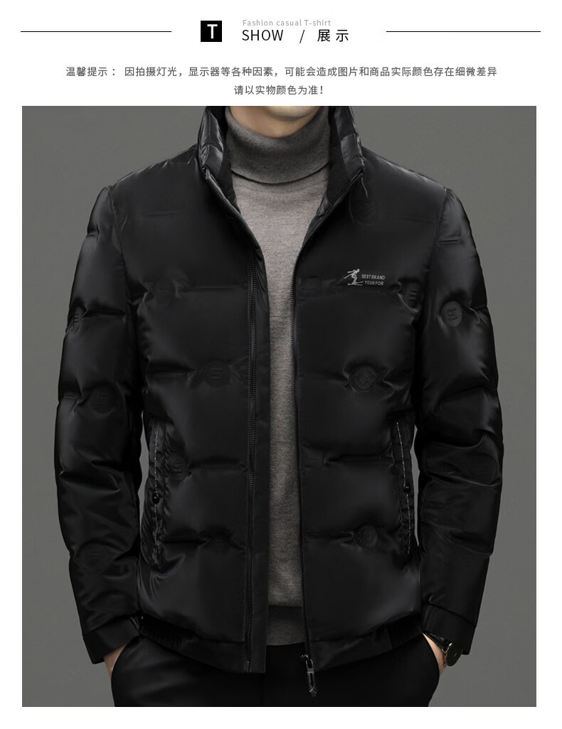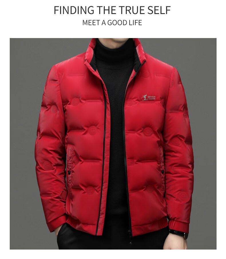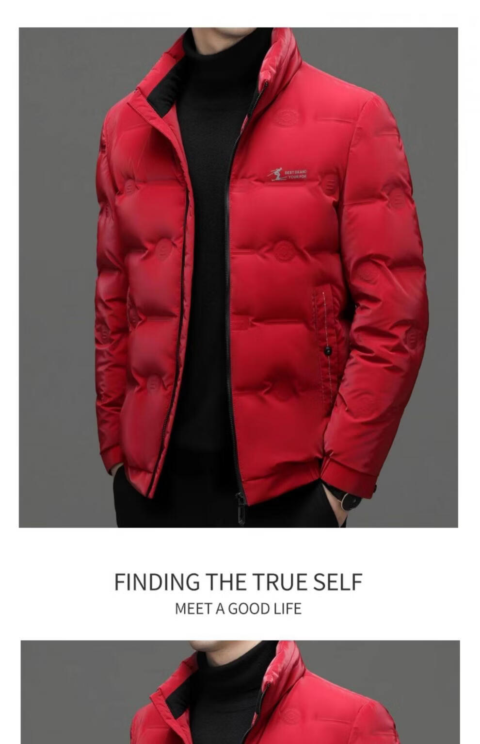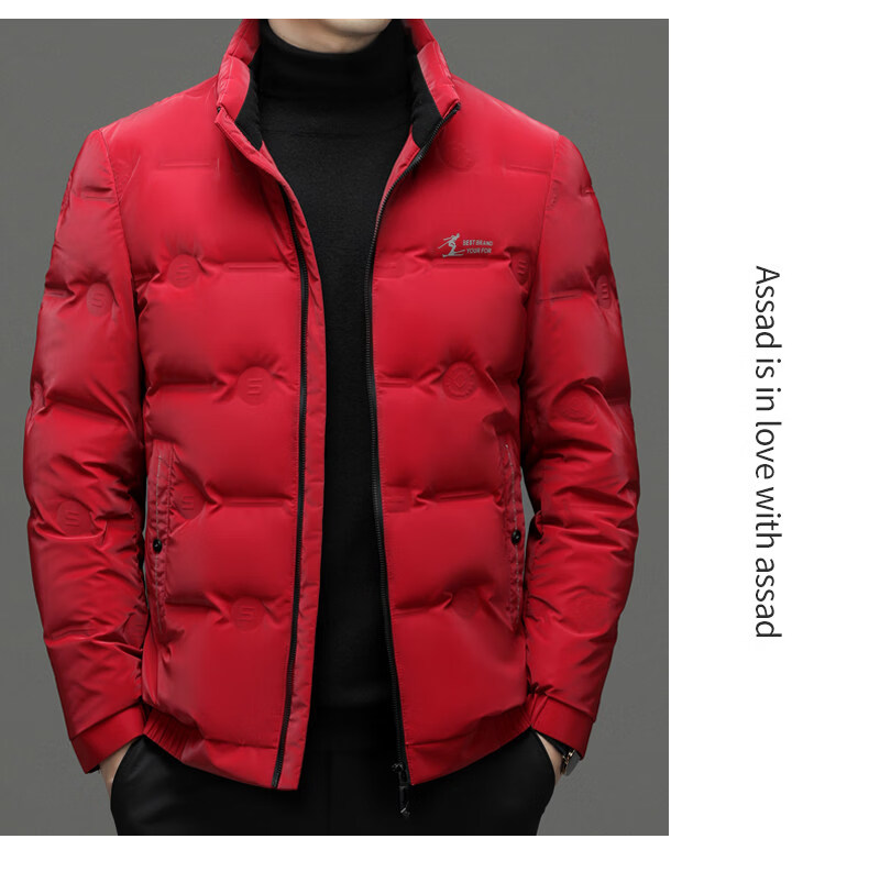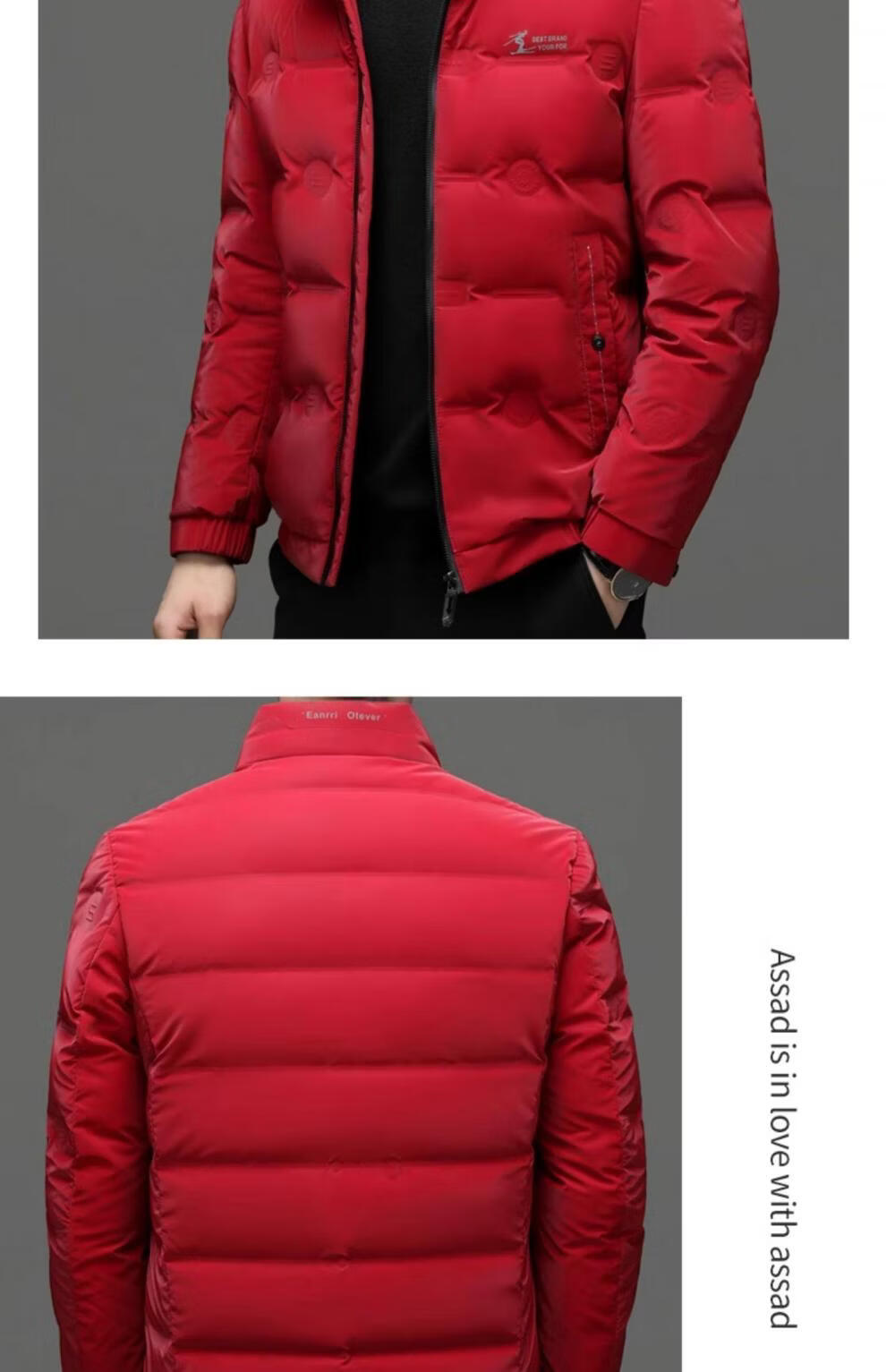 Hengyuanxiang brand zodiac year down jacket men's winter new stand-up collar short casual men's big red 2026 New Year jacket black M 95-120 catties