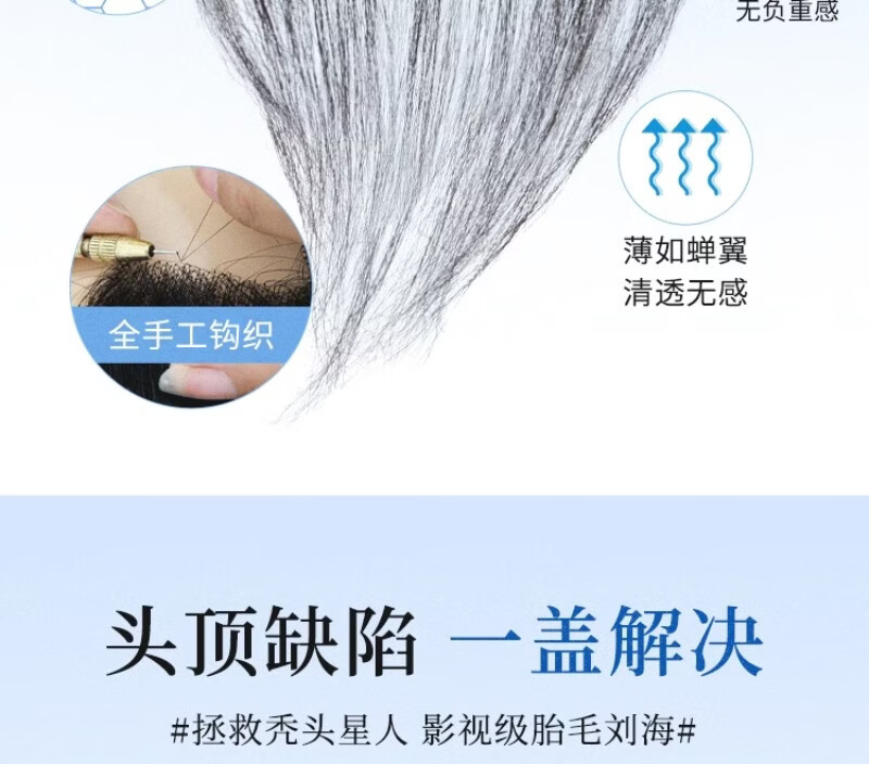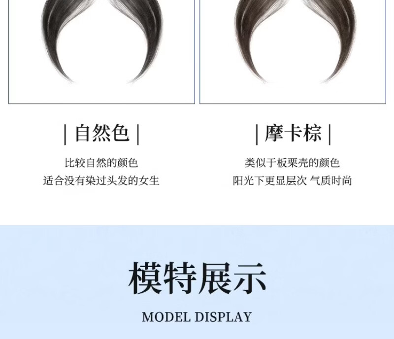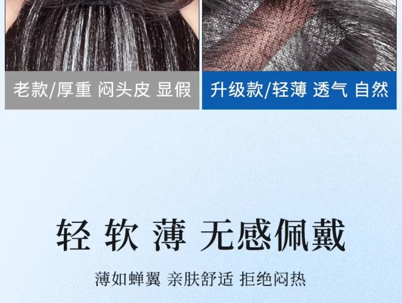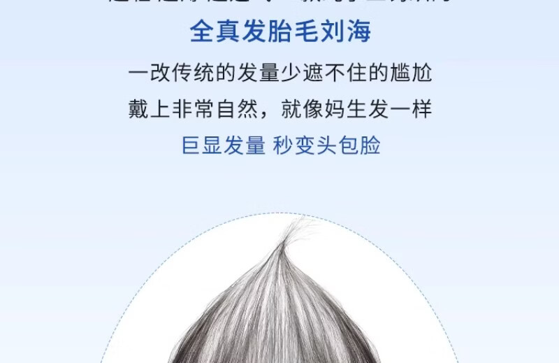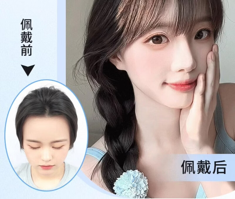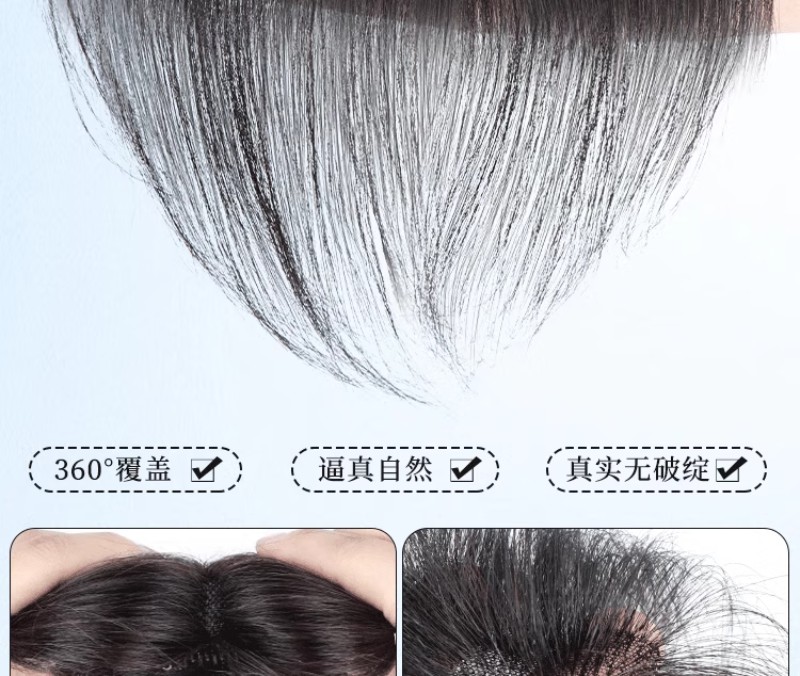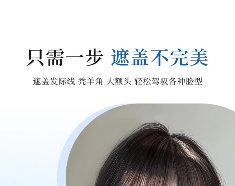 Lanugo hair wig with splayed bangs for women, full human hair on top of head, natural forehead and temples, seamless hairline stickers, film and television grade lanugo hair bangs, natural color, splayed style
