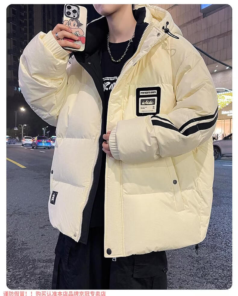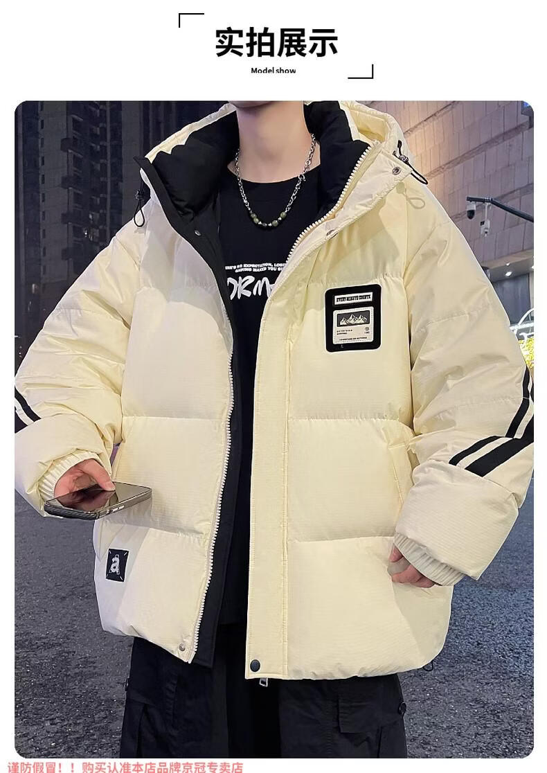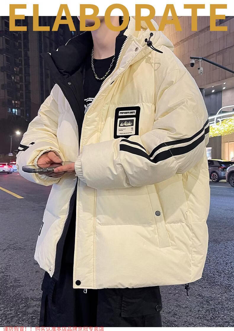 Woodpecker hooded down jacket men's winter 2025 new Hong Kong style light jacket men's youth white duck down warm and cold-proof clothing 9007 beige new national standard 90% white duck down S 165