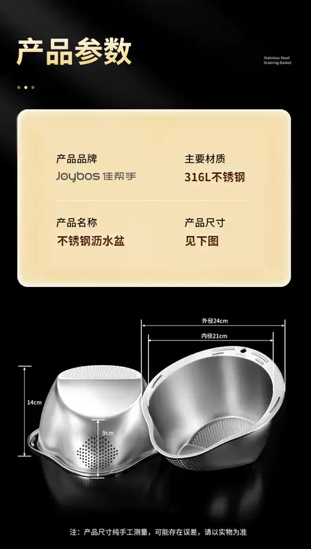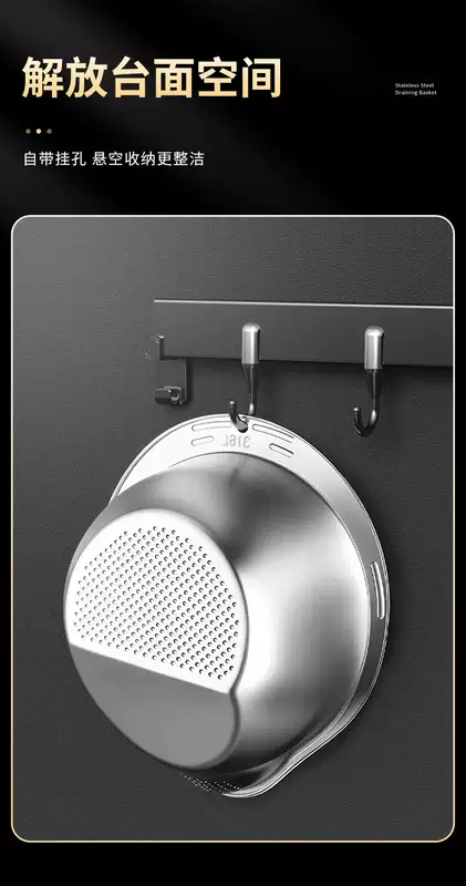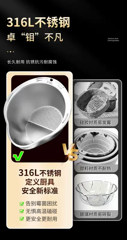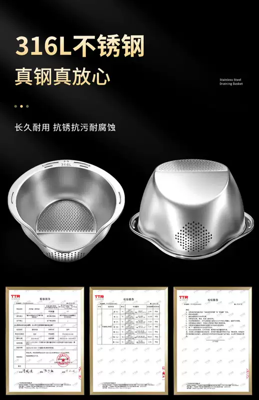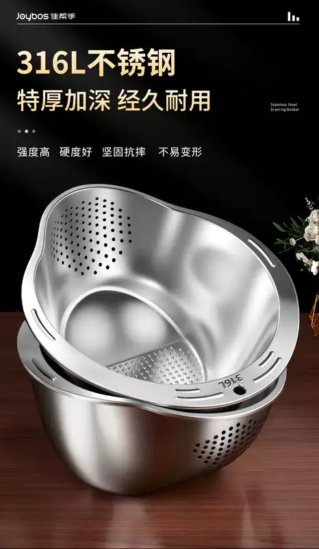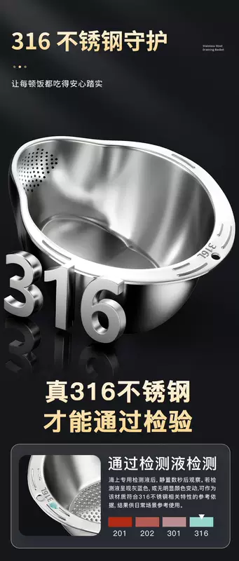 Yusen Yijia Helper New Stainless Steel Drain Basket Wash Basin Kitchen Multi-Function Basin Fruit Drain Basin Rice Cleaning Artifact (Real 316 Stainless Steel) Food Grade Thickened Large Capacity
