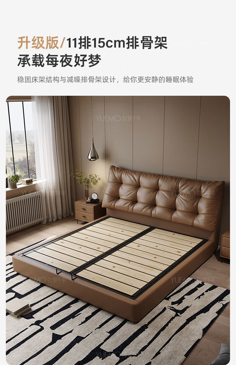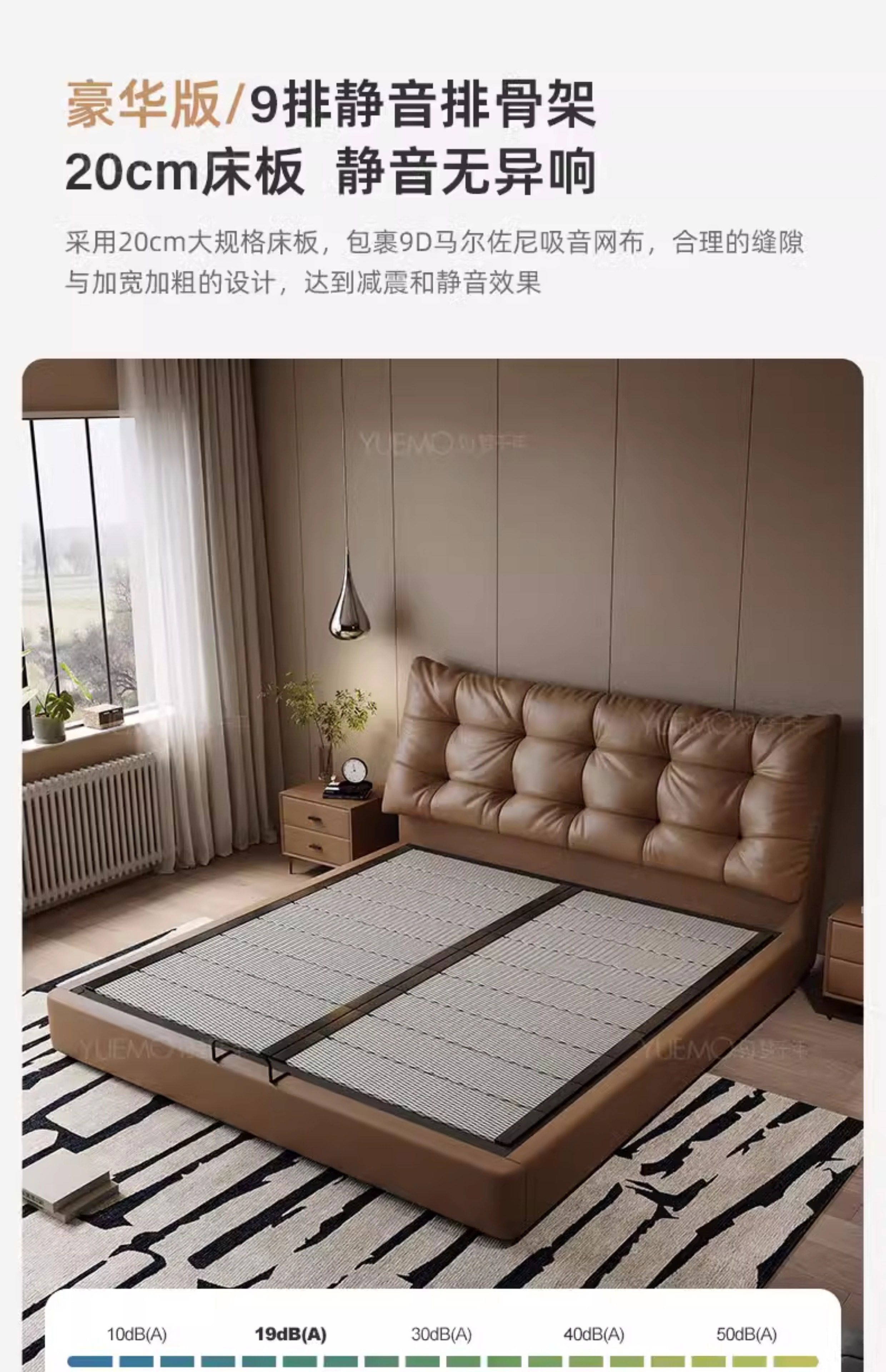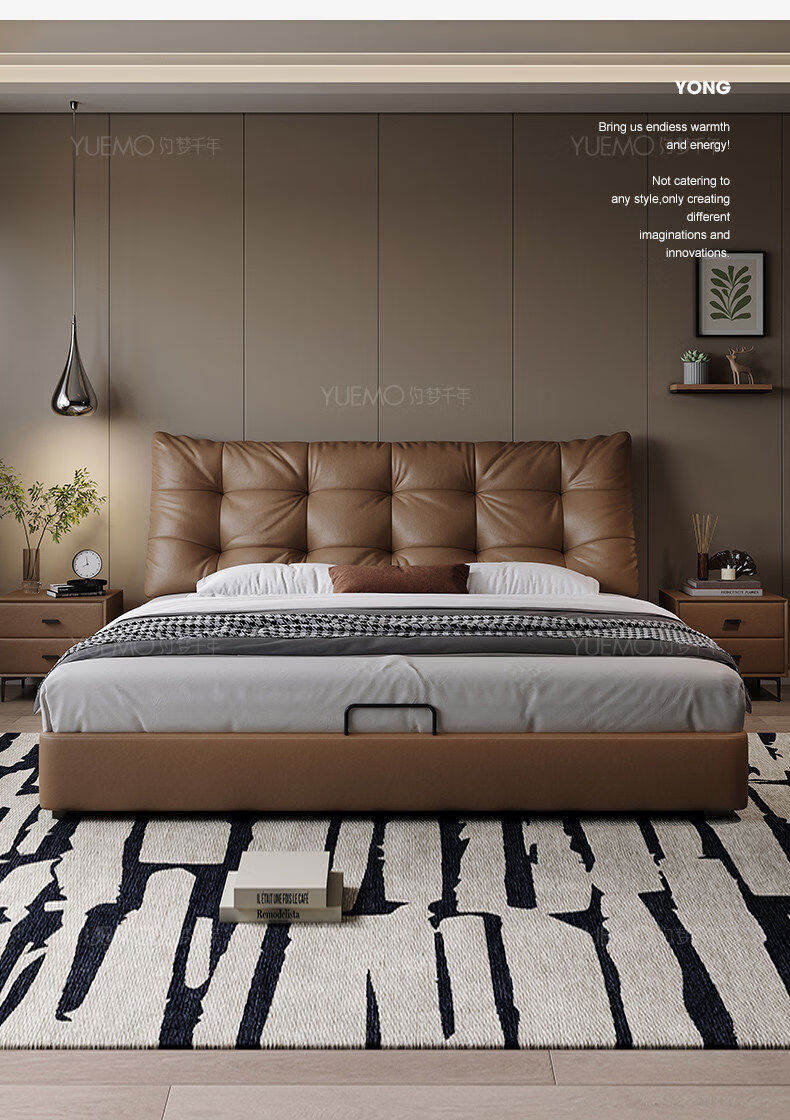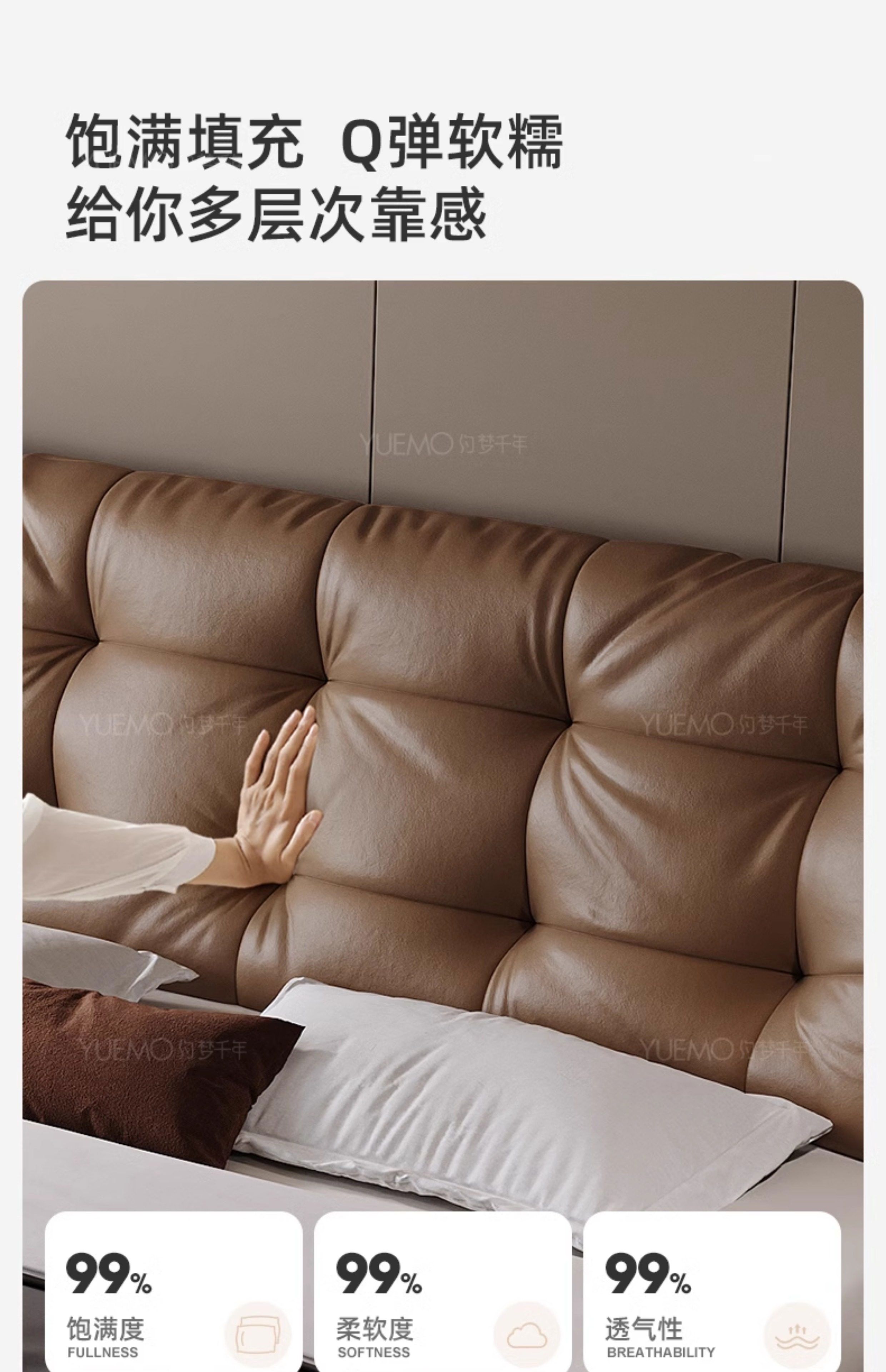 Yusenyi double bed, elegant master bedroom soft-packed bed, cowhide wedding bed, upgraded bed + 2 cabinets + knitted surface breathable mattress, moderate 15002000 bracket structure