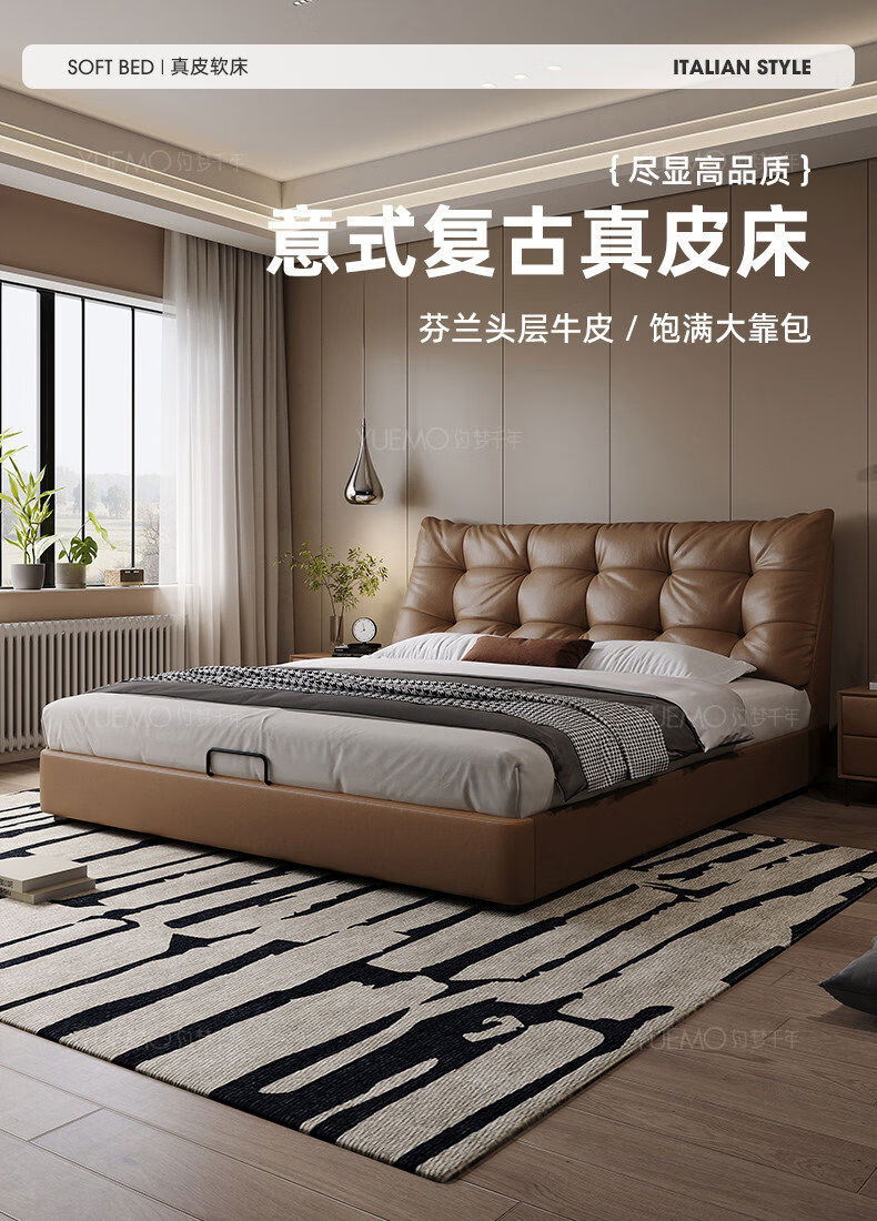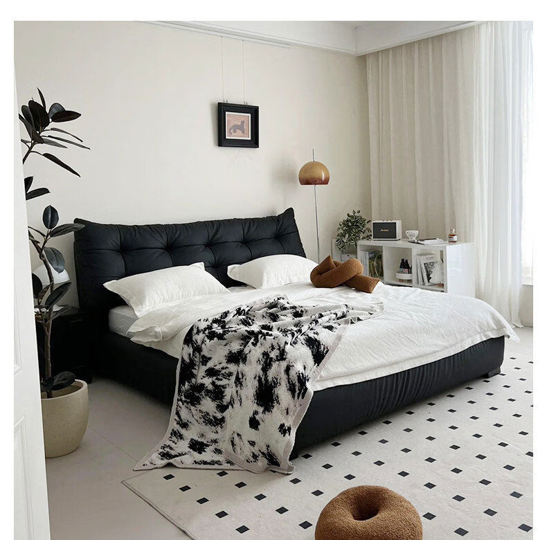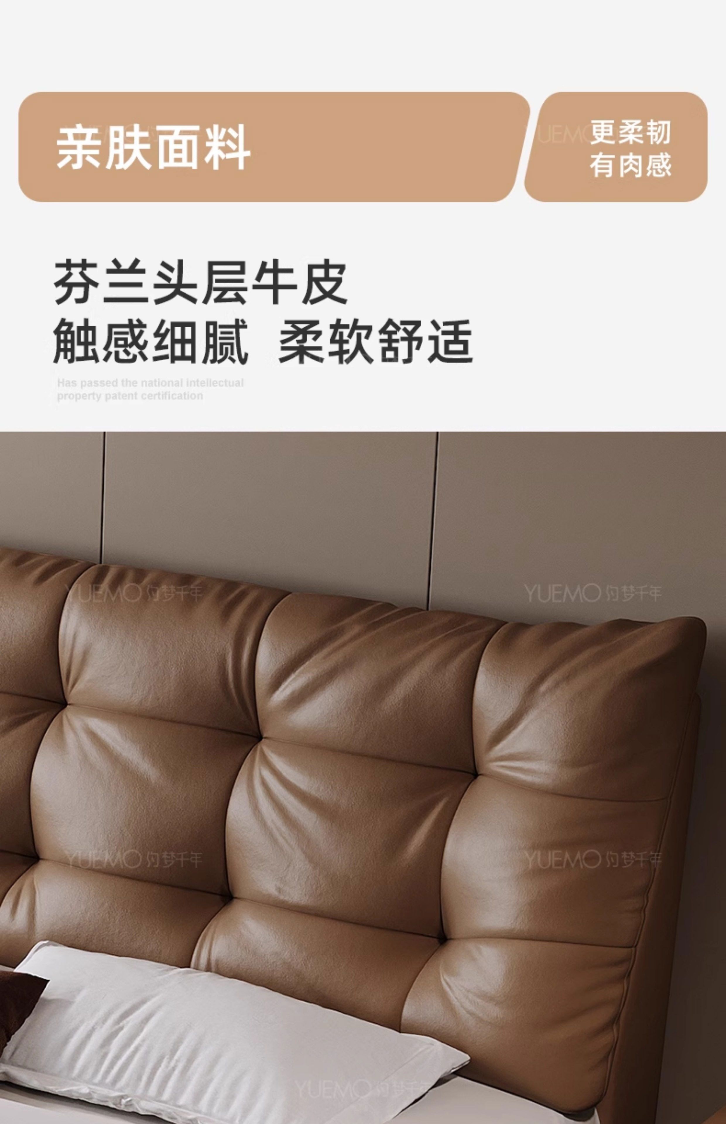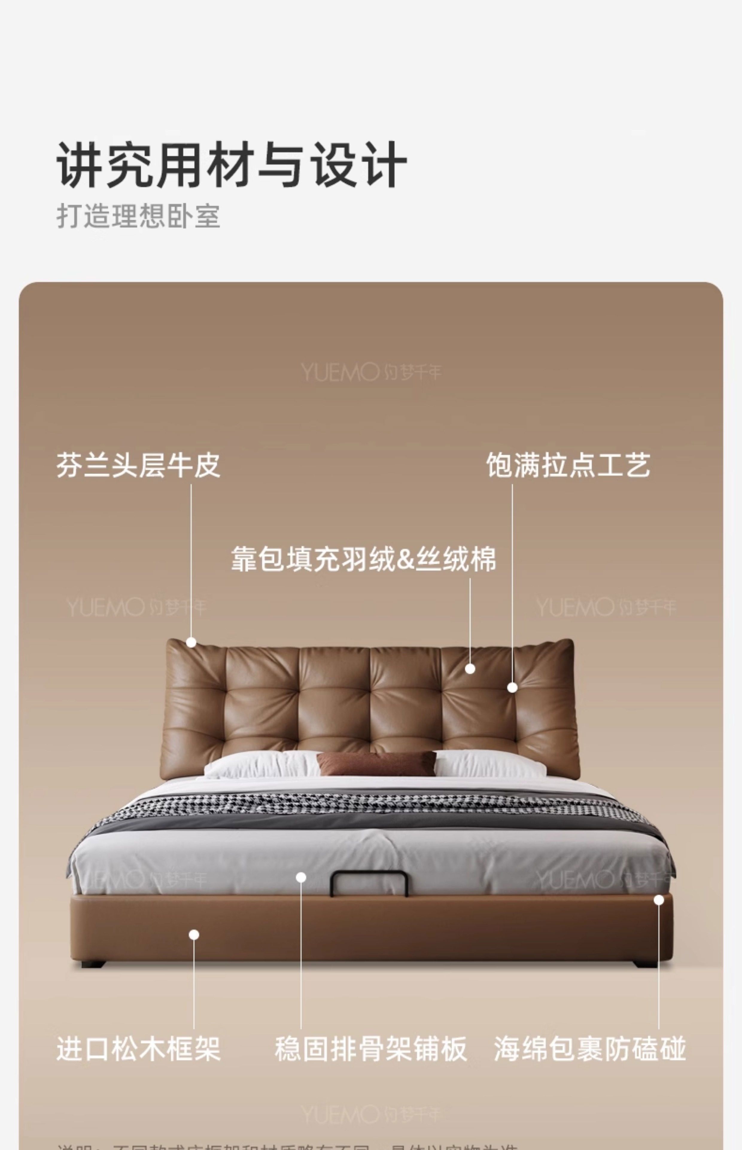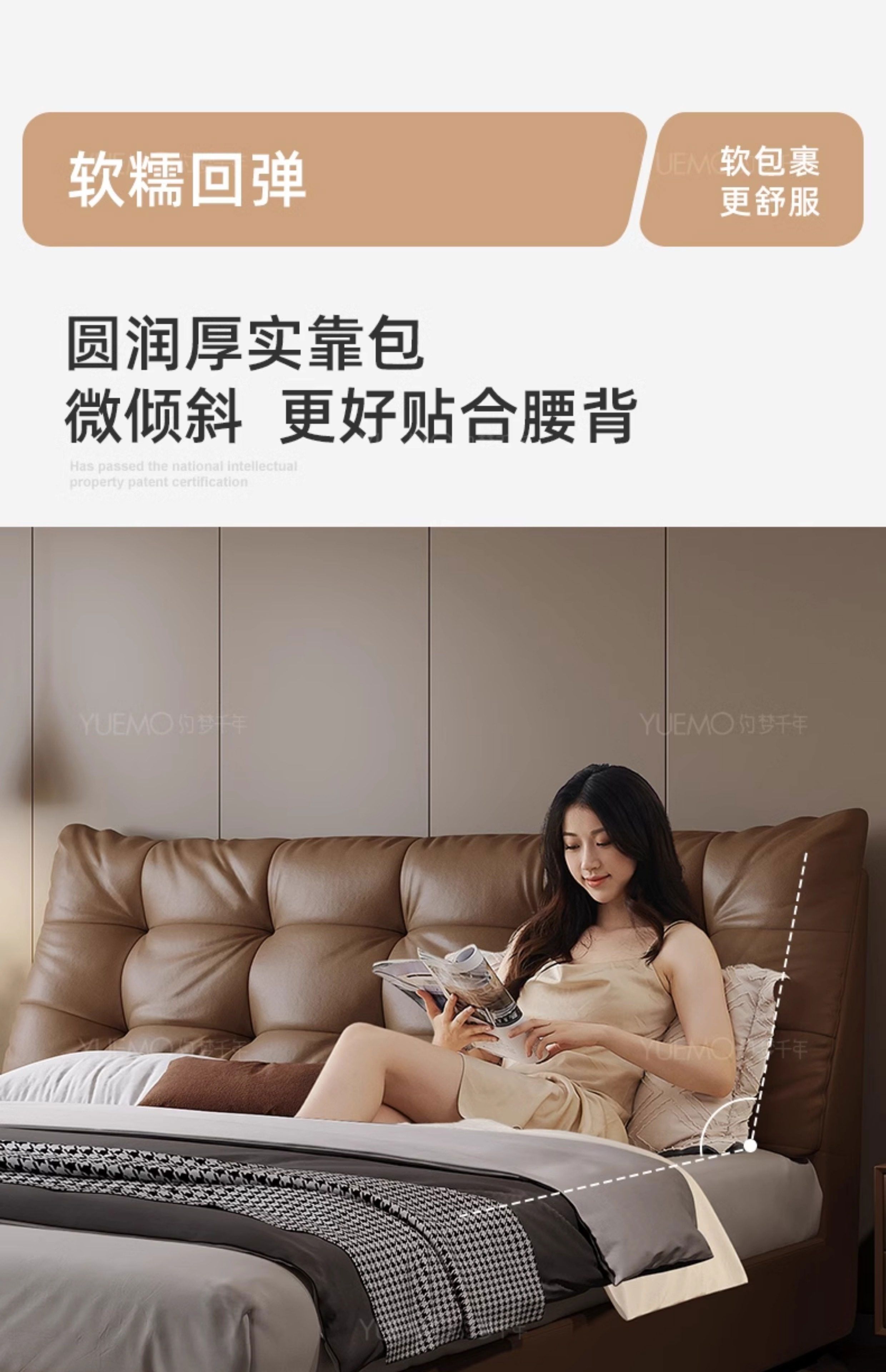 Yusenyi double bed, elegant master bedroom soft-packed bed, cowhide wedding bed, upgraded bed + 2 cabinets + knitted surface breathable mattress, moderate 15002000 bracket structure