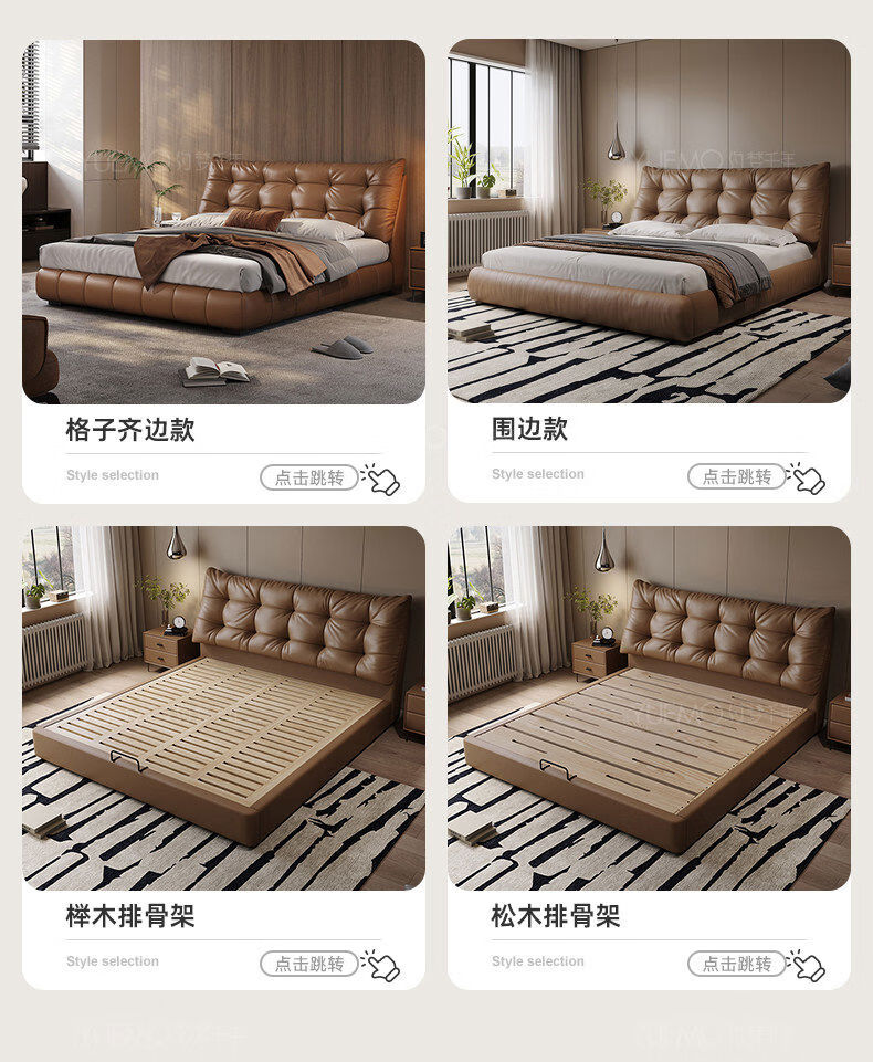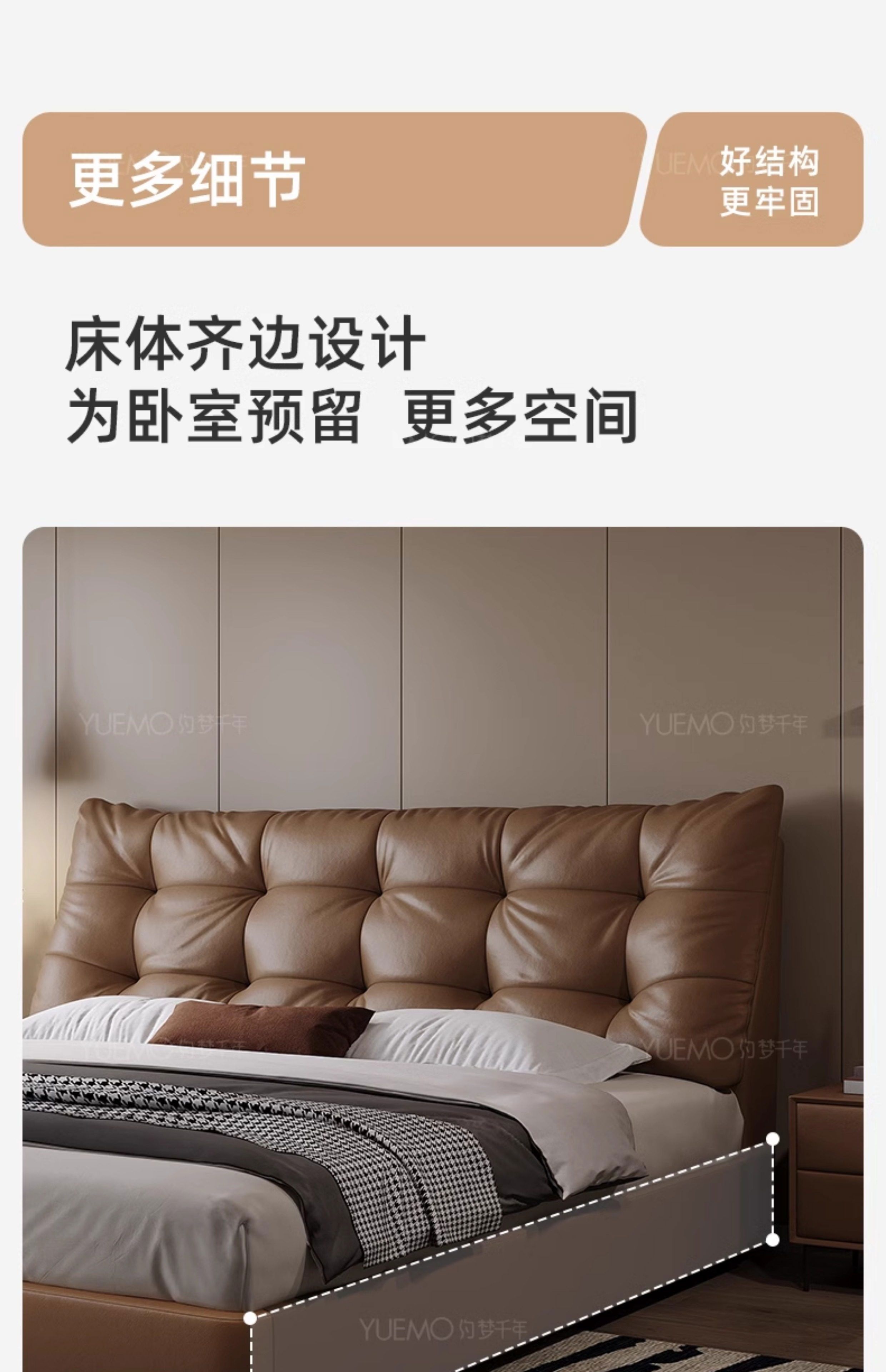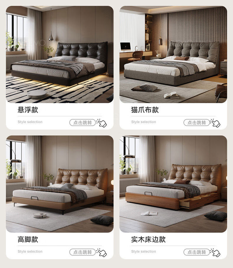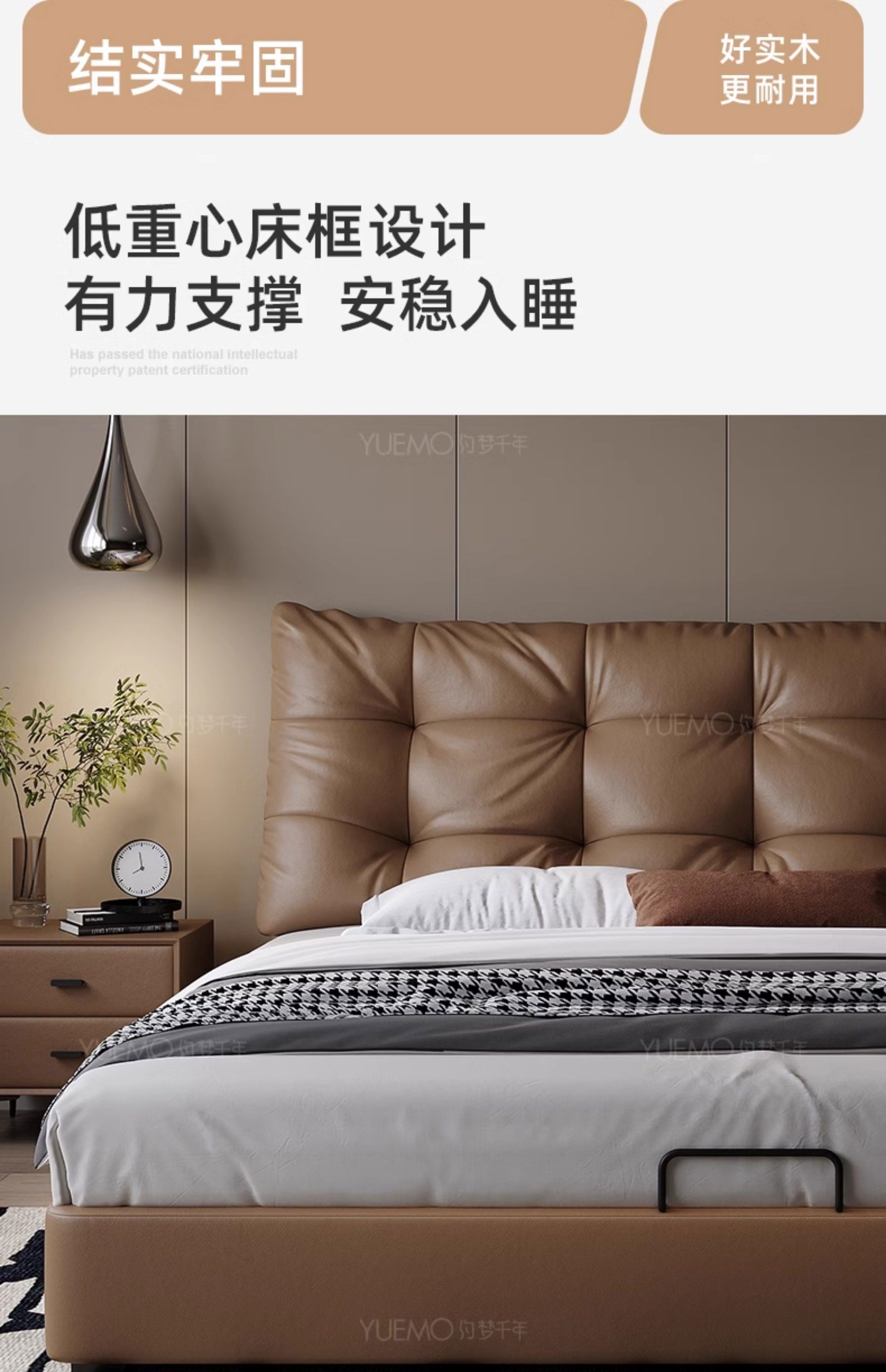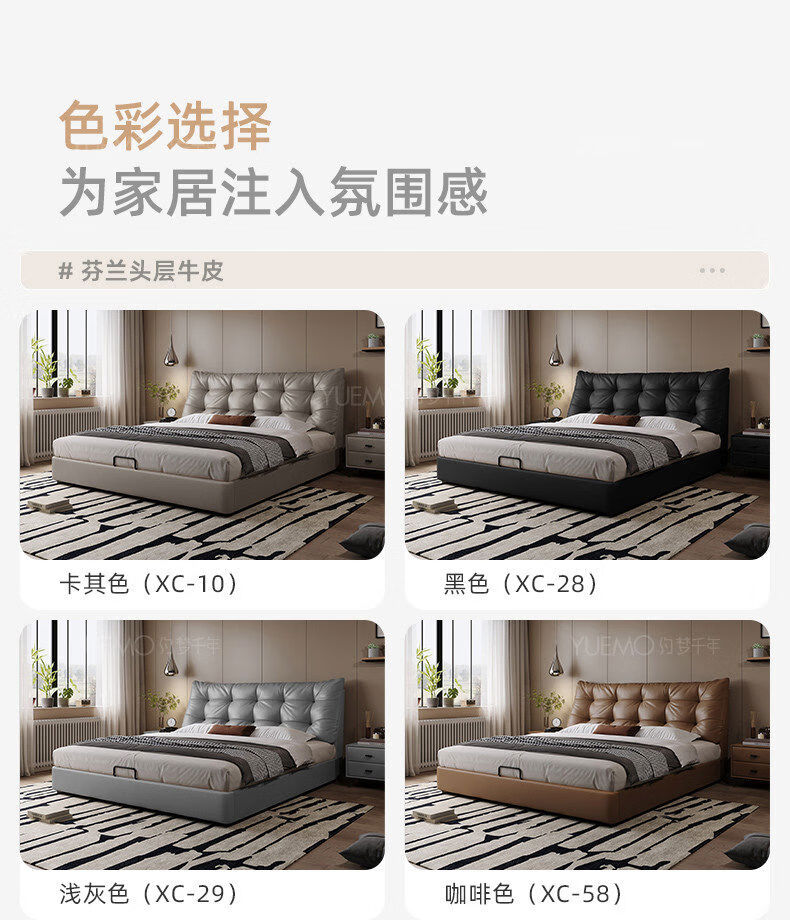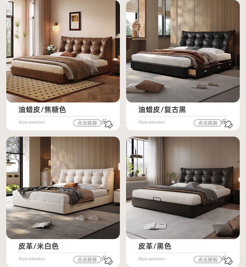 Yusenyi double bed, elegant master bedroom soft-packed bed, cowhide wedding bed, upgraded bed + 2 cabinets + knitted surface breathable mattress, moderate 15002000 bracket structure