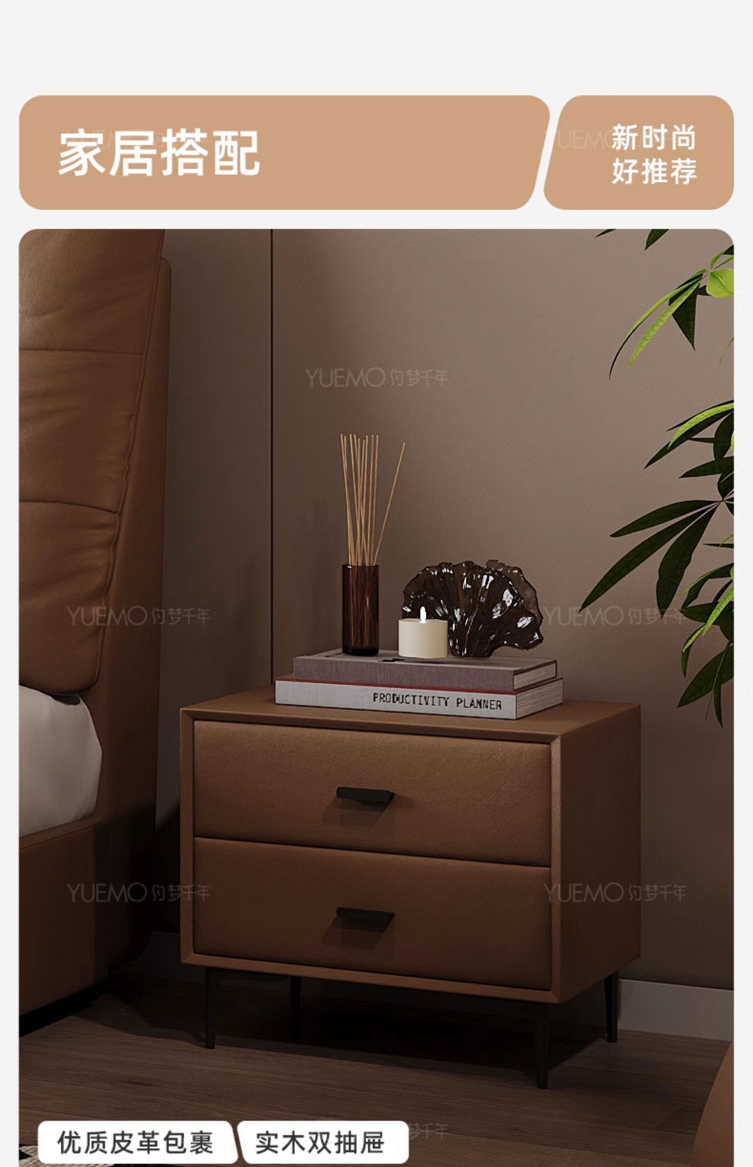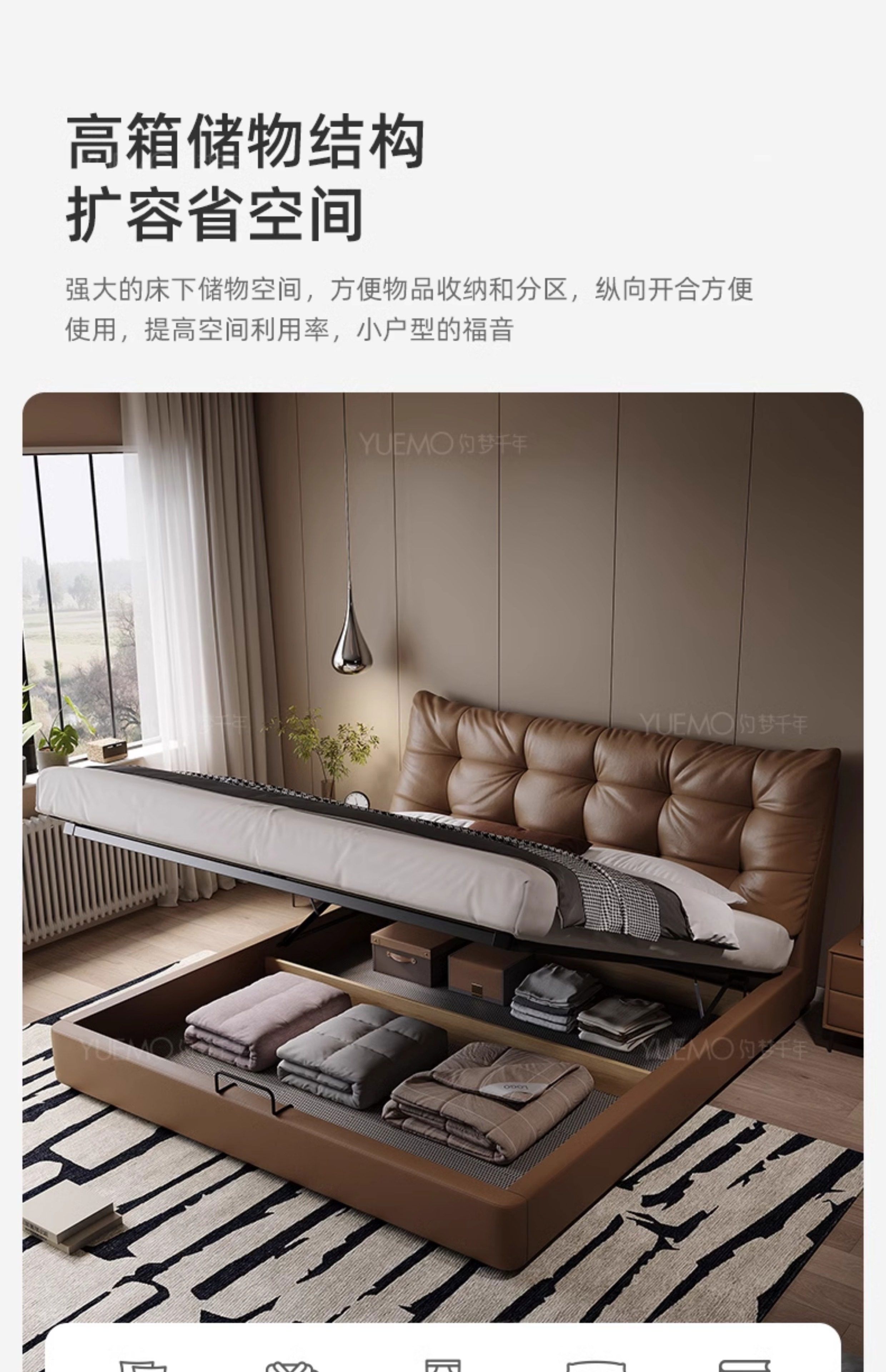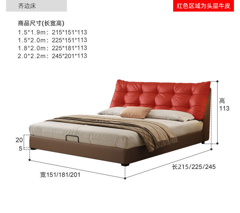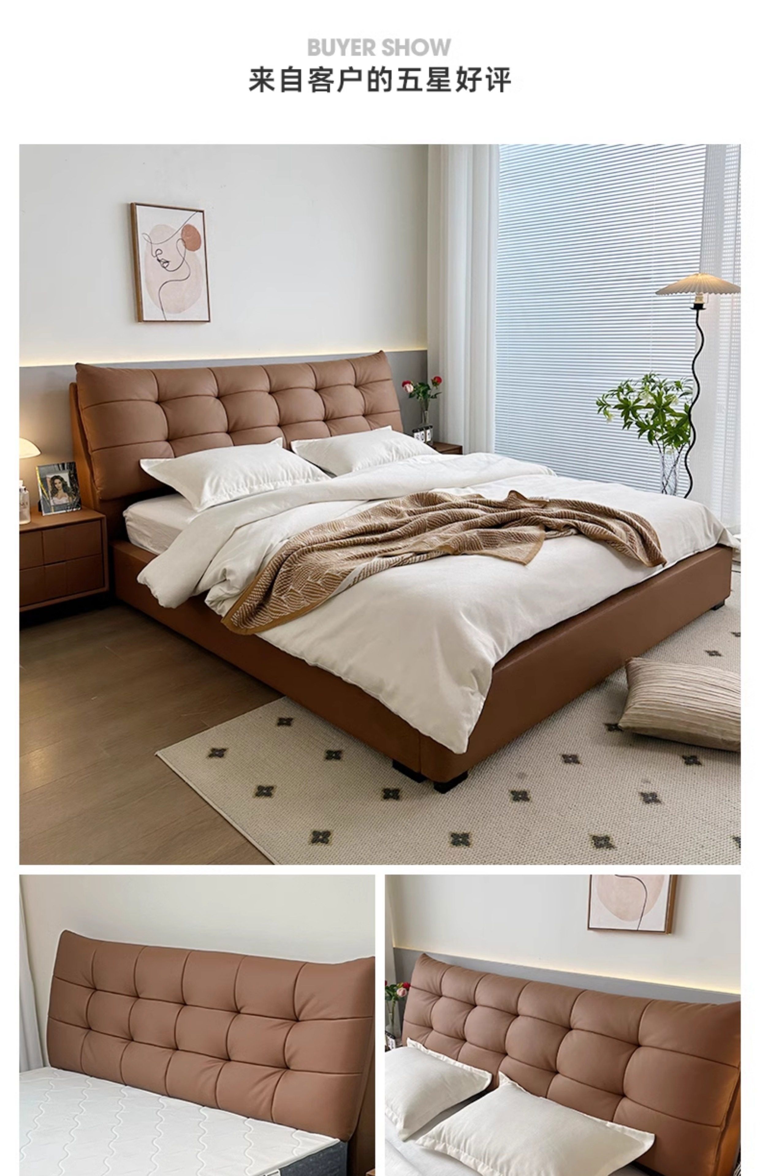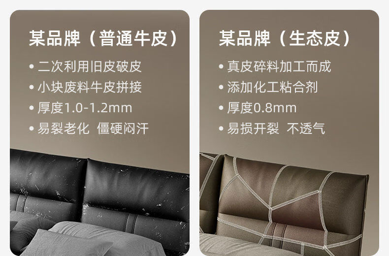 Yusenyi double bed, elegant master bedroom soft-packed bed, cowhide wedding bed, upgraded bed + 2 cabinets + knitted surface breathable mattress, moderate 15002000 bracket structure