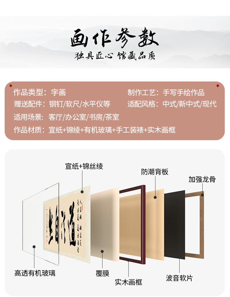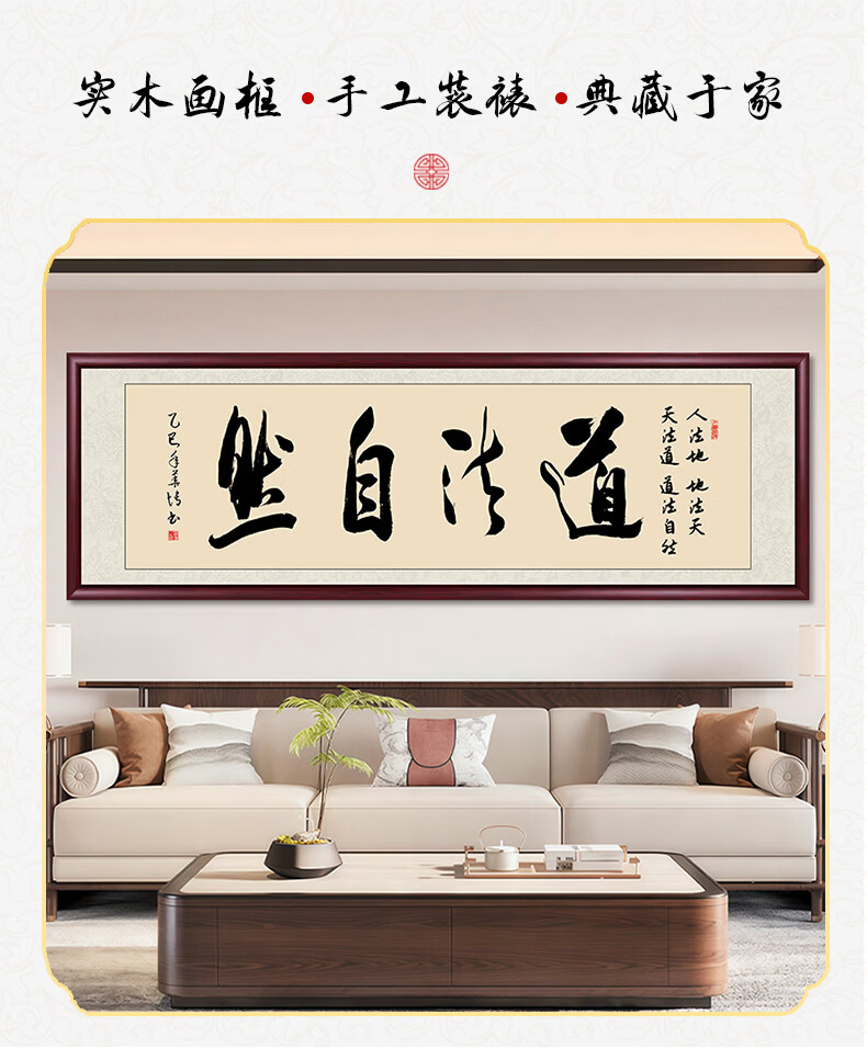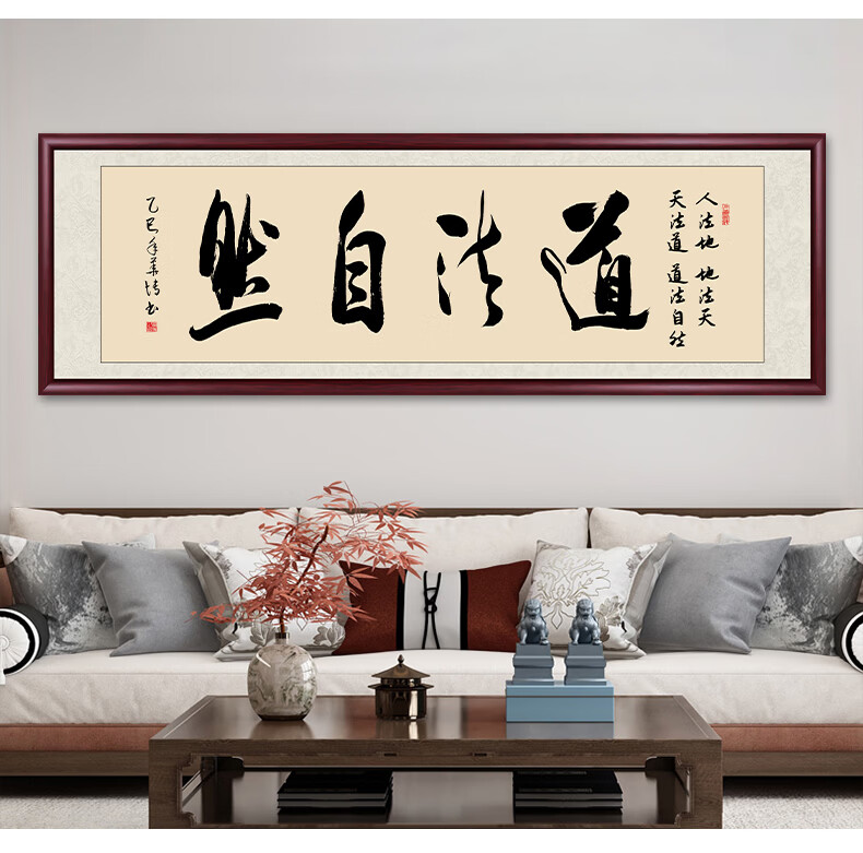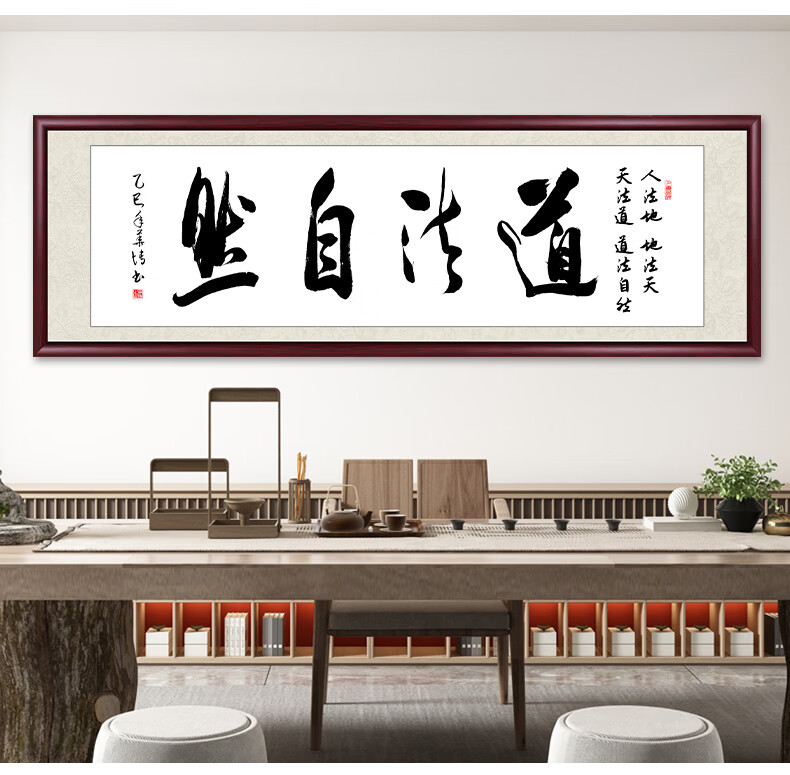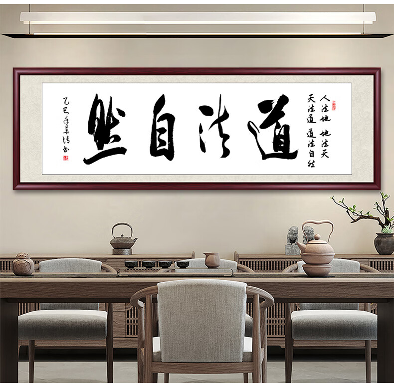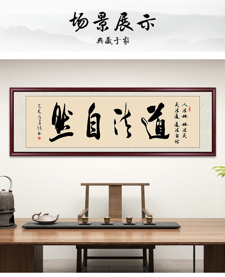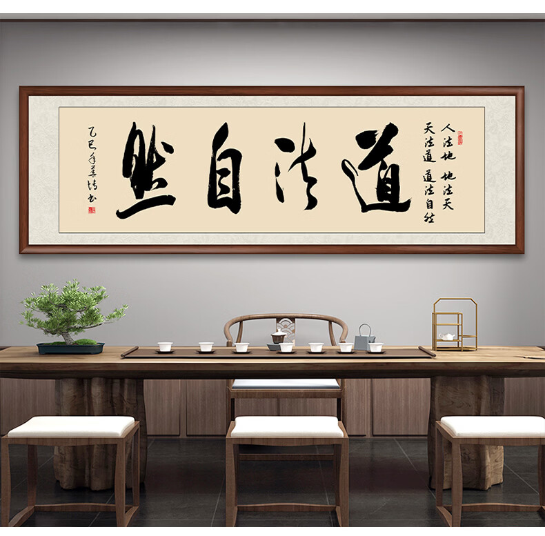 Six Paintings of Taoist Natural Calligraphy and Paintings Office Hanging Painting Living Room Sofa Background Painting Study Tea Room Mural Calligraphy Handwriting Authentic Taoist Natural - Yellow Background 249*75cm Authentic Handwriting + Organic Glass + Red Brown Solid Wood Frame