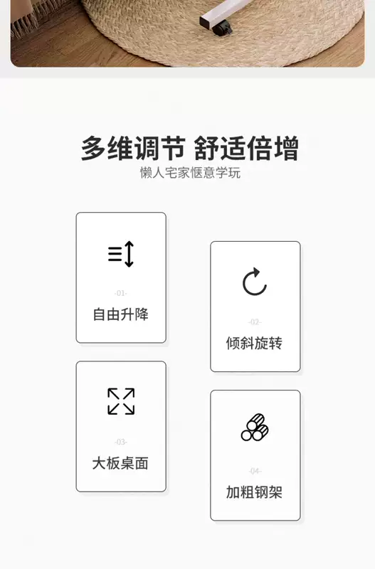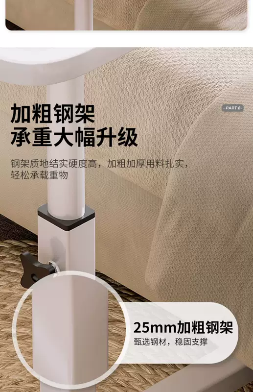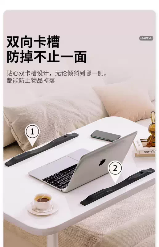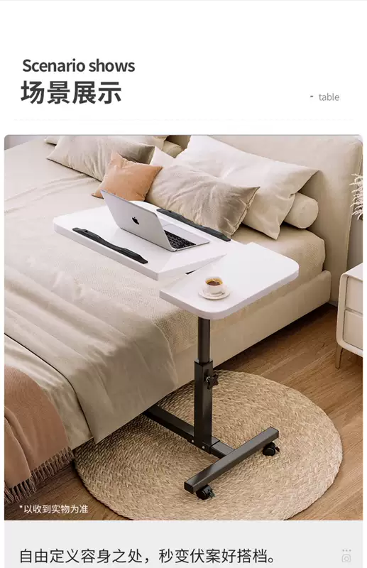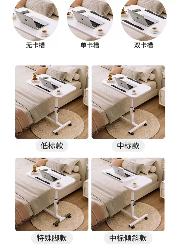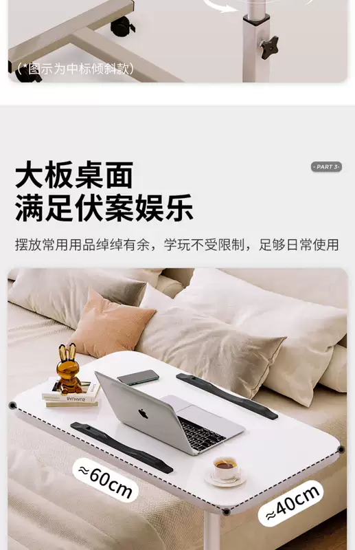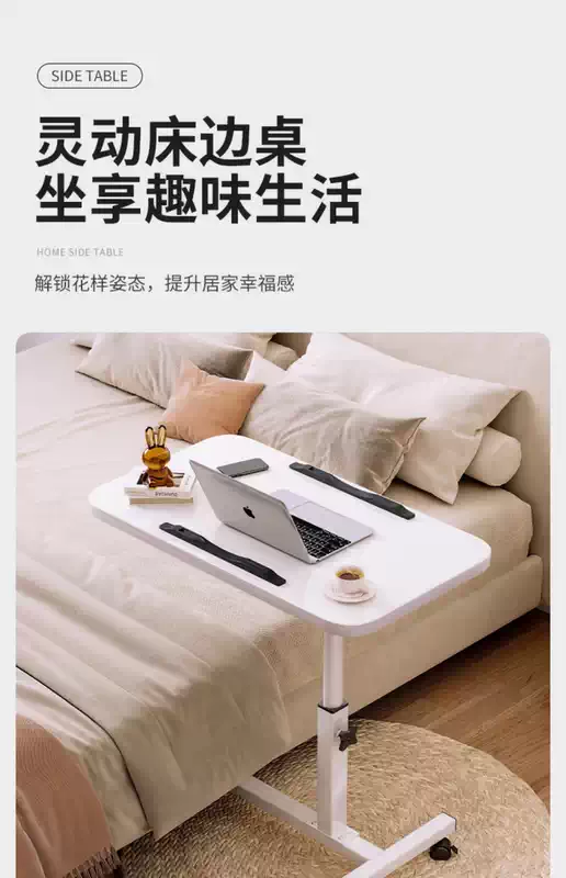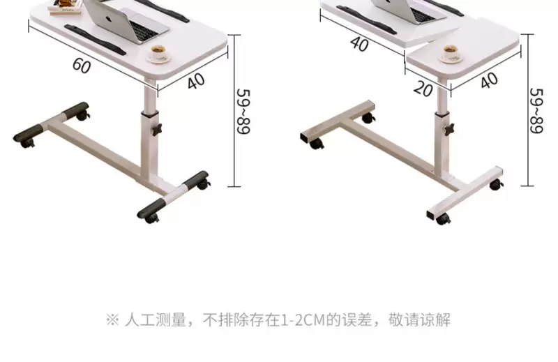 Yusenyi Bedside Table Movable Bedside Table Laptop Table Lift-Fold Table Lazy Bed Study Small Table (Thickened 15mm Board Double Card Slot Foot Covers) Black-White Frame 60x40cm Lift-Fold Foldable 36