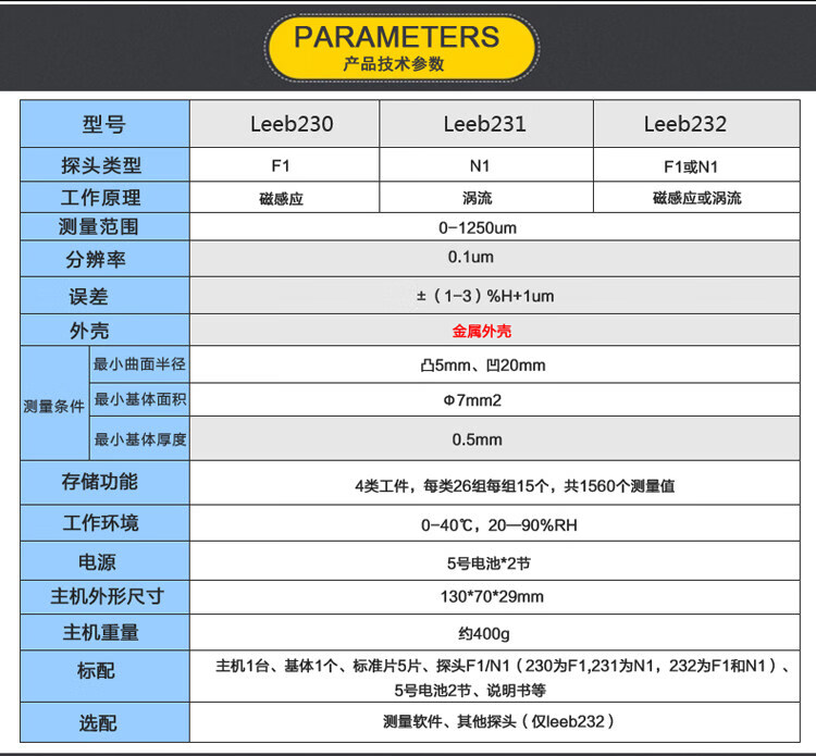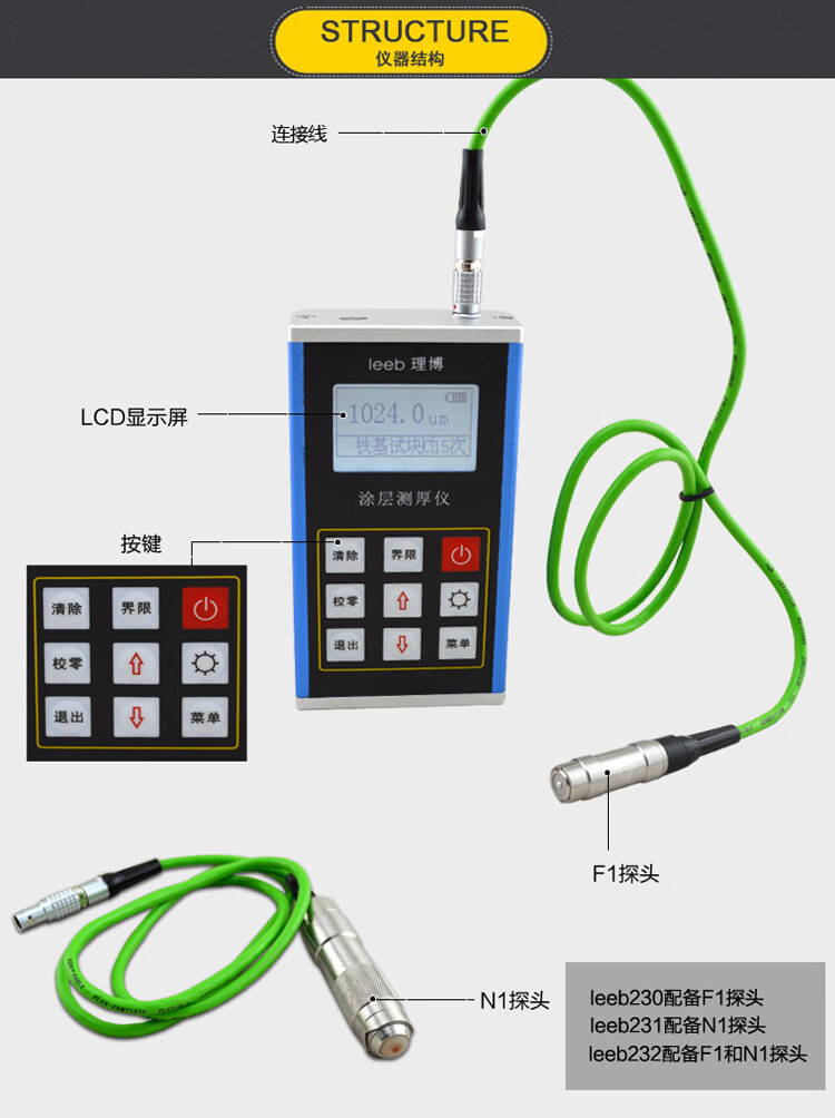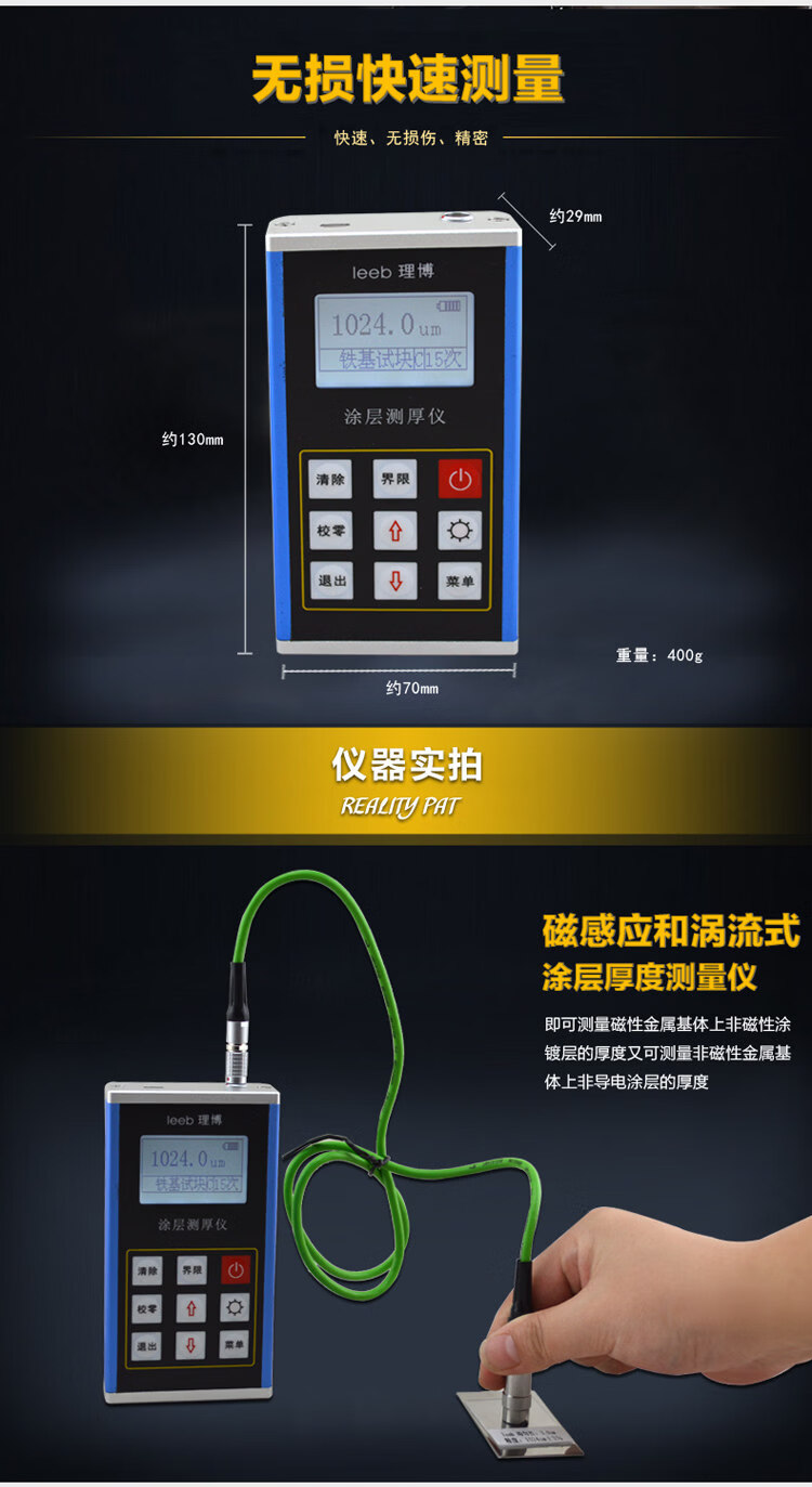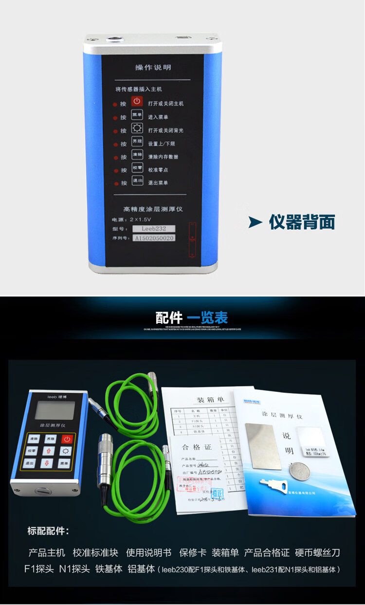 Leeb230 coating thickness gauge iron and aluminum dual-purpose coating paint film thickness gauge galvanized layer thickness gauge leeb230 (for iron-based only)
