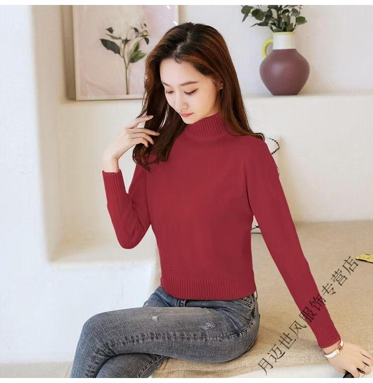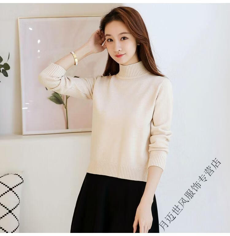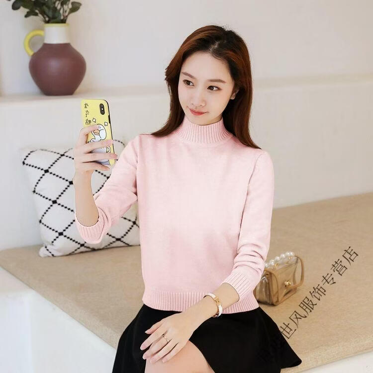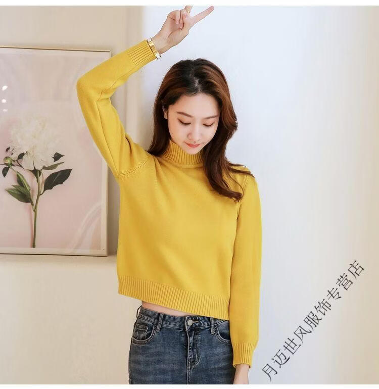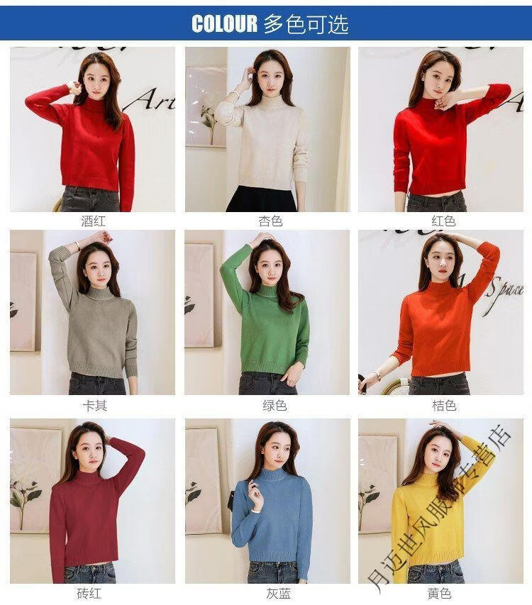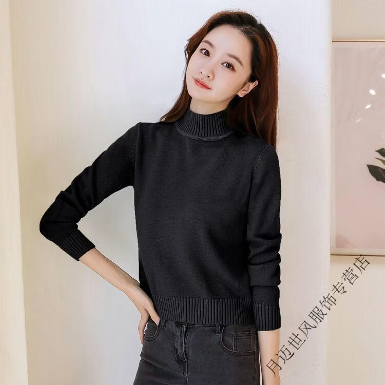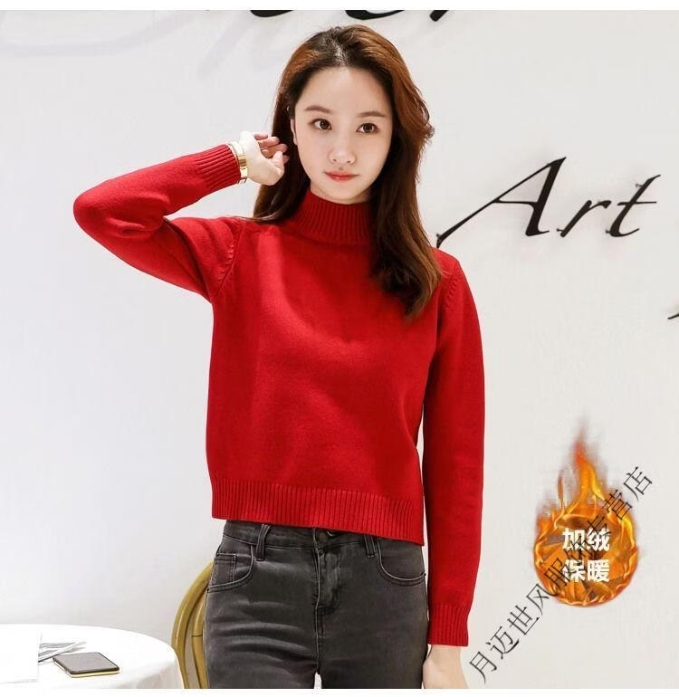 Chujing foreign style winter thickened and velvet warm mid-high collar short bottoming sweater for women pullover versatile half-high collar bottoming shirt white S recommended 80-95 pounds
