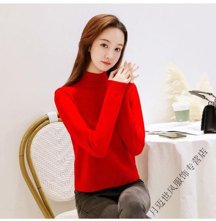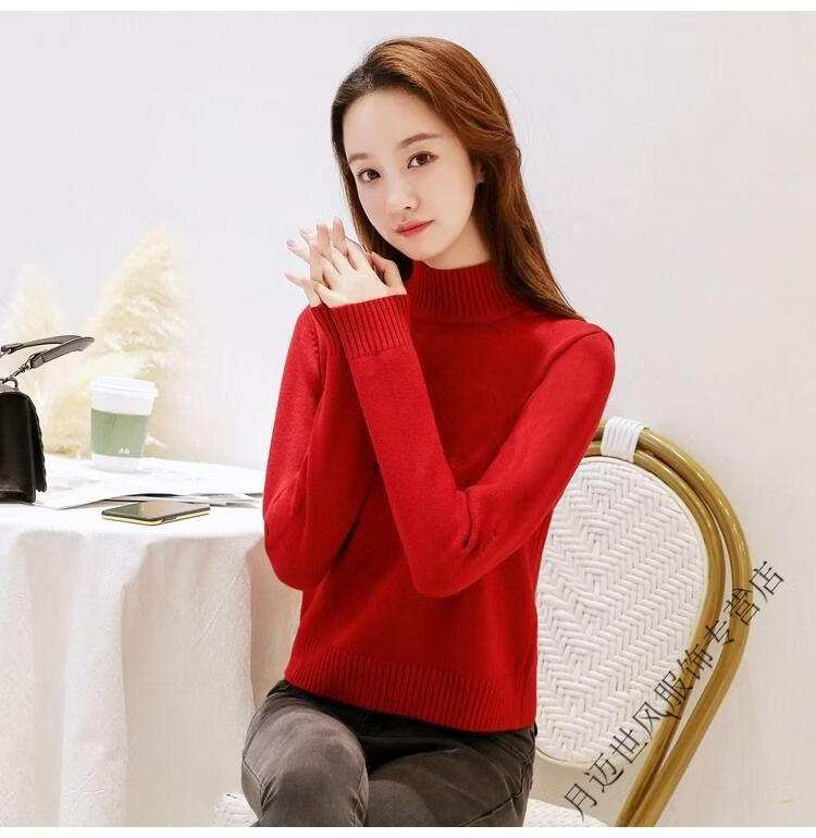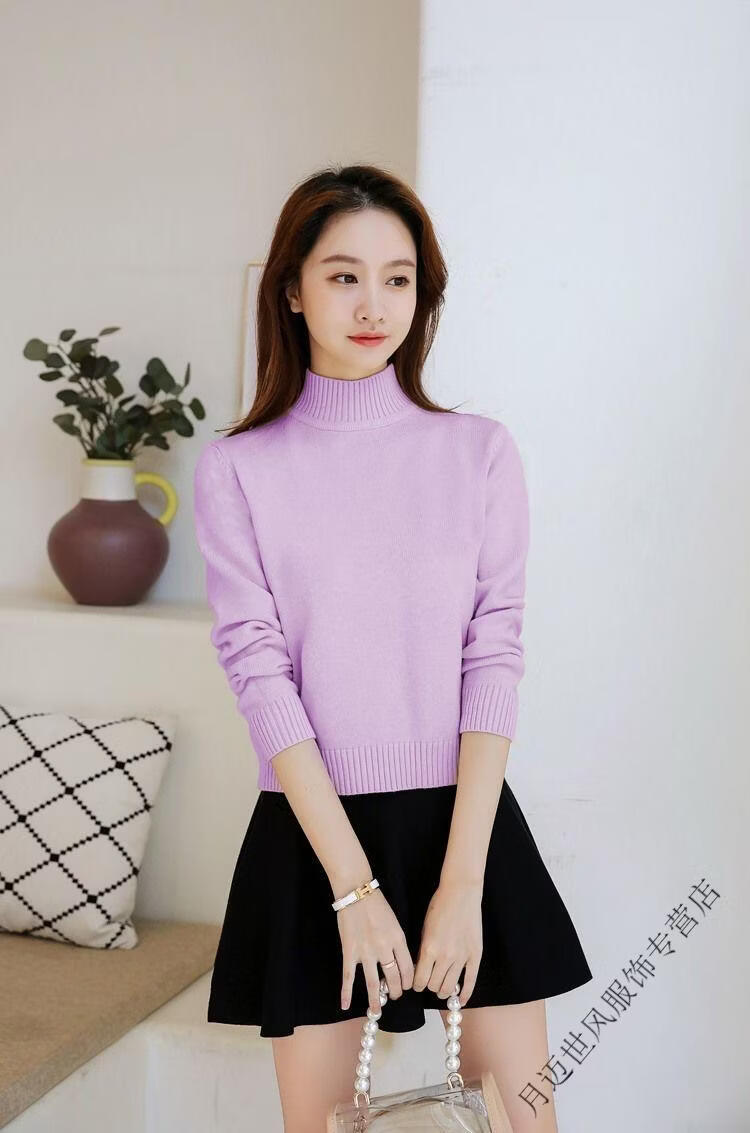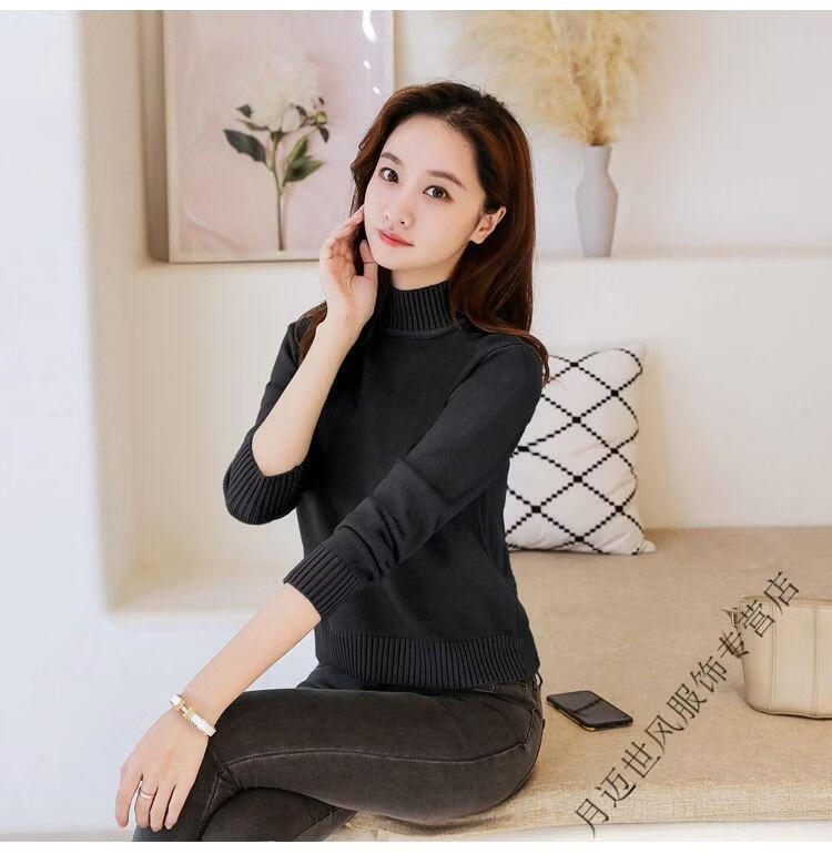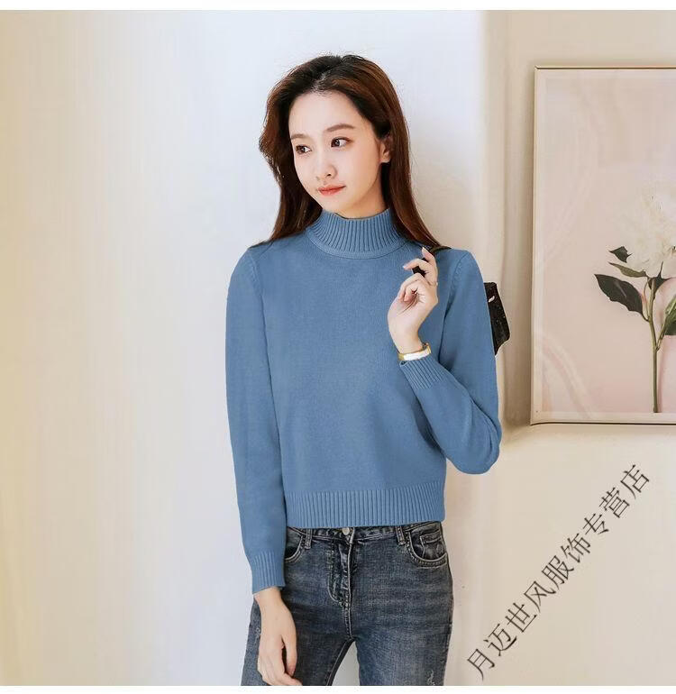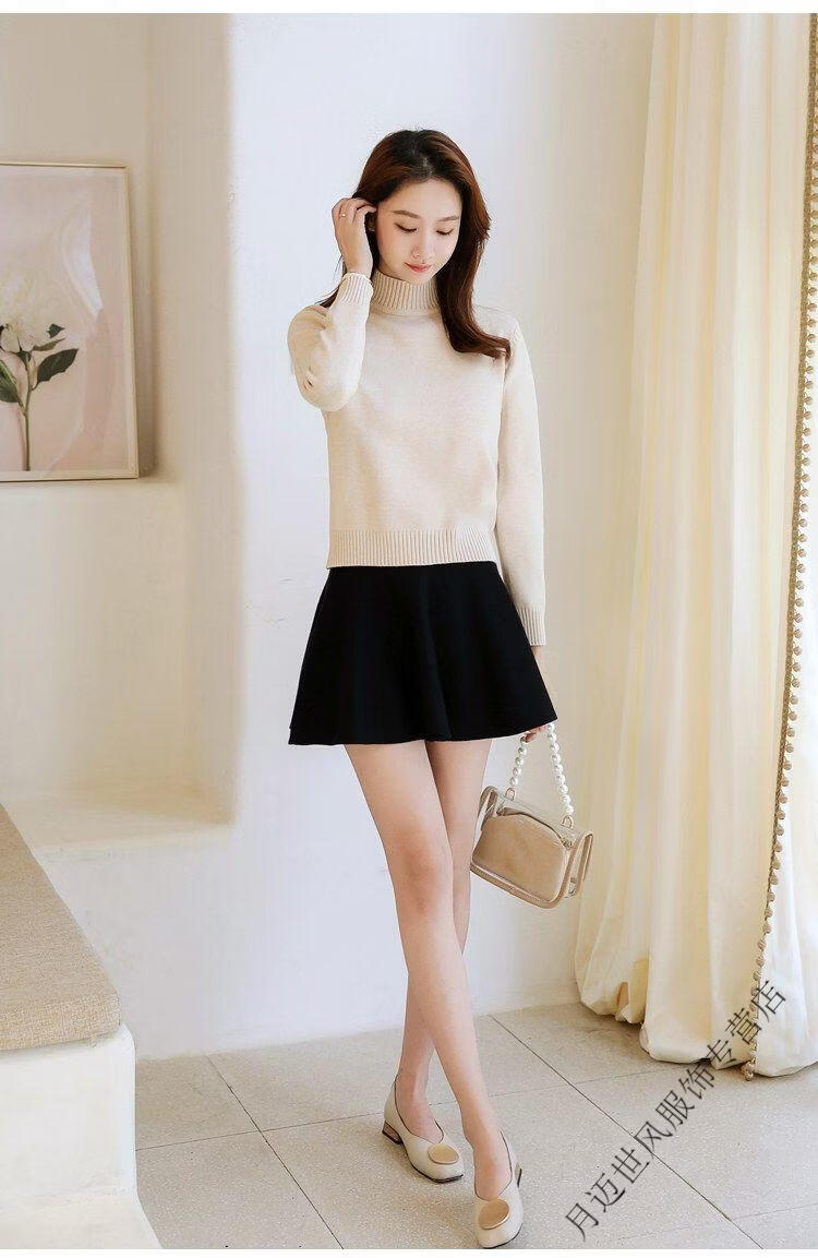 Chujing foreign style winter thickened and velvet warm mid-high collar short bottoming sweater for women pullover versatile half-high collar bottoming shirt white S recommended 80-95 pounds